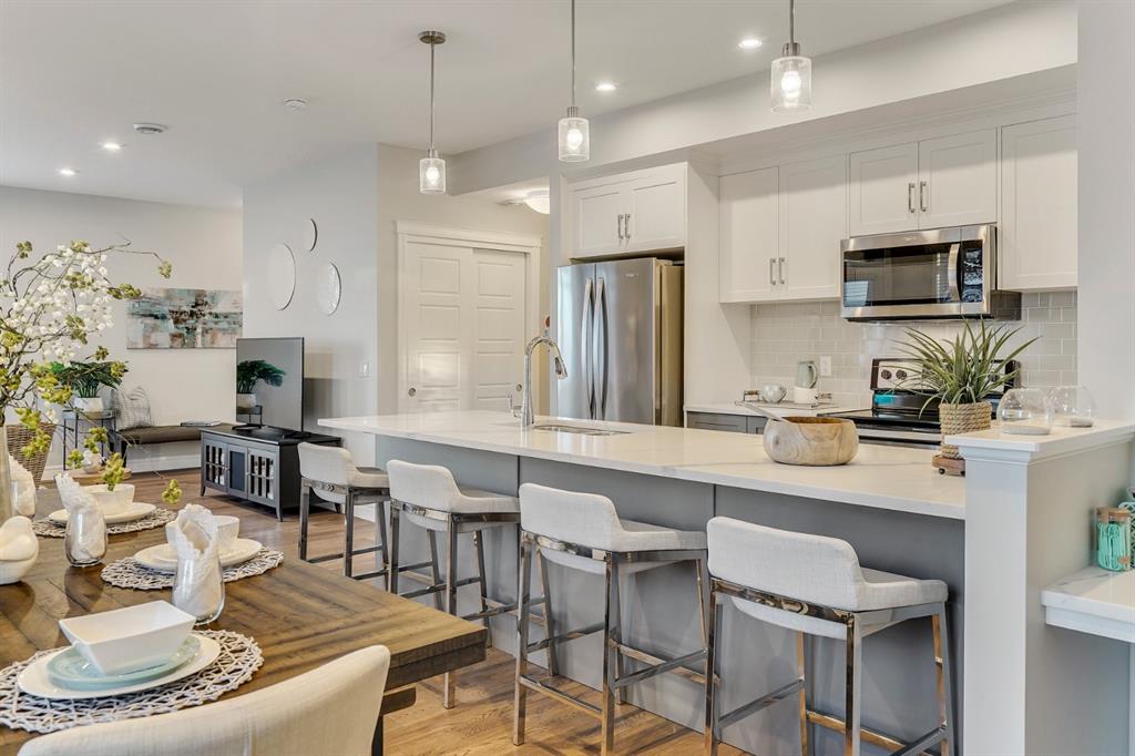 The ‘Bergen’ Built by Rohit Communities, one of Alberta’s largest homebuilders is a beautifully designed townhouse combines functionality and design, feeling more like a single family home than a townhouse. The large kitchen is open to living and dining areas with walls of windows, providing a bright and timeless space. Kitchen is complete with quartz countertops, designer fixtures and stainless-steel appliances. The upper level has a large master bedroom with private ensuite, including an upgraded walk-in shower & 2 comfortable bedrooms, a full bathroom & ample space for an office on the upper level. This home includes a private attached garage, balcony with BBQ hook up and full warranty! Located within walking distance to the South Calgary Health Campus and the countless amenities of Seton including the new YMCA.