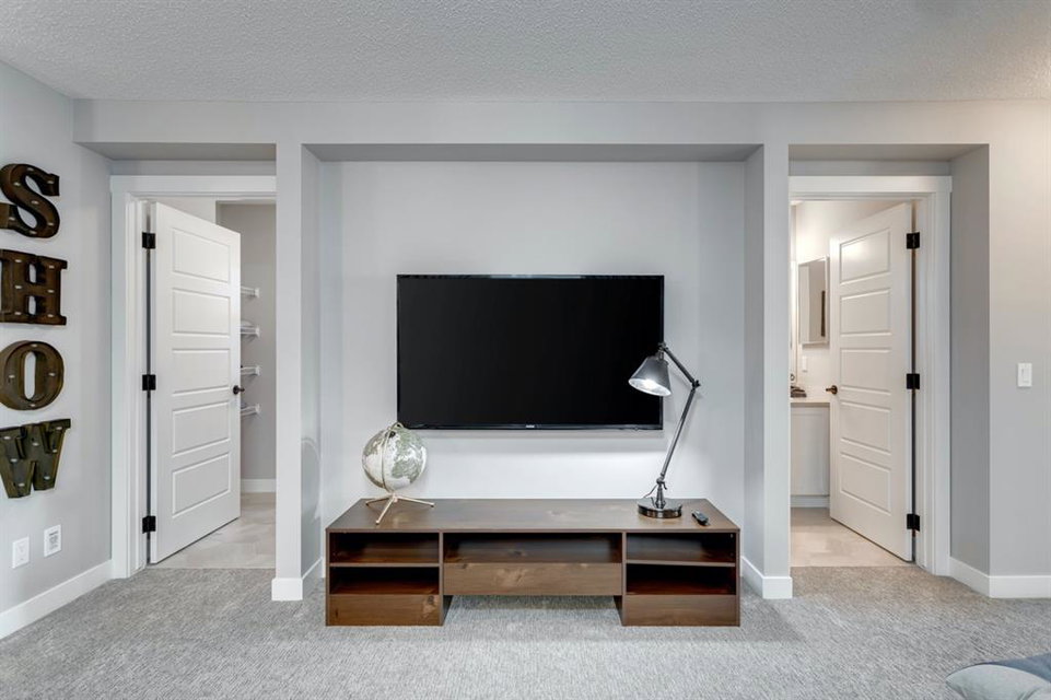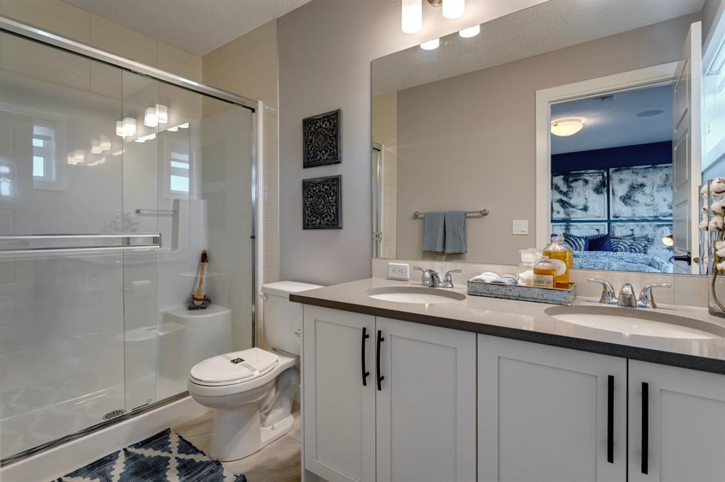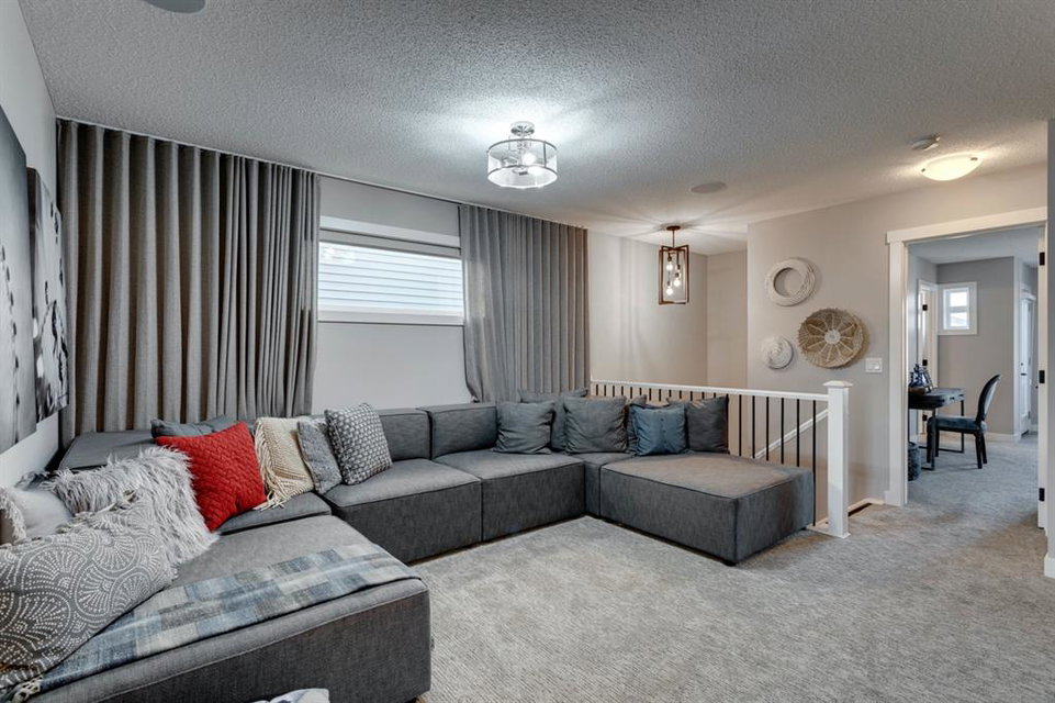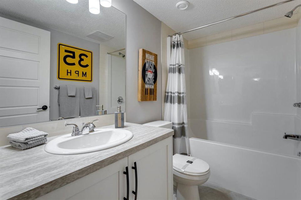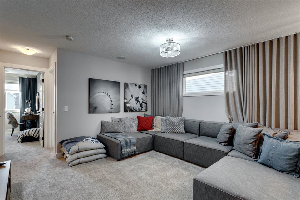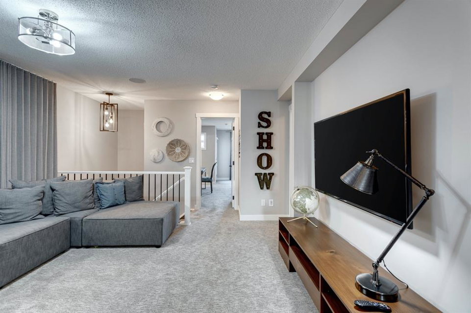 SHOW HOME FOR SALE! Welcome to the Carlisle II by Brookfield Residential. This intelligently designed show home offers the space to suit just about any family. The open-concept main floor shows a true understanding of your daily lifestyle needs, including the need for flexibility, which it supports thanks in part to its multi-purpose flex space and generous great room, just off the kitchen. An island eating bar and spacious dining area give options for meal times and ensure the kitchen remains the heart of the home. On the upper level you’ll find comfort and connectivity with an open area entertainment room perfectly situated to separate the large master from the two additional bedrooms. Located at the top of the stairs, this room provides a comfortable home base for movie nights and slumber parties, while the bedrooms offer places to relax and unwind in privacy. While all three bedrooms are spacious, the master includes an impressive walk-in closet and a 4-piece master ensuite completed with dual vanities. The basement is completed to include a hockey rink for those hockey fans and comes with a full Alberta New Home Warranty.