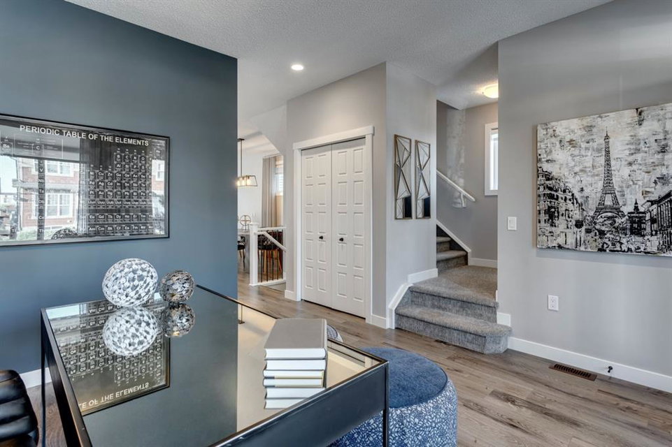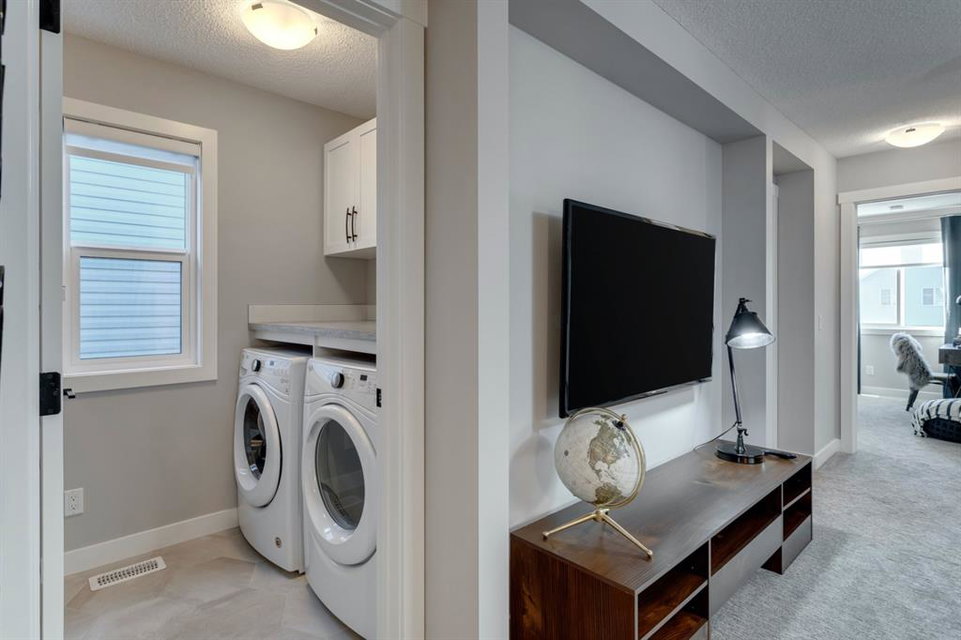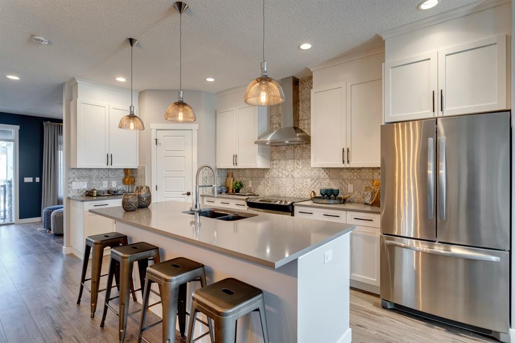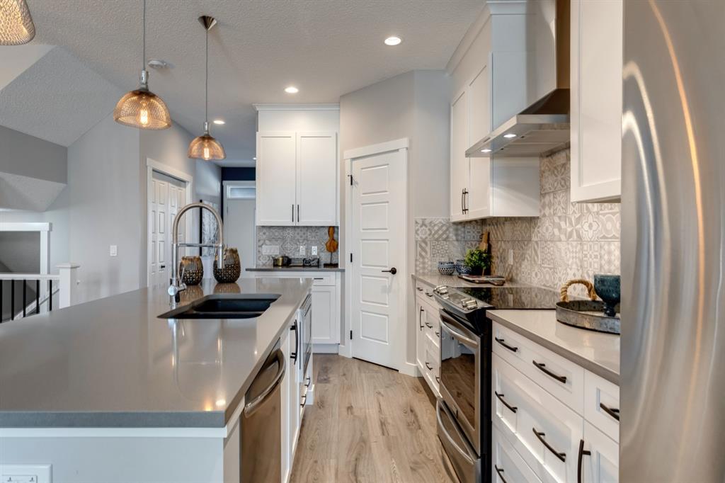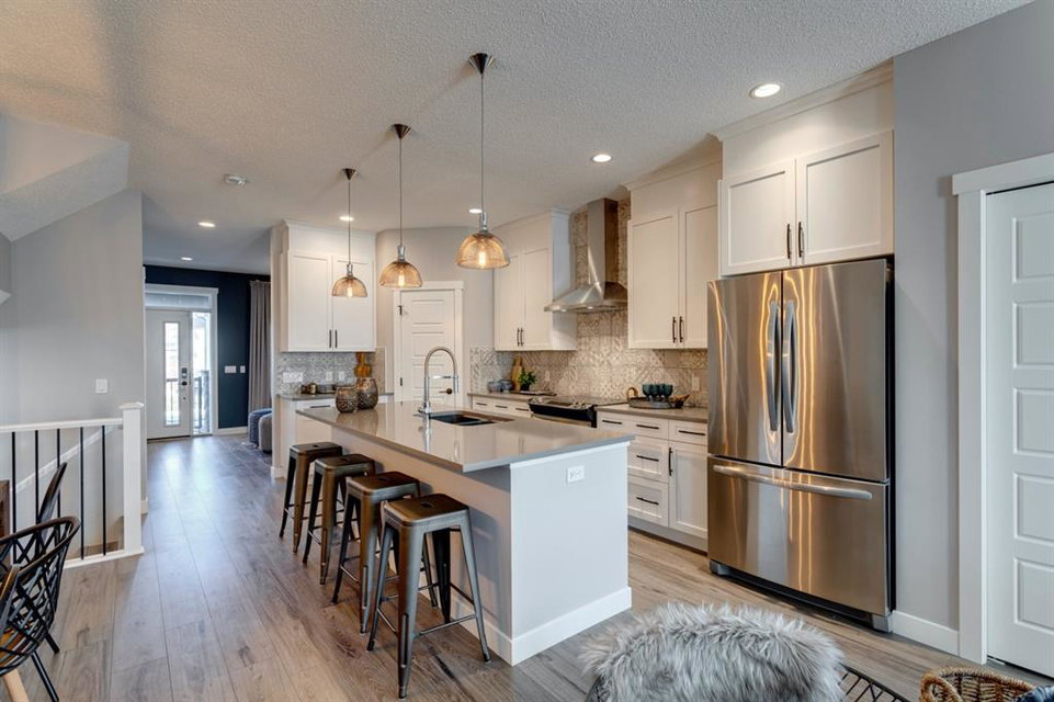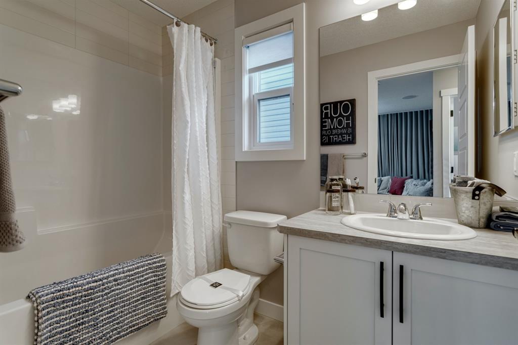 SHOW HOME FOR SALE! Welcome to the Carlisle II by Brookfield Residential. This intelligently designed show home offers the space to suit just about any family. The open-concept main floor shows a true understanding of your daily lifestyle needs, including the need for flexibility, which it supports thanks in part to its multi-purpose flex space and generous great room, just off the kitchen. An island eating bar and spacious dining area give options for meal times and ensure the kitchen remains the heart of the home. On the upper level you’ll find comfort and connectivity with an open area entertainment room perfectly situated to separate the large master from the two additional bedrooms. Located at the top of the stairs, this room provides a comfortable home base for movie nights and slumber parties, while the bedrooms offer places to relax and unwind in privacy. While all three bedrooms are spacious, the master includes an impressive walk-in closet and a 4-piece master ensuite completed with dual vanities. The basement is completed to include a hockey rink for those hockey fans and comes with a full Alberta New Home Warranty.