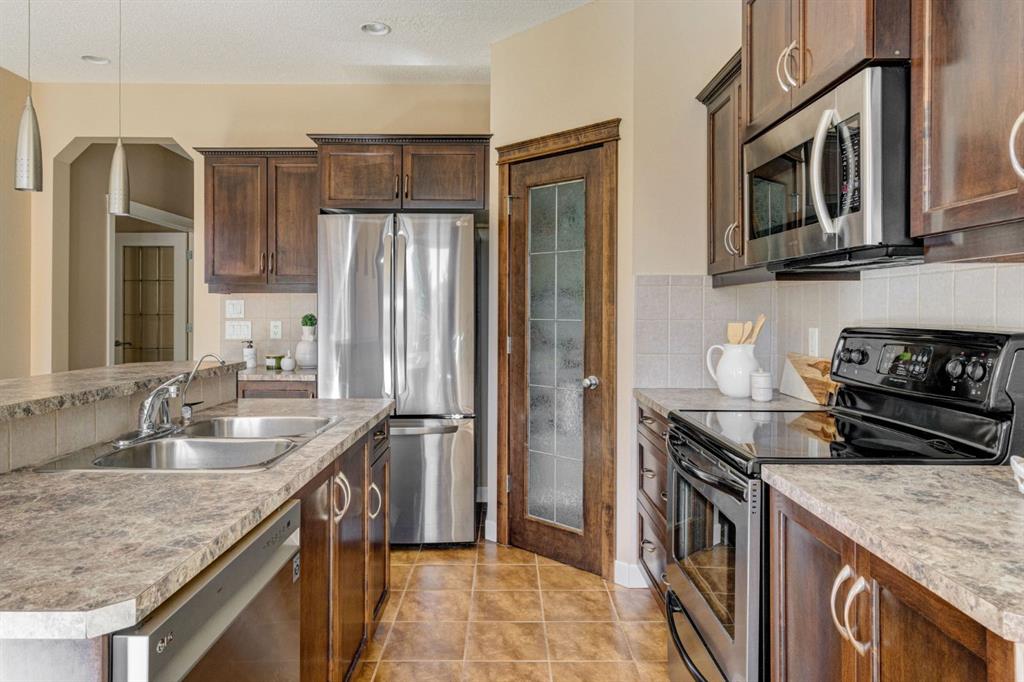 Welcome to this beautifully maintained 2-storey Cedarglen home located in the heart of New Brighton. This meticulously maintained property offers 3 bedrooms, 2.5 bathrooms, and over 2,000 square feet of developed living space. The open concept main level features 9’ foot ceilings with large windows at the rear of the property which allows natural light to flow into the home all day. The kitchen features timeless maple cabinets, newer stainless-steel appliances, a corner pantry, and a center island with a double sink and a raised breakfast bar for additional seating. The kitchen overlooks both the dining and living area – making this the perfect space to entertain friends and family and the living area is situated around a gas fireplace – perfect for the cooler weather. The main level is complete with a 2-piece bathroom, laundry room, and a den space which would make for a great play area or home office. The upper level offers 3 bedrooms, 2 full bathrooms, and a spacious bonus room. The bonus room sits above the garage making the ideal space for a media room for family movie nights. The large primary bedroom features a walk-in closet and a stunning 4-piece ensuite bathroom with a makeup station, jetted soaker tub, standing shower, and separate water closet. The lower level is unfinished and ready to be developed, with space for a rec. room, 4th bedroom, and a 3rd full bathroom. The spacious backyard is fully fenced with plenty of green space and features a patio, perfect for seating or a fire pit. A double attached garage offers secure storage for your vehicles and keeps them out of the snow during the winter. Additional features of this home include built-in speakers on the main and upper levels, central vacuum and attachments, and newer washer & dryer. New Brighton features countless amenities including parks, playground, walking paths, and a community center with a water park, and offers quick access to Deerfoot for daily commuting. Don’t miss out on this incredible opportunity in New Brighton!
