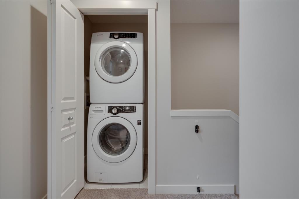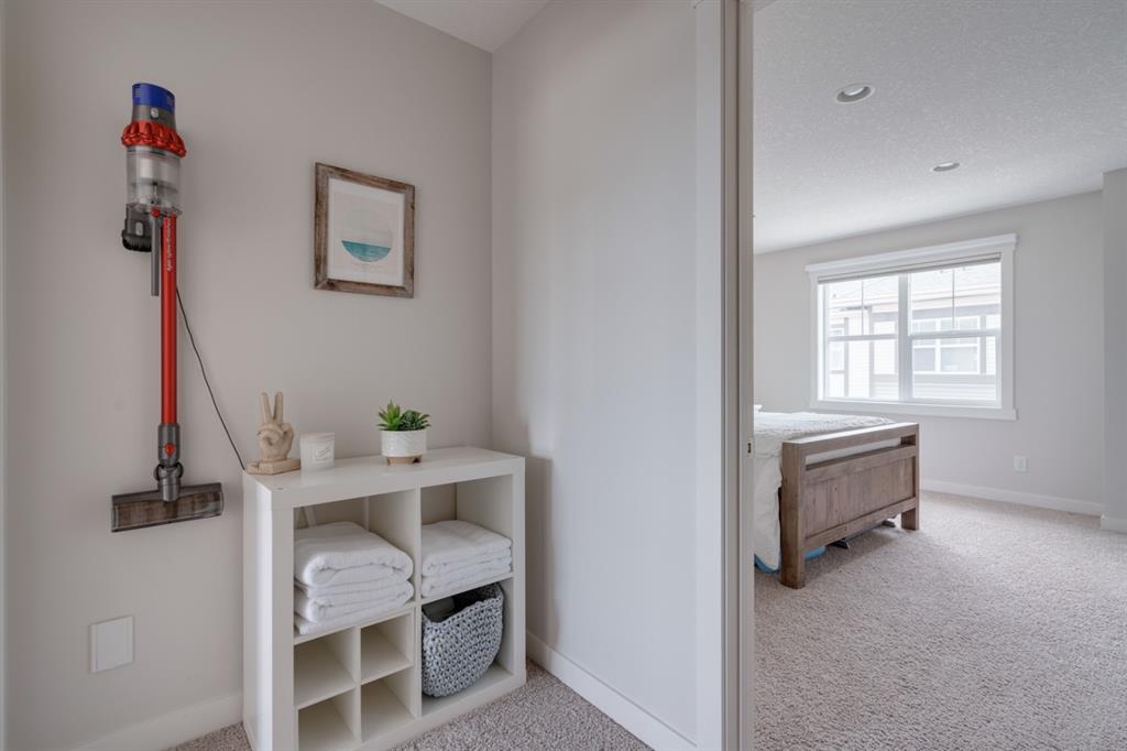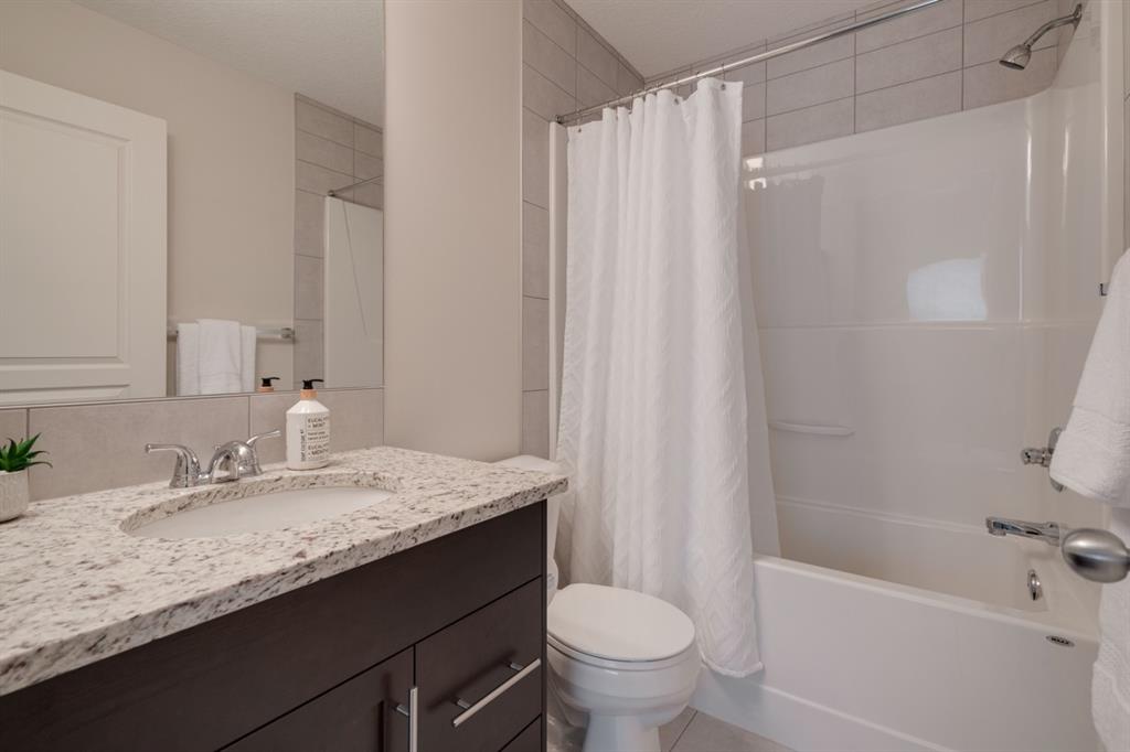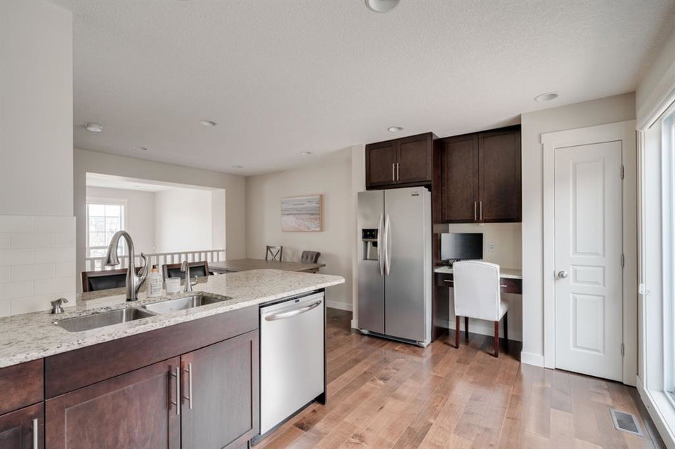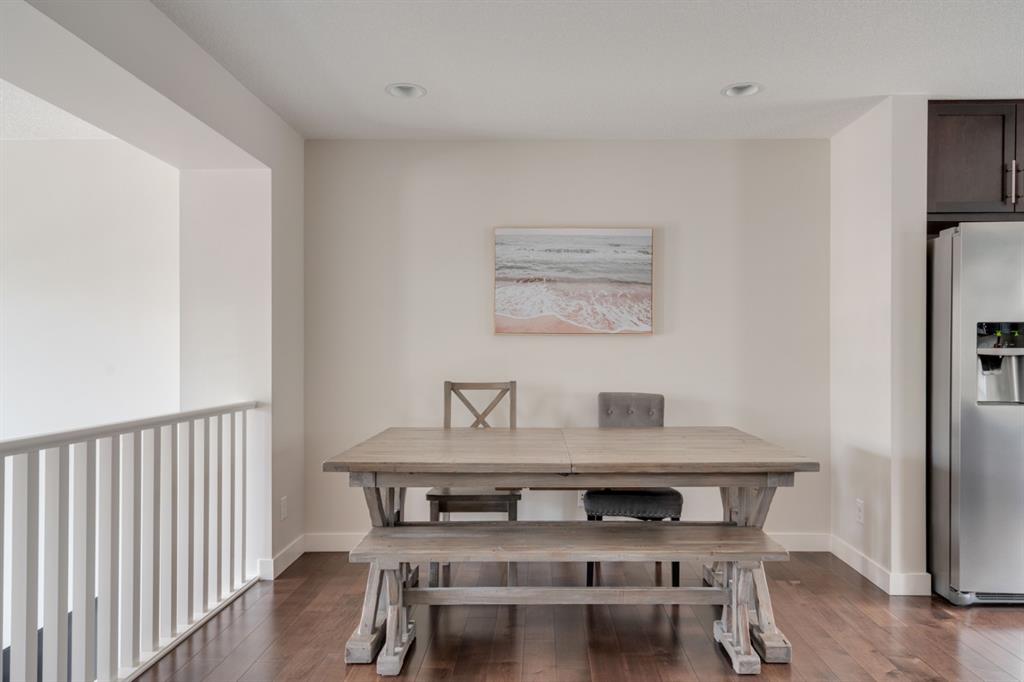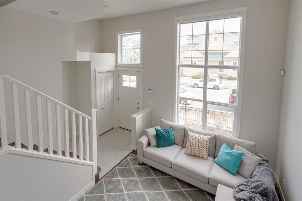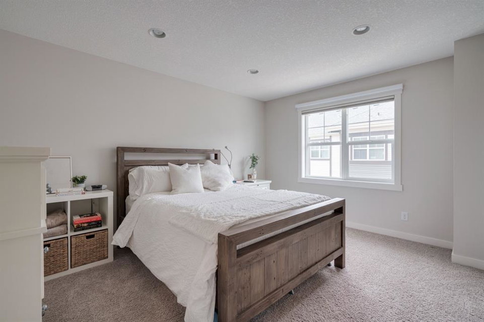 This immaculate and like-new townhome is ideally located on the perimeter of Mosaic Mirage – giving it easy access to the street, additional parking and a more natural light. Featuring 2 bedrooms, 2.5 bathrooms and a double attached garage, this townhome is perfectly located within desirable McKenzie Towne, just steps from the countless amenities of High Street. The bright and open main living area includes a front double volume living room with oversized windows. The full dining area overlooks the living room providing a bright and open space. The home features beautiful hardwood flooring throughout the main level, custom Hunter Douglas window treatments and a timeless kitchen with shaker cabinets, granite countertops and a wraparound flush eating bar. The main level is complete with a half bathroom and a private rear balcony. The second level features two primary bedrooms, each complete with their own walk-in closets and full en suites. Completing the upper level is stacked laundry for added convenience to daily living. The lower level of the home offers a mud room and additional storage space. The double attached garage will keep your vehicles and valuables safe all year long and the front patio space is perfect for lounging in the summer. If the summer heat is too much for you, the central air conditioning in the home will keep you cool. This home is perfect for down-sizers, first time buyers, young professionals and investors! Incredibly well cared for and perfectly located, this bright and private townhome is fully move-in ready!