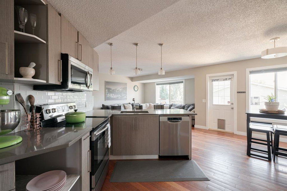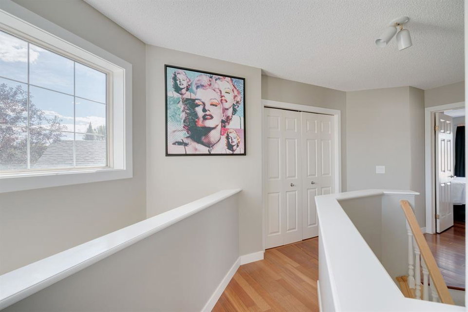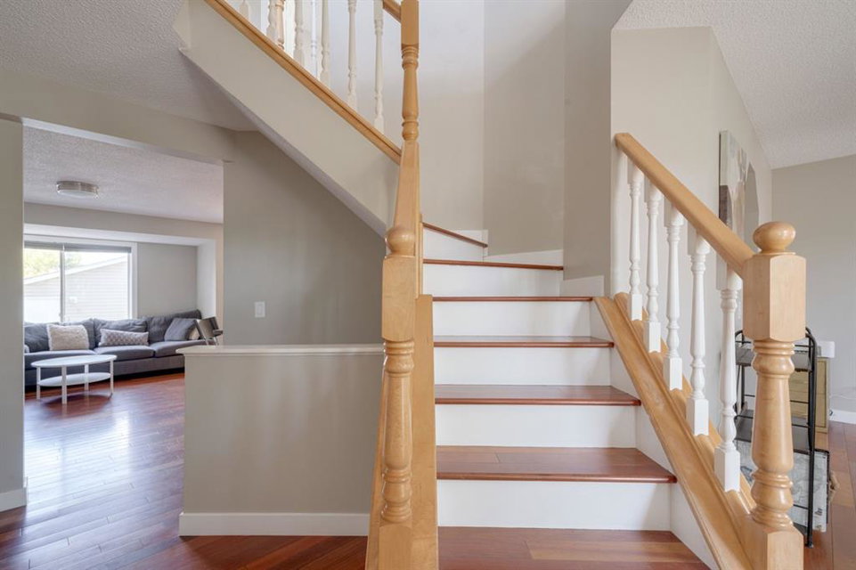 This charming home is located in the desirable community of McKenzie Lake, situated minutes from shopping, parks and pathways. The home is ideally positioned within walking distance of Mountain Park School, perfect for a young couple, or growing family. The home features beautiful hardwood flooring throughout the main level. Large windows throughout the home flood each room with natural light and provide a bright and inviting space. The home is equipped with an updated kitchen featuring modern cabinetry, sleek subway tile backsplash, quartz countertops and a suite of stainless-steel appliances including a French door refrigerator. The kitchen overlooks both the dining area and living room making the perfect space for entertaining guests. A gas fireplace in the living room makes a cozy space to enjoy on cold winter nights. Completing the main level is a 2-piece powder room and a large formal dining room which can easily be converted to a home office, or into a family room for those with young children. The upper level of the home is bright with large windows providing light into the open staircase. The primary bedroom is at the rear of the home complete with a walk-in closet and 4-piece en suite. Two additional generous bedrooms, a Jack & Jill 4-piece bathroom and a laundry room complete the upper level providing added convenience for daily living. The fully developed lower level of the home offers endless possibilities with a large family room, perfect for a media area, kid’s play area or could be converted to a home gym. Additionally, the lower level offers a 4th bedroom, additional storage space and large utility room. The west-facing backyard offers plenty of green space for the family to enjoy while the expansive rear deck provides the perfect space for taking in the summer sun BBQing with family and friends. Completing the property is a rear parking pad for a smaller RV and double garage providing added storage while keeping your vehicles and valuables safe and clean year-round. With quick access to all the amenities of 130th Avenue and only minutes from the stunning Bow River this home is the perfect fit for those looking to be surrounded by nature and convenience.
