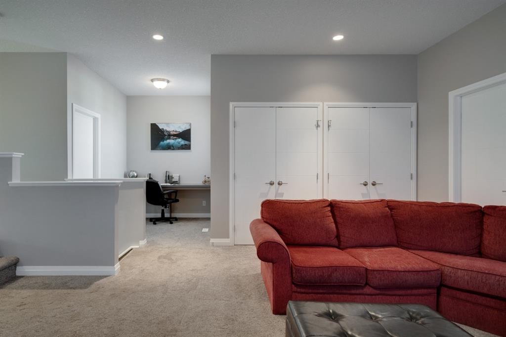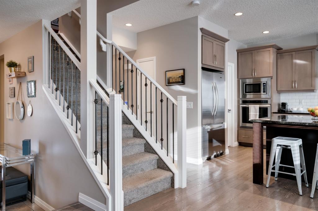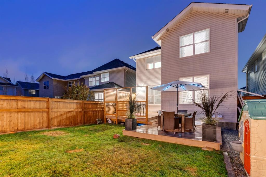 Absolutely beautiful home that shows like new and is located on one of Auburn Bay’s most desirable streets! This incredibly well-maintained 3 bedroom, 2.5 bathroom home has an open concept main level that is perfect for entertaining. The expansive kitchen includes mid-tone cabinets, an oversized island and built-in appliances including a gas cooktop. The main living area is complete with a gas fireplace with floor to ceiling tile. The upper level has an extended centre bonus room that includes additional sound-proofing between it and the bedrooms. A built-in desk with a large window offers the perfect at-home workspace just off the bonus room. The large master bedroom has a full en suite including dual sinks, a walk-in shower, large soaker tub and walk-in closet. A large laundry room completes the upper level, providing added convenience for everyday living. The professionally landscaped backyard includes a two-tiered deck with privacy wall & BBQ gas line, a cedar garden box and plenty of green space for the family to enjoy. The south-facing backyard captures the perfect amount of natural light that flows through the home all day long and the A/C keeps it cool in the warm summer months. This family-oriented street is perfect for those looking to grow their family in Auburn Bay and is within close distance to many nearby schools. Lastly, there is even an insulated dog house for the pup to enjoy!