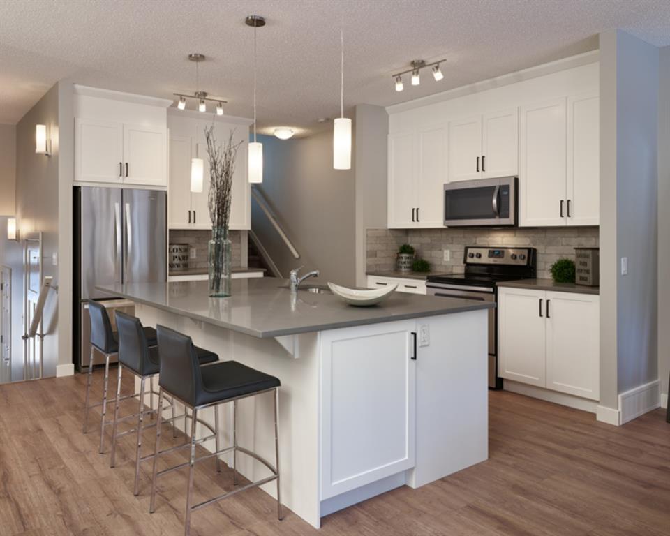 Welcome to the Vermillion built by award-winning Brookfield Residential! The Vermillion features 3 bedrooms, 2.5 bathrooms and a large basement that can easily accommodate a bedroom, bathroom and recreation room. The open concept main level is perfect for entertaining. The kitchen is complete with a large quartz island that overlooks the main living and dining area. The upper level includes a master retreat, complete with 5 pc en suite and walk-in closet in addition to two more bedrooms, a main bathroom, upper floor laundry and a bonus room with vaulted ceilings! Located in beautiful Riverstone, this home has endless parks & pathways all within walking distance. Additional upgrades in this new home include 9′ ceilings on the main level, a rear deck with gas line hookup, upgraded range & fridge, and fireplace in the main living area. Legal fees & Alberta New Home Warranty included with the purchase of this brand new home. *Note: photos are from previous model, not exact representation of property for sale.