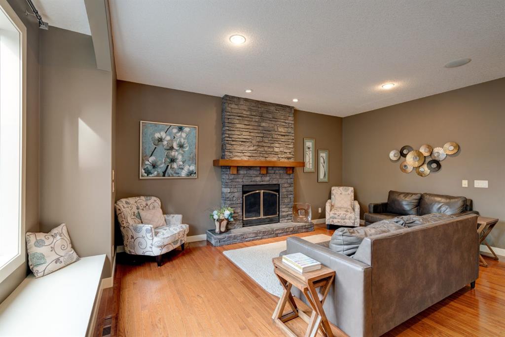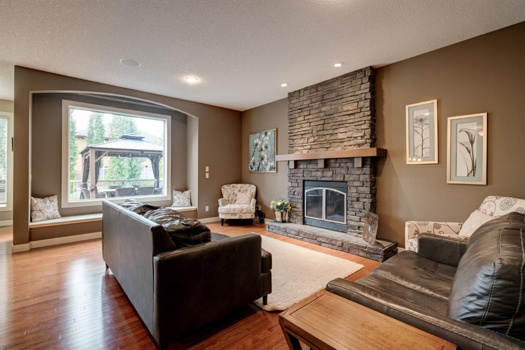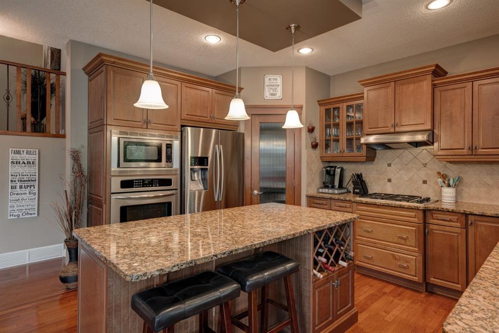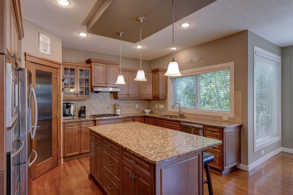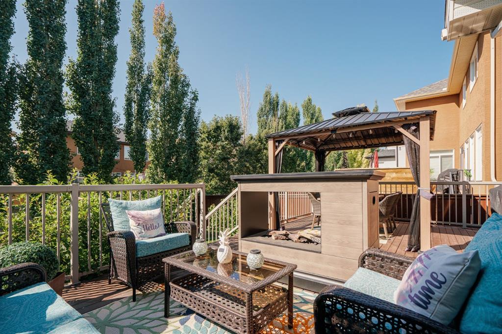 Nestled in the highly coveted Tuscany Estates, this exquisite Albi-built home is a masterpiece of design and craftsmanship. With over 3,000 sq.ft of living space over three levels, this meticulously maintained property offers the perfect blend of elegance and refinement. Situated on a generous ~5,300 sq.ft lot, this home is surrounded by the natural beauty of Tuscany Ridge and is conveniently located near parks, schools, shopping, and amenities. This home features a striking exterior facade with a front porch and a thoughtfully designed floor plan. The open concept main level features hardwood flooring spanning the main living areas with large south-facing windows at the rear of the property which allows natural light to flow into the home all day. The living room is highlighted by a gas fireplace with stone surround creating a warm and inviting atmosphere for relaxation. The gourmet kitchen is a chef’s delight, featuring granite countertops, an island, ample cabinet space and stainless-steel appliances including a gas cooktop, range hood, built-in wall oven and microwave. Completing the main level is a generous front office, mudroom with built-in storage and a 2-pc powder room. The primary suite is a true retreat, complete with a spa-like ensuite bathroom offering dual sinks, a soaker tub, walk-in tiled shower, and a walk-in closet. Two additional bedrooms, a full bathroom and a built-in study complete the upper level. The fully finished basement offers a wealth of entertainment options, including a home theater with projector & screen, a full bar, a 4th bedroom, and a full bathroom. The backyard has a beautifully landscaped south-facing yard, a spacious rear deck and a lower patio perfect for evening fires. Situated on a quiet and secluded Close, you’ll enjoy a high level of privacy and tranquility while providing easy access to Tuscany School, shopping centers, and a network of scenic walking and biking trails. This home has been lovingly maintained, ensuring that it’s in pristine condition and ready for its new owners to move in and start creating lasting memories. Don’t miss your opportunity to own this exceptional Tuscany Estates home!
