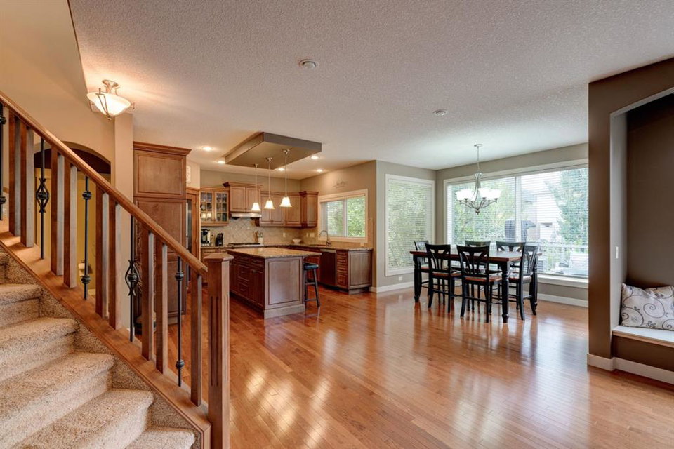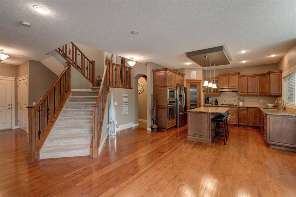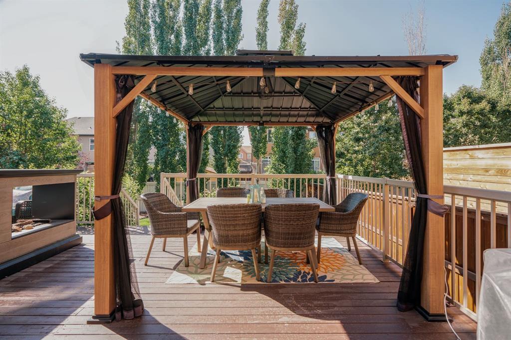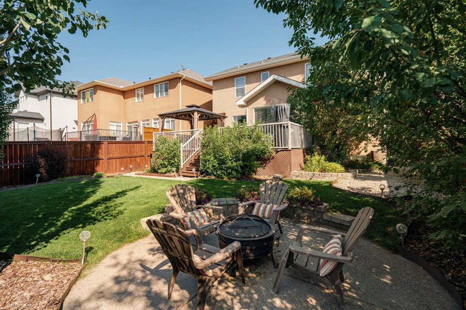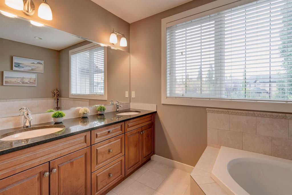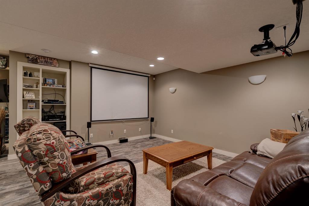 Nestled in the highly coveted Tuscany Estates, this exquisite Albi-built home is a masterpiece of design and craftsmanship. With over 3,000 sq.ft of living space over three levels, this meticulously maintained property offers the perfect blend of elegance and refinement. Situated on a generous ~5,300 sq.ft lot, this home is surrounded by the natural beauty of Tuscany Ridge and is conveniently located near parks, schools, shopping, and amenities. This home features a striking exterior facade with a front porch and a thoughtfully designed floor plan. The open concept main level features hardwood flooring spanning the main living areas with large south-facing windows at the rear of the property which allows natural light to flow into the home all day. The living room is highlighted by a gas fireplace with stone surround creating a warm and inviting atmosphere for relaxation. The gourmet kitchen is a chef’s delight, featuring granite countertops, an island, ample cabinet space and stainless-steel appliances including a gas cooktop, range hood, built-in wall oven and microwave. Completing the main level is a generous front office, mudroom with built-in storage and a 2-pc powder room. The primary suite is a true retreat, complete with a spa-like ensuite bathroom offering dual sinks, a soaker tub, walk-in tiled shower, and a walk-in closet. Two additional bedrooms, a full bathroom and a built-in study complete the upper level. The fully finished basement offers a wealth of entertainment options, including a home theater with projector & screen, a full bar, a 4th bedroom, and a full bathroom. The backyard has a beautifully landscaped south-facing yard, a spacious rear deck and a lower patio perfect for evening fires. Situated on a quiet and secluded Close, you’ll enjoy a high level of privacy and tranquility while providing easy access to Tuscany School, shopping centers, and a network of scenic walking and biking trails. This home has been lovingly maintained, ensuring that it’s in pristine condition and ready for its new owners to move in and start creating lasting memories. Don’t miss your opportunity to own this exceptional Tuscany Estates home!