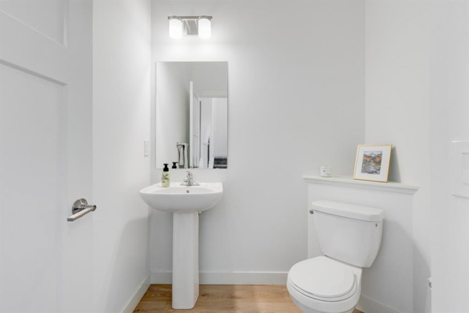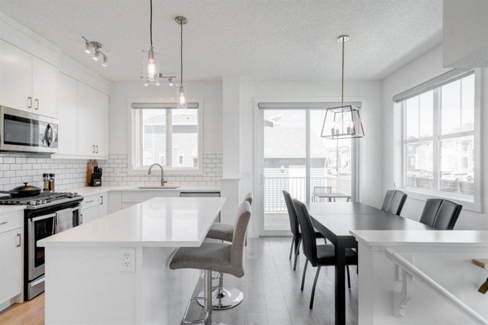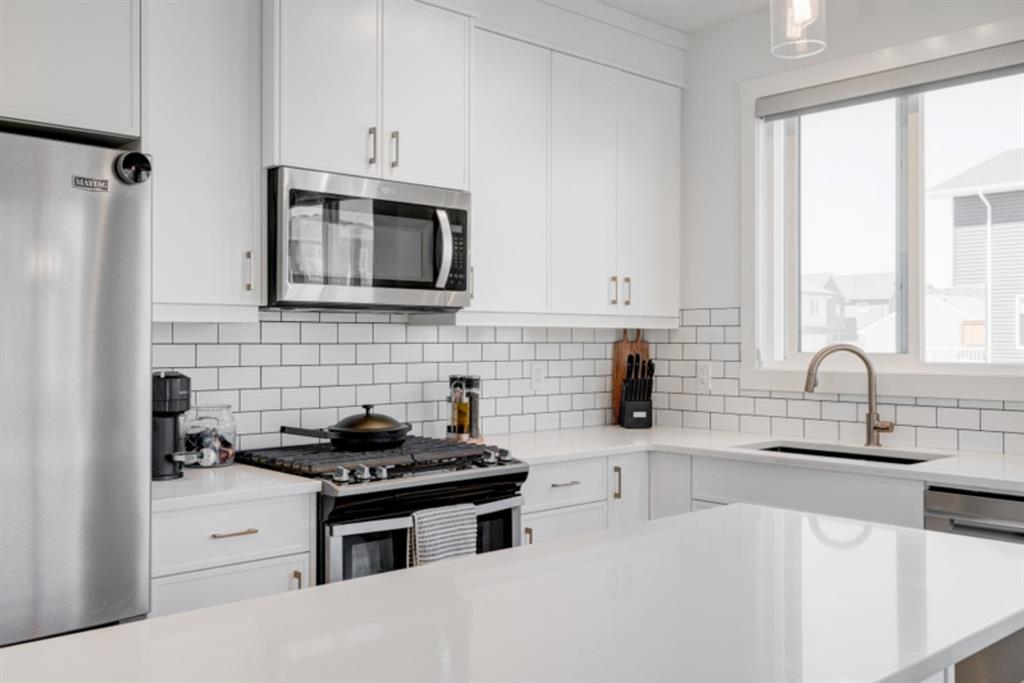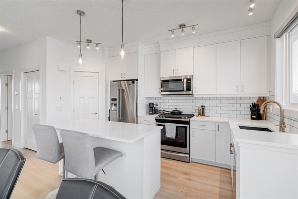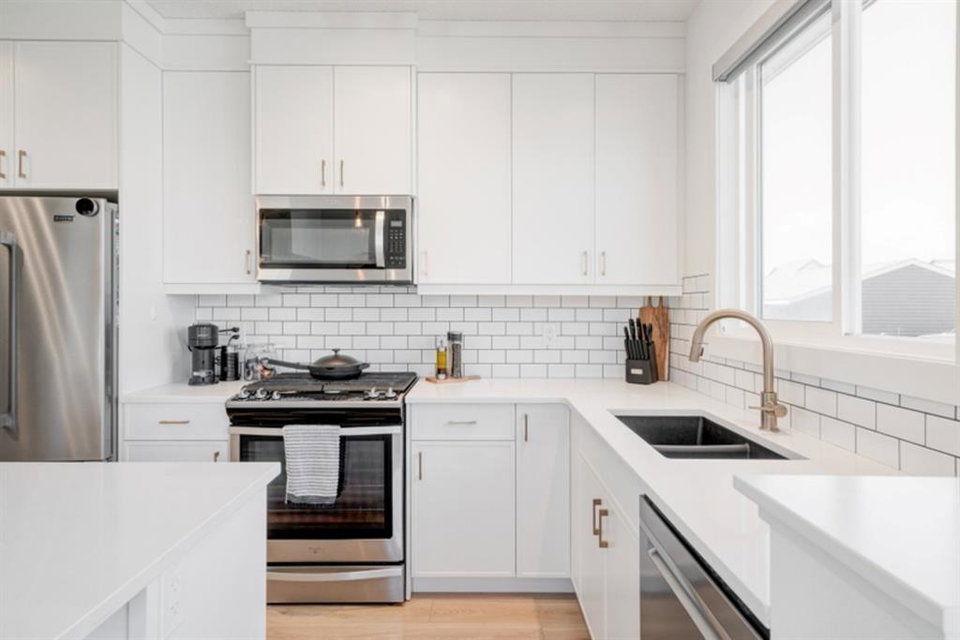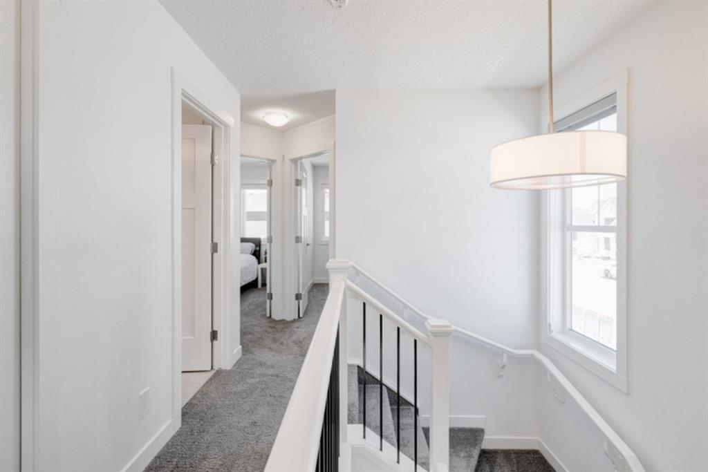 This immaculate Seton home is located on a corner lot and on a quiet street that is minutes away from all of the amenities offered in this award-winning community. Built in 2021 this home shows like-new and is fully equipped with 3 bedrooms, 2.5 bathrooms, and almost 1,300 sq. ft of living space – perfect for a family or young professionals. Timelessly designed, this home features a bright white kitchen with endless natural light, full-height cabinetry, subway tile backsplash, quartz countertops, a suite of stainless-steel appliances including a gas range and custom Hunter Douglas window coverings. Completing the kitchen is a corner pantry, island with added seating, and sliding doors to the rear deck making the perfect space for entertaining guests. This home is finished with resilient laminate flooring throughout the main, and a 2 pc powder room and convenient side entrance (perfect for adding a basement suite, which the zoning permits) complete the main level. Open railing from the main to upper level allows for natural light to flow through both levels all day long. The upper floor offers a large primary bedroom with a 5-piece ensuite, including dual sinks and a beautiful tiled shower and soaker tub. Additionally, there are two more bedrooms and a full bathroom as well as stacked laundry conveniently located on the top floor. The basement is undeveloped and awaiting your final touches! Plumbing is roughed-in for a future bathroom, plus a window meeting egress for a future bedroom in addition to a family room or full suite. The private detached garage at the rear of the home will keep your vehicle and valuables safe all year long. The fully fenced backyard offers plenty of green space for the family to enjoy (nearly double the size of the neighbouring lot), while the deck comes equipped with a gas line for the BBQ, and a graveled space for the fire pit – making for the perfect space to enjoy the summer and fall. This family-oriented street is perfect for those looking to grow their family in desirable Seton, minutes away from the many amenities this community has to offer.