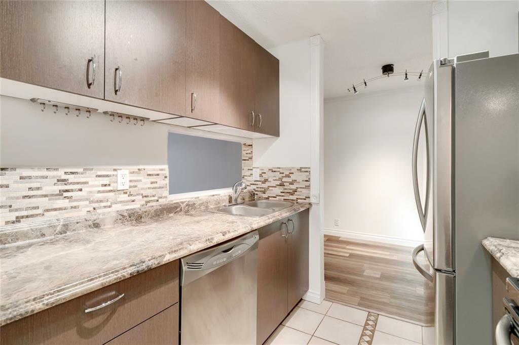 Beautiful top floor penthouse unit that has been upgraded throughout! This one bedroom condo features an updated kitchen complete with a suite of stainless steel appliances and has been renovated to include new flooring and fresh paint. The kitchen is open to the dining and main living area – making a great space for entertaining guests! The expansive living room is complete with a corner fireplace and large balcony with south-facing windows allowing natural light to flow through. The large master bedroom has ample space for a king bed and is located next to the full bathroom. Convenient in-suite laundry and a large storage room complete the unit. Additional storage and heated, secure underground parking stall complete included. Within walking distance to countless nearby amenities including Chinook Mall, numerous Elbow Drive new developments and the Chinook LRT. This condo is perfect for the first time buyer or investor who wants an updated move-in ready unit at an incredible price.