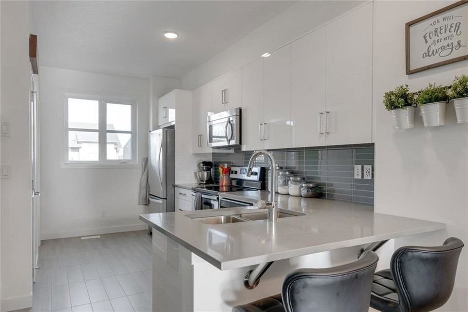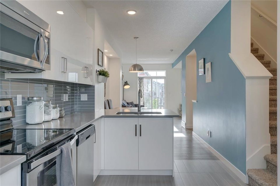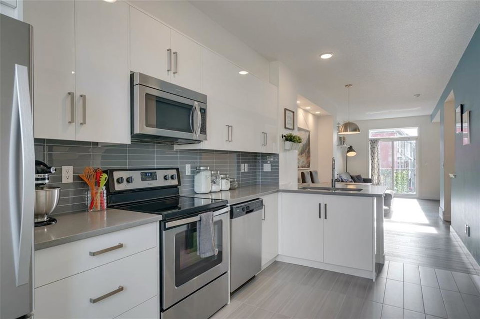 This beautiful 2 bedroom, 2 bathroom + den townhouse is located in the heart of Walden with a private attached garage! Pride of ownership shines throughout this townhouse that is fully move-in ready. The main entrance has a large den that provides the perfect space for a TV area, children’s play room, or a home office – perfect for today’s working environment with natural light shining in! The main level is completely open, making entertaining extremely easy. The kitchen is complete with timeless white cabinets, quartz countertops and stainless steel appliances. The dining and living areas are both bright and open with a large balcony off of the main room. The upper level includes two master bedrooms, each complete with their own private en suites. Convenient upper level laundry completes this home. Enjoy your private attached garage all year long and soak up the sun in this bright townhouse that has easy access to countless nearby amenities. Low condo fees + maintenance-free living!