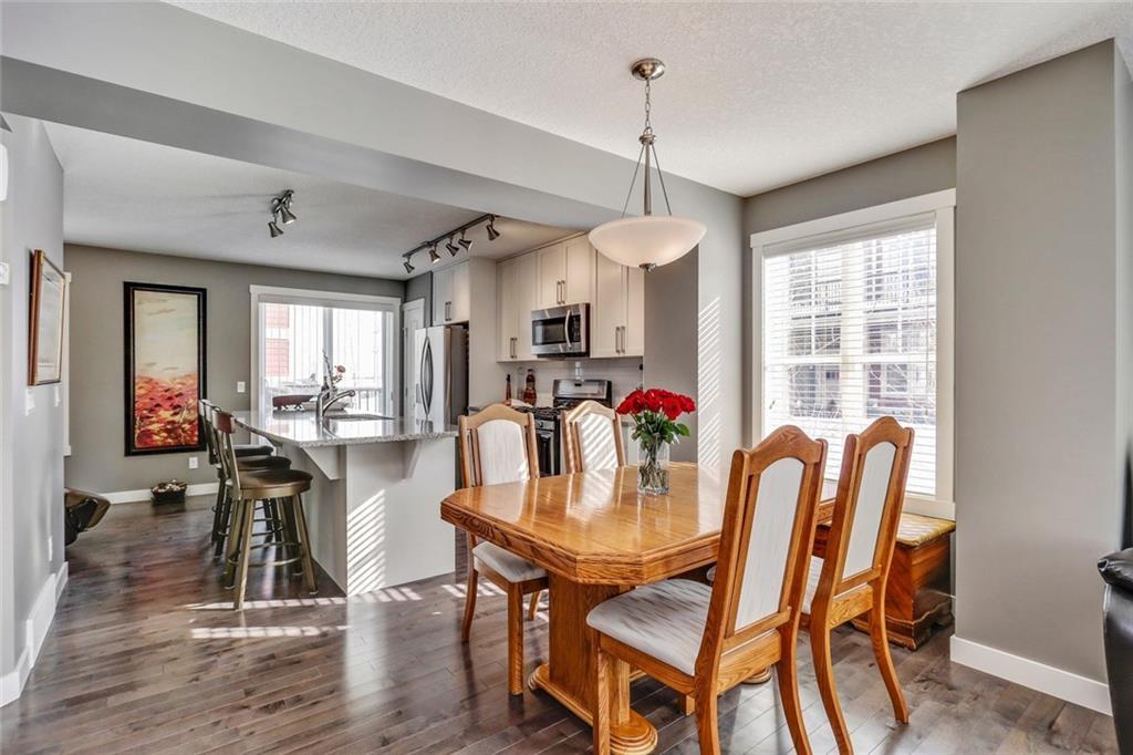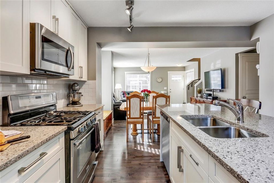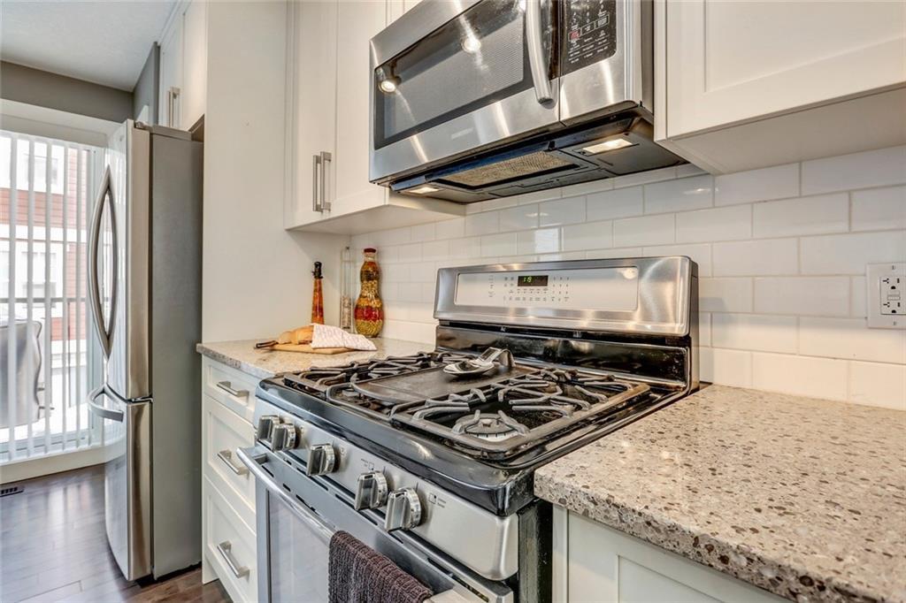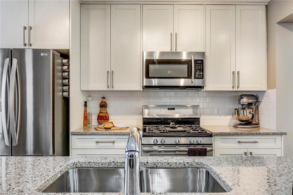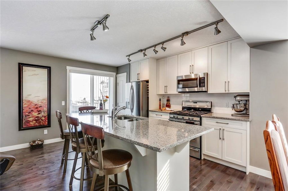 Immaculate END-UNIT townhouse with countless upgrades! Hardwood and tiling flooring, ceiling height cabinets with quartz countertops, gas range, custom window coverings, central air-conditioning, finished basement and more. The end-unit provides added windows that allow for natural light to flow through the open concept all day long. Charcoal hardwood flooring guides you to the kitchen with a 9′ island and upgraded appliance package – perfect for entertaining. The ‘flex’ space off the kitchen can easily be converted to a dining area or utilized for the home office. The upper level includes two master bedrooms each complete with their own walk-in closets and private en suites. A large laundry room is conveniently located on the second level that includes plenty of additional storage space. Epoxy flooring flows throughout the finished partial basement and private double attached garage. Soak up the sun on the fenced WEST patio. Low fees & great location in this virtually new home!
