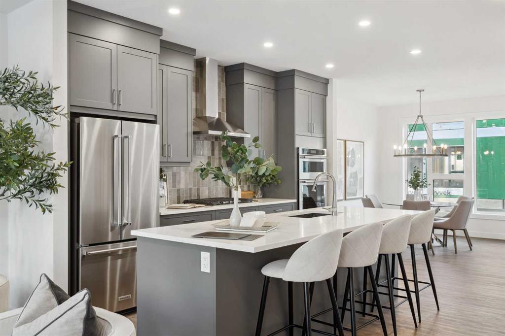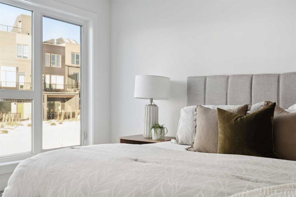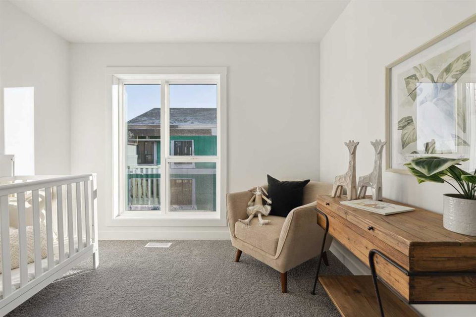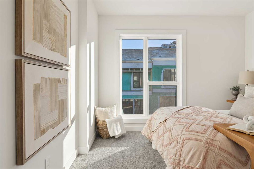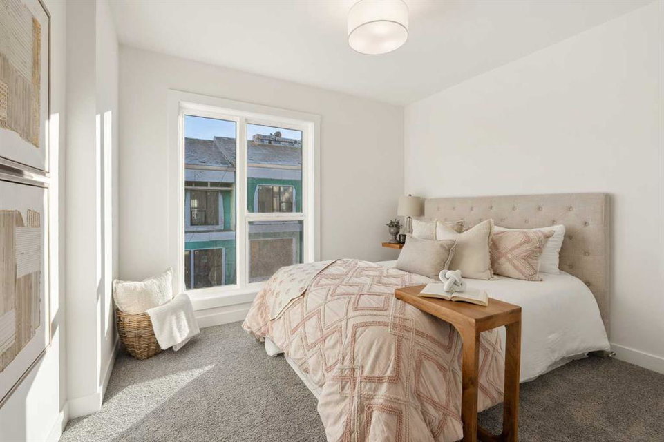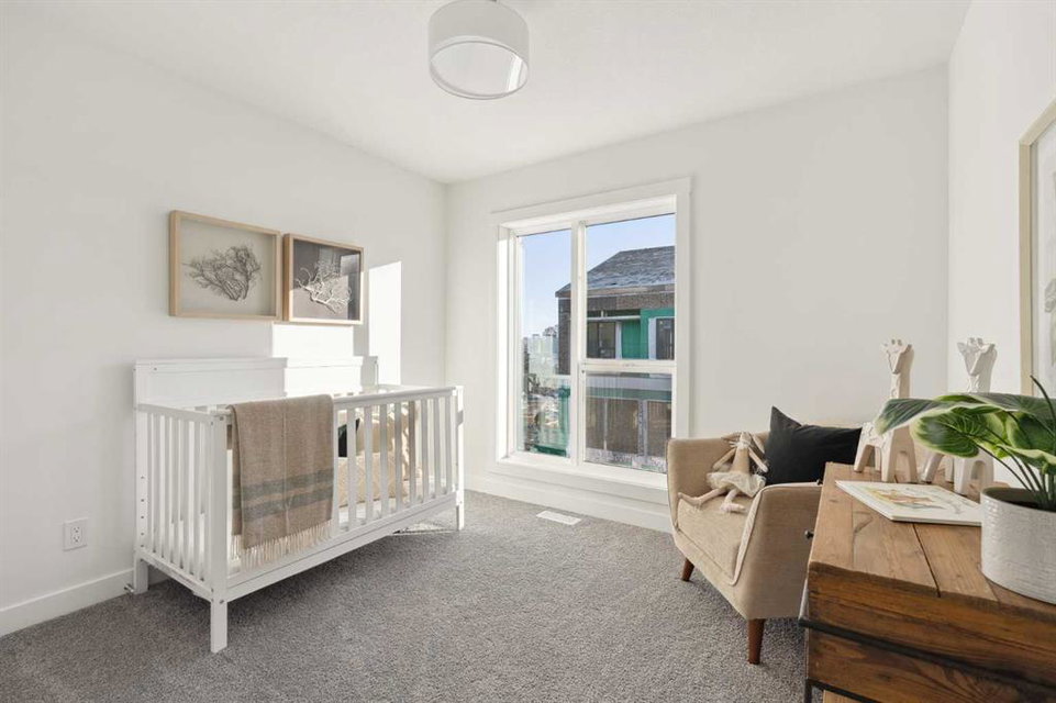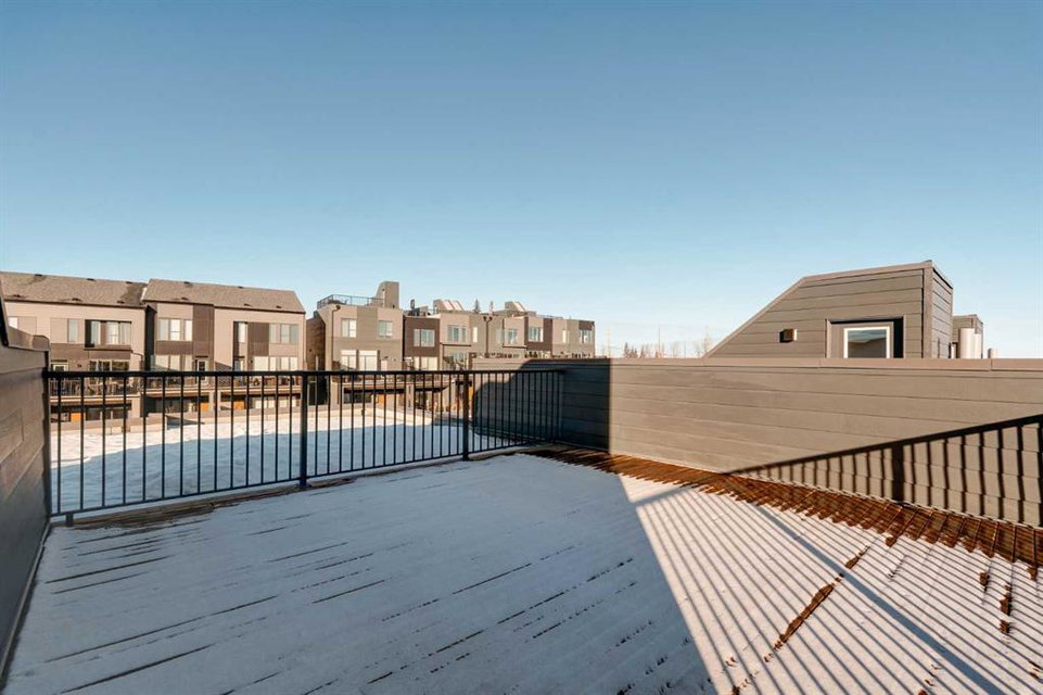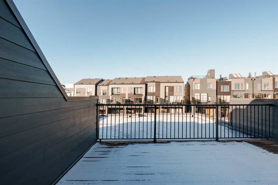 This brand-new home is ready for IMMEDIATE POSSESSION, featuring 3 bedrooms, 2.5 bathrooms, an office/flex space, a double attached garage, and two outdoor living areas, including an impressive 300-square-foot rooftop patio! The ‘Rouge’ is an urban townhome at Crown Park, offering nearly 2,200 square feet of interior living space and almost 500 square feet of outdoor space. The open-concept main living area is thoughtfully designed with a spacious layout, showcasing 9′ ceilings and oversized windows that flood the home with natural light from morning to night. At the center of this home is the gourmet kitchen, perfectly positioned between the dining area and the main living room, making it an ideal space for entertaining. It features a gas cooktop, built-in microwave and oven, range hood, a large quartz island with seating, and elegant design details throughout. A generous west-facing ground-level patio stretches across the home, overlooking the central courtyard, with direct access from the main living area. Upstairs, the expansive primary bedroom includes a walk-in closet and a full ensuite with dual sinks and a walk-in shower with tile surround. Two additional well-sized bedrooms, a laundry area, and a full bathroom complete the second level. The 17′ x 18′ rooftop patio offers breathtaking views with east and west exposure, perfect for soaking up the sun year-round. The lower level features a welcoming foyer with storage and an office/flex room, ideal for a home office, media room, or gym. The private double attached garage ensures your vehicles and valuables stay safe and warm throughout the year. Additional upgrades include A/C rough-in, natural gas lines for BBQs on both patios, and a comprehensive 3-year extended workmanship warranty program. This stunning property provides all the conveniences of downtown living without the congestion. Located just minutes from downtown Calgary, Crown Park offers a unique opportunity to own a beautiful, brand-new home in a picturesque setting.