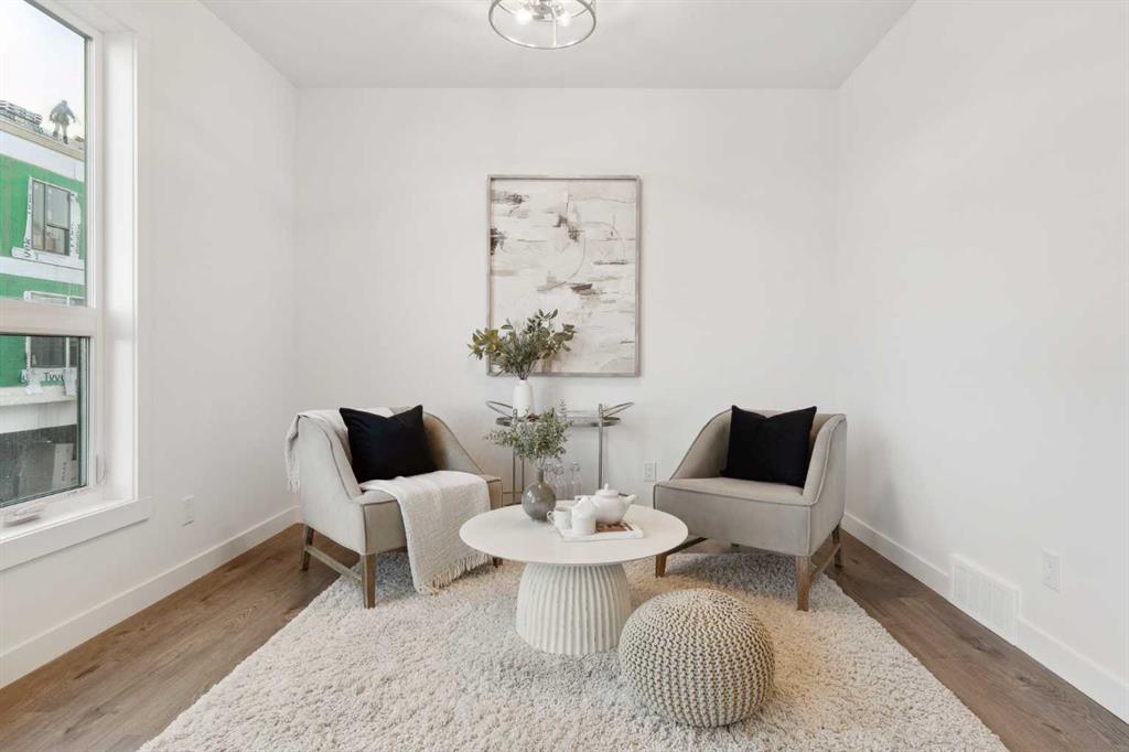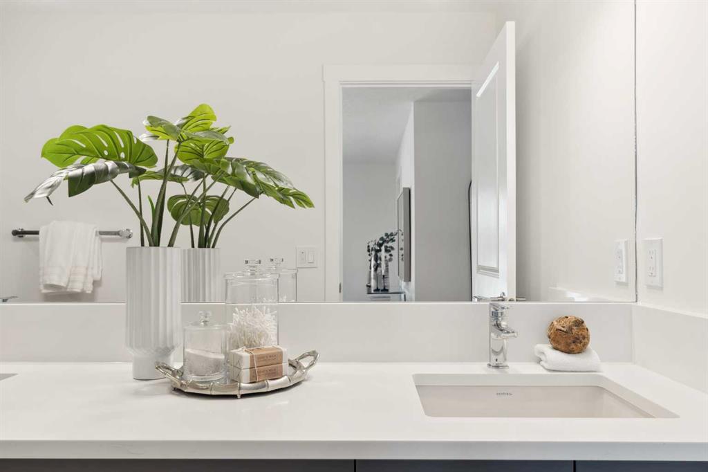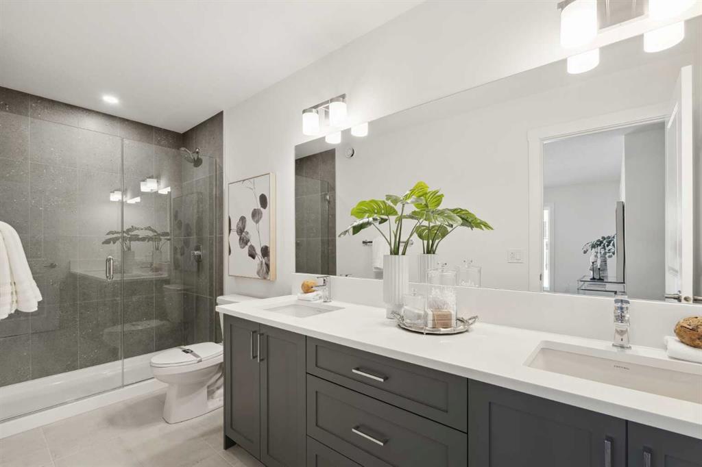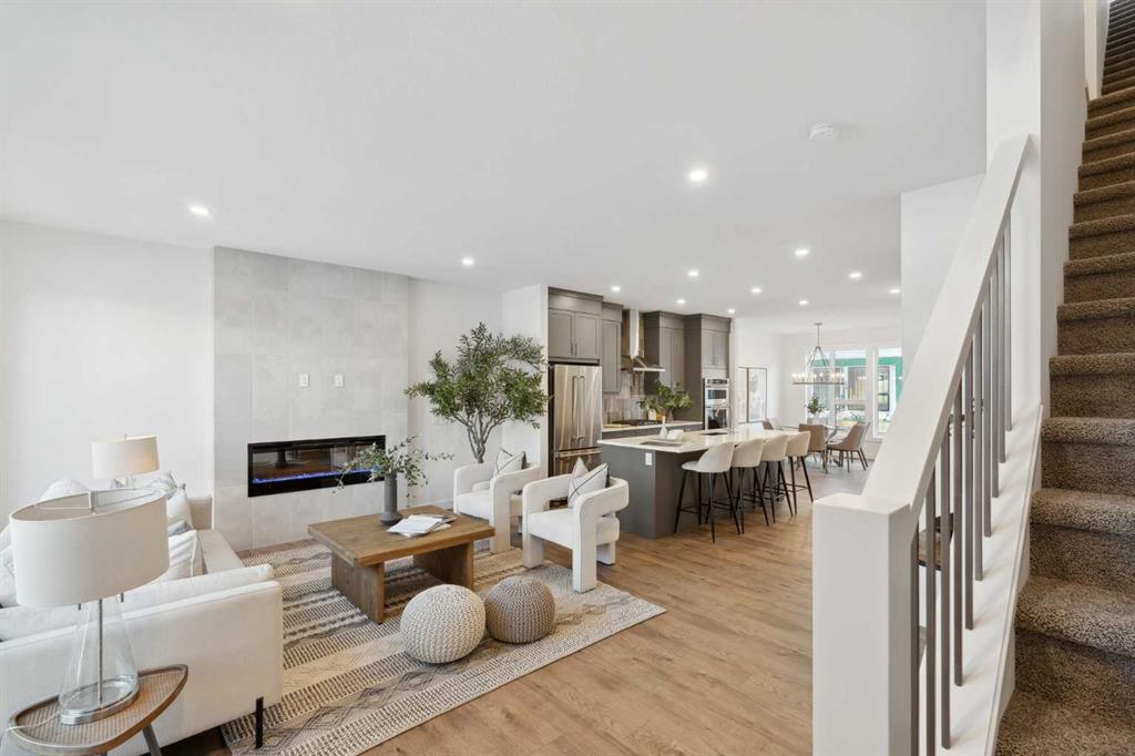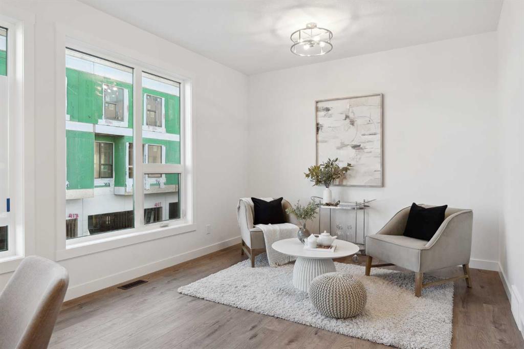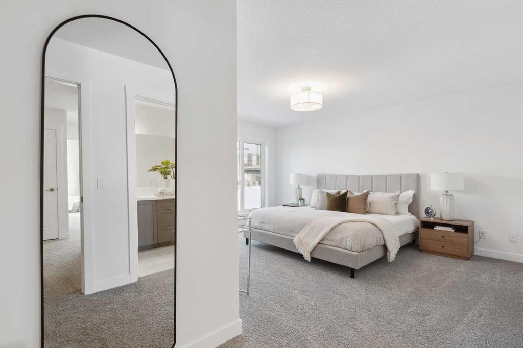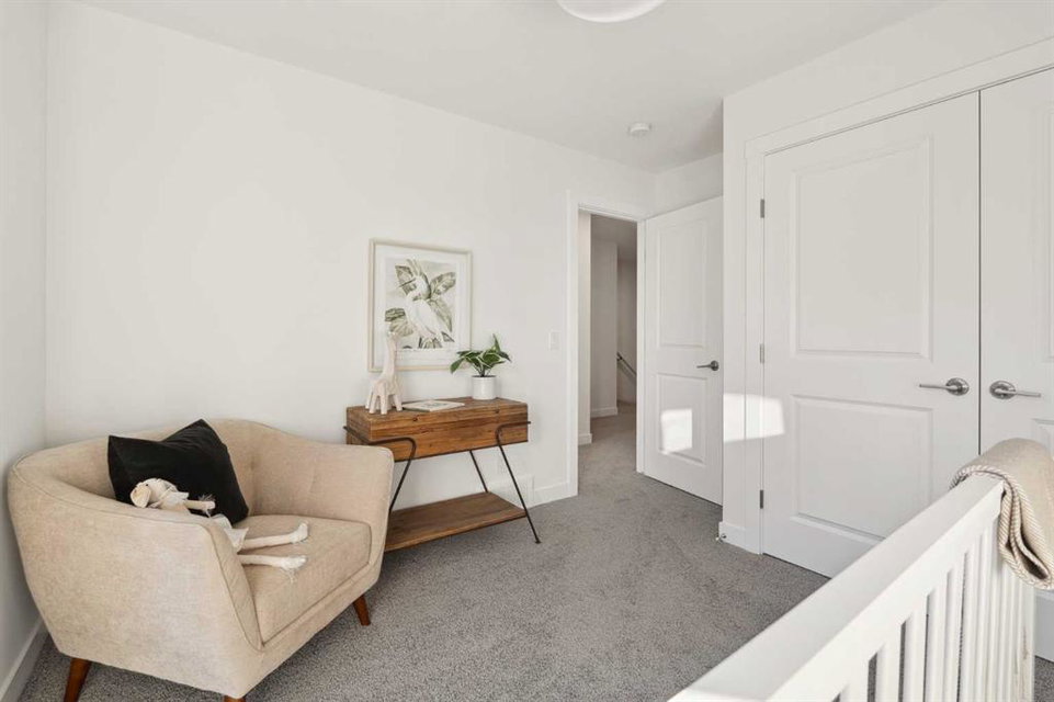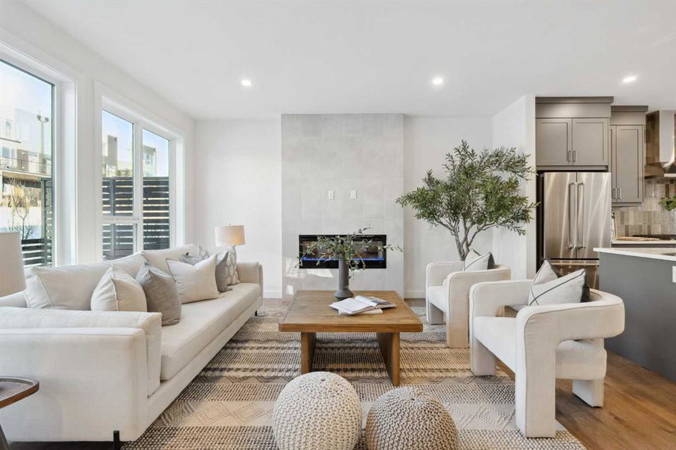 This brand-new home is ready for IMMEDIATE POSSESSION, featuring 3 bedrooms, 2.5 bathrooms, an office/flex space, a double attached garage, and two outdoor living areas, including an impressive 300-square-foot rooftop patio! The ‘Rouge’ is an urban townhome at Crown Park, offering nearly 2,200 square feet of interior living space and almost 500 square feet of outdoor space. The open-concept main living area is thoughtfully designed with a spacious layout, showcasing 9′ ceilings and oversized windows that flood the home with natural light from morning to night. At the center of this home is the gourmet kitchen, perfectly positioned between the dining area and the main living room, making it an ideal space for entertaining. It features a gas cooktop, built-in microwave and oven, range hood, a large quartz island with seating, and elegant design details throughout. A generous west-facing ground-level patio stretches across the home, overlooking the central courtyard, with direct access from the main living area. Upstairs, the expansive primary bedroom includes a walk-in closet and a full ensuite with dual sinks and a walk-in shower with tile surround. Two additional well-sized bedrooms, a laundry area, and a full bathroom complete the second level. The 17′ x 18′ rooftop patio offers breathtaking views with east and west exposure, perfect for soaking up the sun year-round. The lower level features a welcoming foyer with storage and an office/flex room, ideal for a home office, media room, or gym. The private double attached garage ensures your vehicles and valuables stay safe and warm throughout the year. Additional upgrades include A/C rough-in, natural gas lines for BBQs on both patios, and a comprehensive 3-year extended workmanship warranty program. This stunning property provides all the conveniences of downtown living without the congestion. Located just minutes from downtown Calgary, Crown Park offers a unique opportunity to own a beautiful, brand-new home in a picturesque setting.