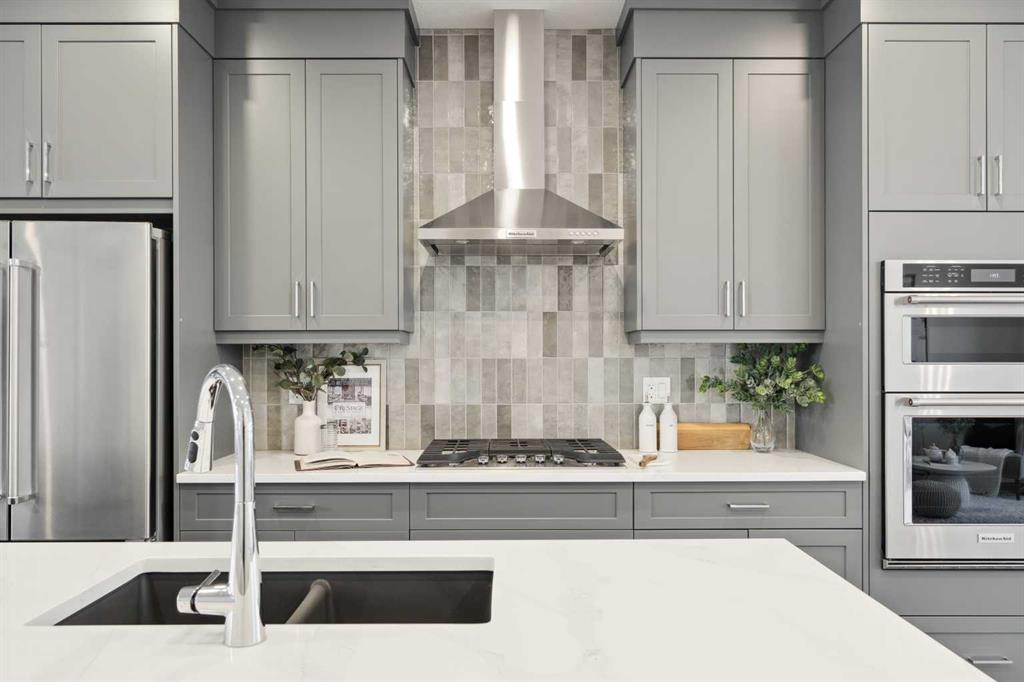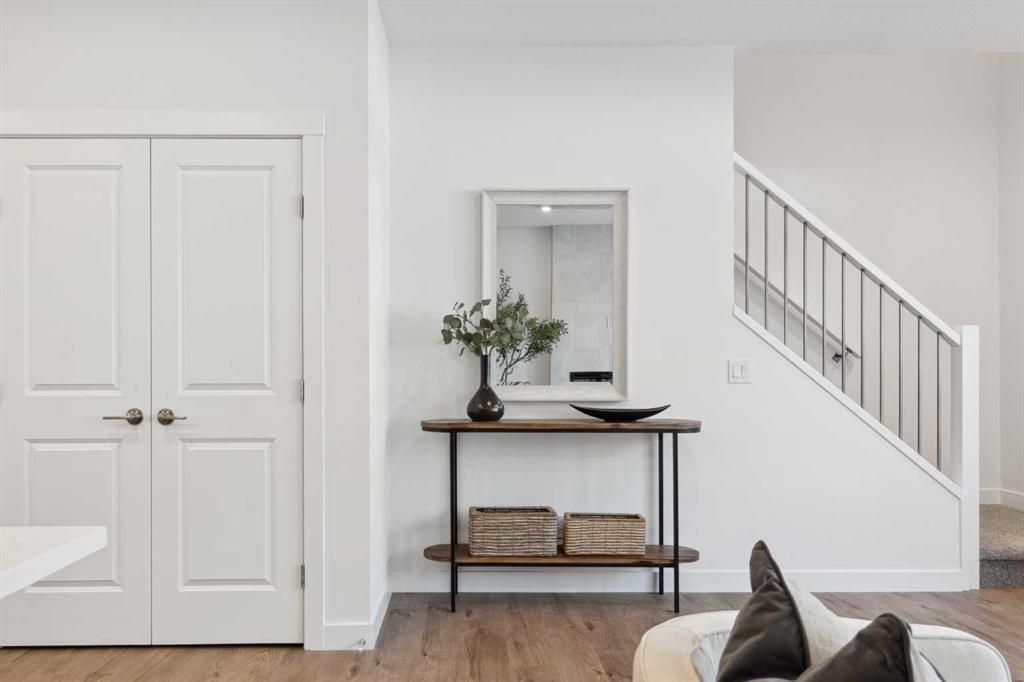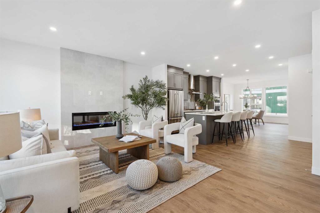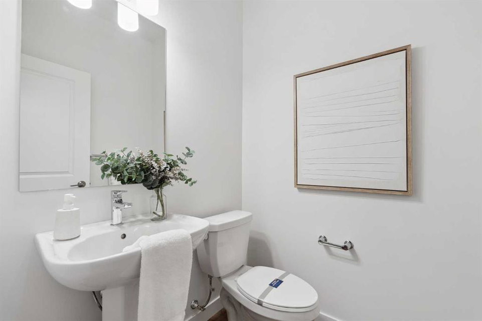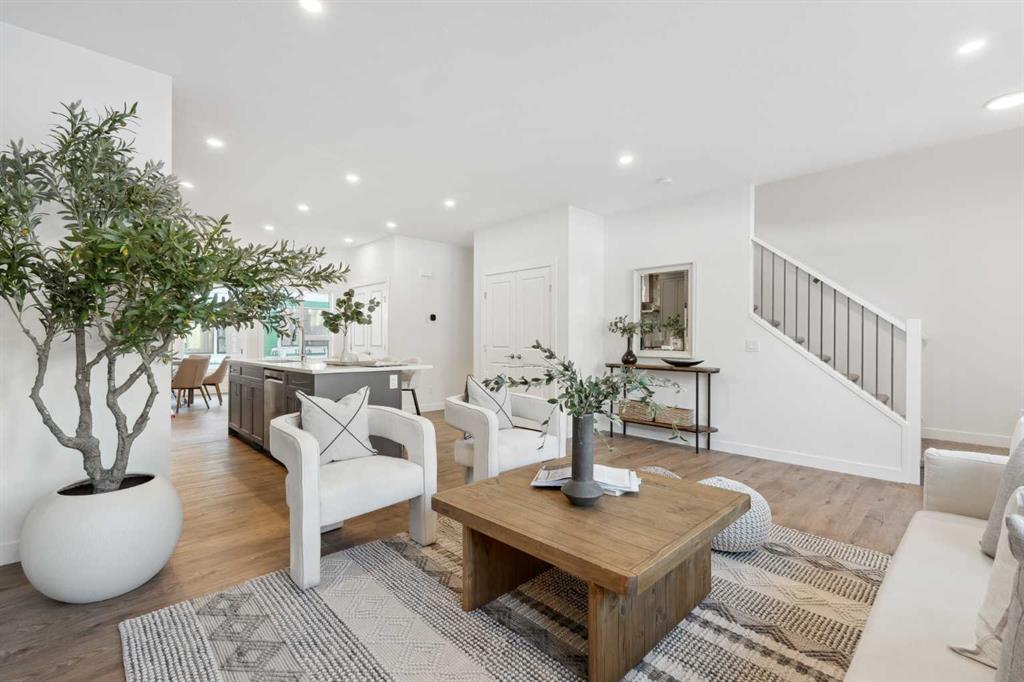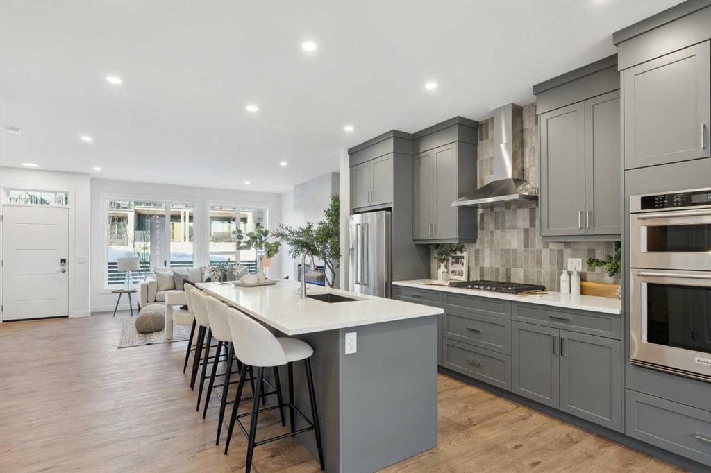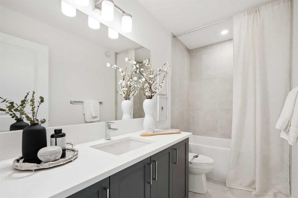 This brand-new home is ready for IMMEDIATE POSSESSION, featuring 3 bedrooms, 2.5 bathrooms, an office/flex space, a double attached garage, and two outdoor living areas, including an impressive 300-square-foot rooftop patio! The ‘Rouge’ is an urban townhome at Crown Park, offering nearly 2,200 square feet of interior living space and almost 500 square feet of outdoor space. The open-concept main living area is thoughtfully designed with a spacious layout, showcasing 9′ ceilings and oversized windows that flood the home with natural light from morning to night. At the center of this home is the gourmet kitchen, perfectly positioned between the dining area and the main living room, making it an ideal space for entertaining. It features a gas cooktop, built-in microwave and oven, range hood, a large quartz island with seating, and elegant design details throughout. A generous west-facing ground-level patio stretches across the home, overlooking the central courtyard, with direct access from the main living area. Upstairs, the expansive primary bedroom includes a walk-in closet and a full ensuite with dual sinks and a walk-in shower with tile surround. Two additional well-sized bedrooms, a laundry area, and a full bathroom complete the second level. The 17′ x 18′ rooftop patio offers breathtaking views with east and west exposure, perfect for soaking up the sun year-round. The lower level features a welcoming foyer with storage and an office/flex room, ideal for a home office, media room, or gym. The private double attached garage ensures your vehicles and valuables stay safe and warm throughout the year. Additional upgrades include A/C rough-in, natural gas lines for BBQs on both patios, and a comprehensive 3-year extended workmanship warranty program. This stunning property provides all the conveniences of downtown living without the congestion. Located just minutes from downtown Calgary, Crown Park offers a unique opportunity to own a beautiful, brand-new home in a picturesque setting.