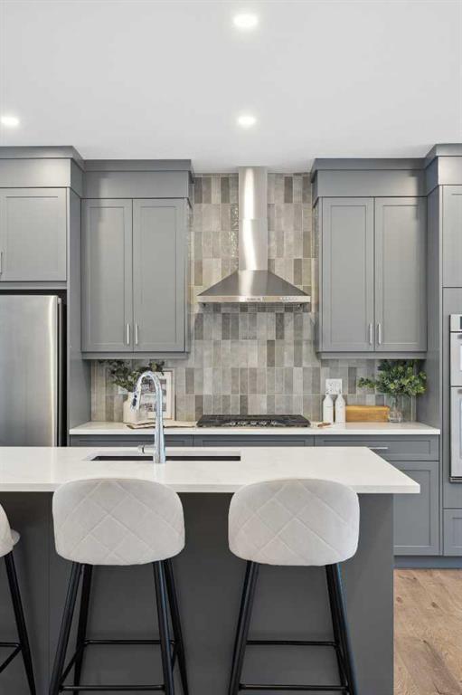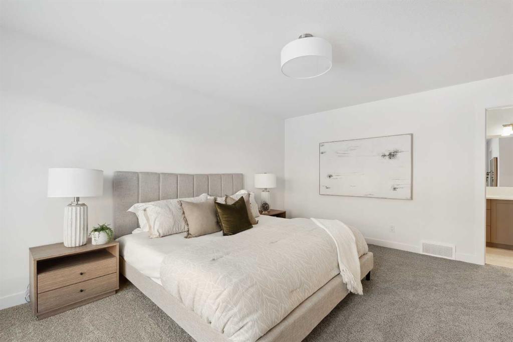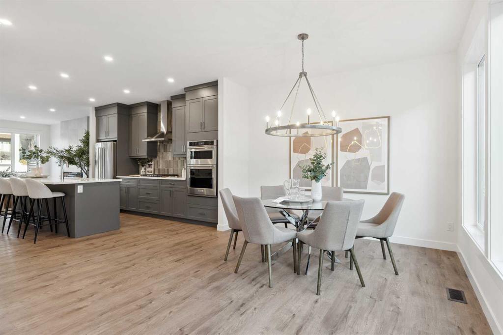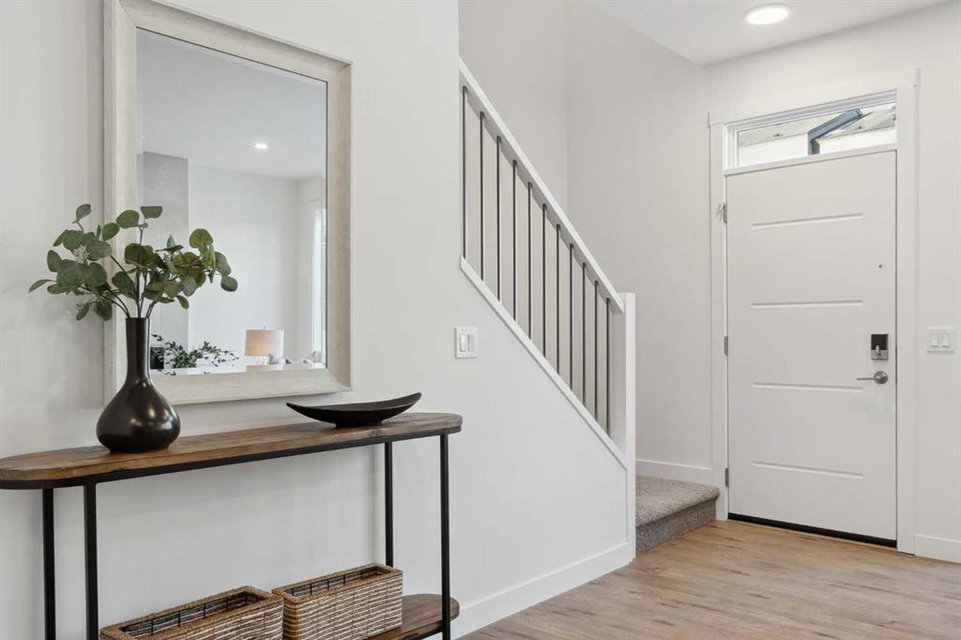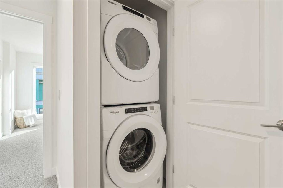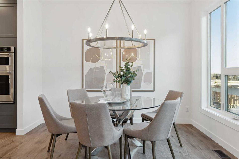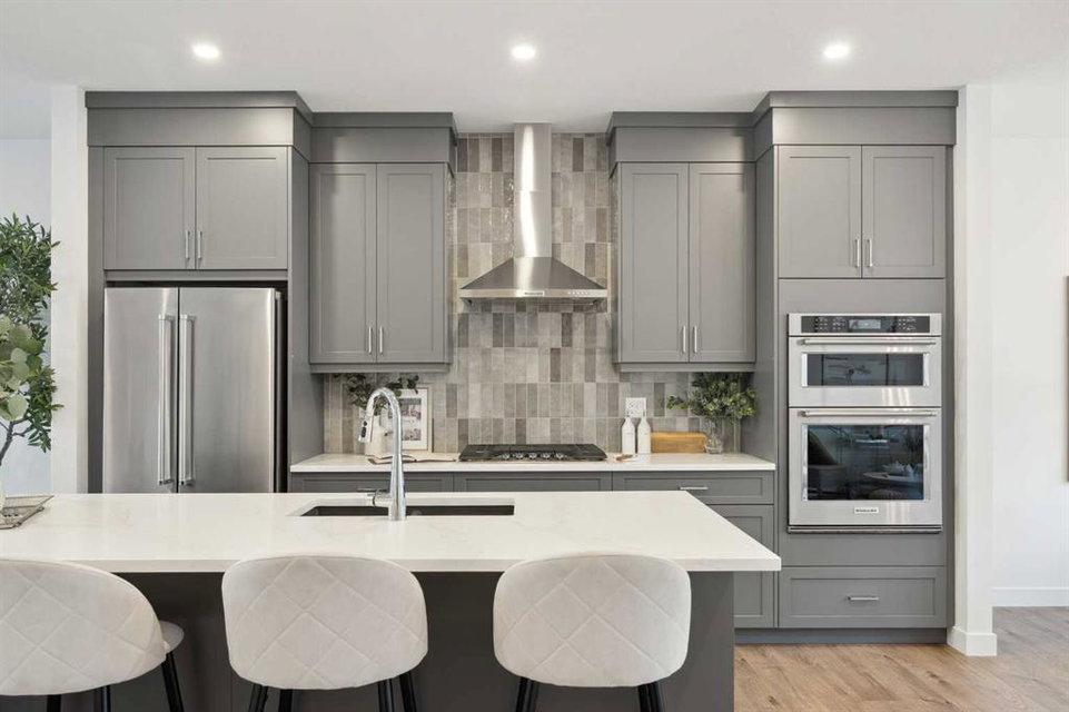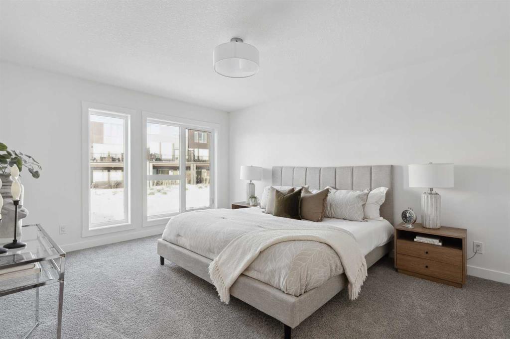This brand-new home is ready for IMMEDIATE POSSESSION, featuring 3 bedrooms, 2.5 bathrooms, an office/flex space, a double attached garage, and two outdoor living areas, including an impressive 300-square-foot rooftop patio! The ‘Rouge’ is an urban townhome at Crown Park, offering nearly 2,200 square feet of interior living space and almost 500 square feet of outdoor space. The open-concept main living area is thoughtfully designed with a spacious layout, showcasing 9′ ceilings and oversized windows that flood the home with natural light from morning to night. At the center of this home is the gourmet kitchen, perfectly positioned between the dining area and the main living room, making it an ideal space for entertaining. It features a gas cooktop, built-in microwave and oven, range hood, a large quartz island with seating, and elegant design details throughout. A generous west-facing ground-level patio stretches across the home, overlooking the central courtyard, with direct access from the main living area. Upstairs, the expansive primary bedroom includes a walk-in closet and a full ensuite with dual sinks and a walk-in shower with tile surround. Two additional well-sized bedrooms, a laundry area, and a full bathroom complete the second level. The 17′ x 18′ rooftop patio offers breathtaking views with east and west exposure, perfect for soaking up the sun year-round. The lower level features a welcoming foyer with storage and an office/flex room, ideal for a home office, media room, or gym. The private double attached garage ensures your vehicles and valuables stay safe and warm throughout the year. Additional upgrades include A/C rough-in, natural gas lines for BBQs on both patios, and a comprehensive 3-year extended workmanship warranty program. This stunning property provides all the conveniences of downtown living without the congestion. Located just minutes from downtown Calgary, Crown Park offers a unique opportunity to own a beautiful, brand-new home in a picturesque setting.