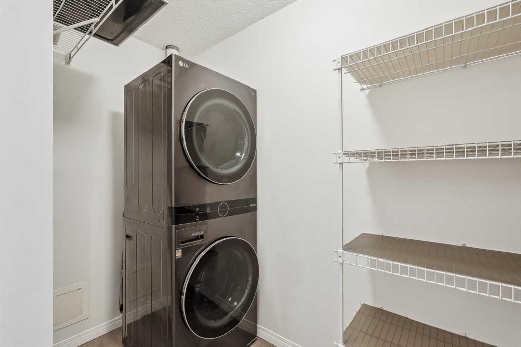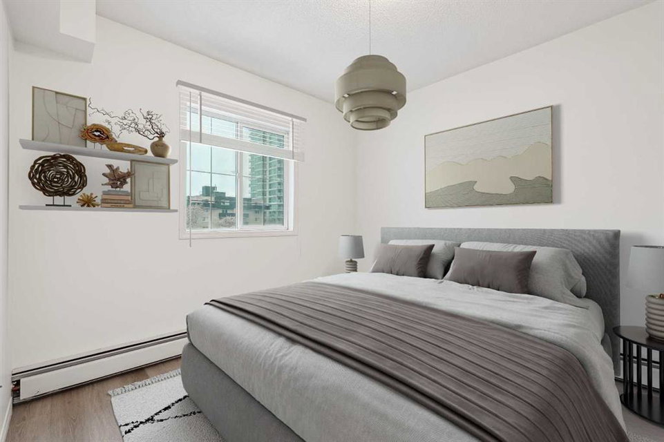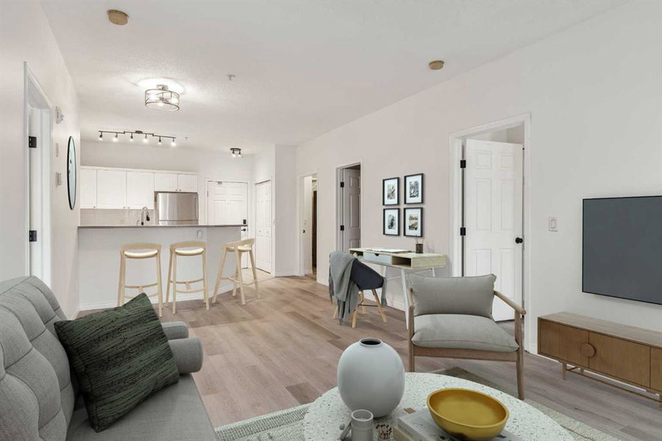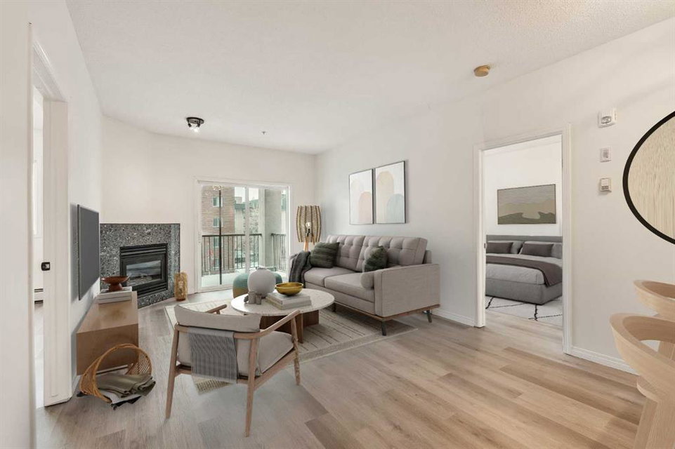 Welcome to Urban Living in the Heart of the Beltline! This move-in-ready 2-bedroom, 2-bathroom condo offers the perfect blend of style, functionality, and location—ideal for first-time buyers, downsizers, or investors looking for a prime inner-city property. Nestled in the vibrant Beltline community, this home places you within walking distance of cafes, top-rated restaurants, boutique shops, and downtown amenities, offering an unparalleled urban lifestyle. The bright, open-concept layout allows natural light to flood the space, creating a warm and inviting atmosphere. Recently updated with fresh paint and modern vinyl plank flooring, this home feels contemporary and is fully move-in ready. The timeless white kitchen is complete with a suite of stainless-steel appliances and overlooks both the living and dining areas, making it perfect for entertaining. The living room features a cozy corner gas fireplace, providing the perfect space to unwind after a long day or stay warm on a cold winter night. The floor plan places the bedrooms on opposite sides of the unit, ensuring privacy and functionality. The spacious primary suite includes a walk-through closet leading to a private 4-piece ensuite, while the second bedroom is conveniently located next to its own full bathroom—ideal for guests, roommates, or a home office. A large, south-facing covered balcony extends your living space outdoors, offering the perfect spot to enjoy your morning coffee or relax in the evening while taking in the surrounding views. Additional features include in-suite laundry and a titled underground parking stall, which provides year-round security and convenience. Located just steps from 1st Street, 17th Avenue, Stampede Park, and the downtown core, this condo offers the best of walkable city living, with easy access to transit, parks, and nightlife right at your doorstep. Don’t miss your chance to own in one of Calgary’s most sought-after inner-city neighborhoods—book your showing today!