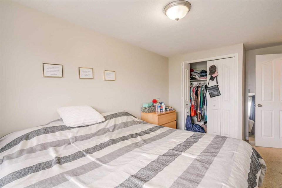 **Corner Unit townhouse with NO CONDO FEES** This townhome features 4 bedrooms 2.5 bathrooms and over 1,500 square feet of developed space. The home offers an excellent layout with a rear kitchen and dining room – making a great space for families or those who entertain. South-facing windows in the living room allow natural light to pour into the home from morning to evening creating a bright and inviting space. The home is finished with modern laminate flooring on the main level and a suite of stainless-steel appliances. Completing the main level is a 2 pc powder room. The upper level of the home features 3 bedrooms and 4 pc bathrooms. The large primary suite is located at the front of the home overlooking the yard. Two additional bedrooms, a full bathroom and a linen closet completes the upper level. The fully developed basement includes a 4th bedroom, full bathroom, and family room ideal for a kids play area. Completing the lower level is a large storage / utility room. The expansive front yard offers a south exposure with plenty of green space for the family to enjoy. Additionally, the home has a front patio perfect for BBQs with friends and family. The corner lot provides ample parking for vehicles, with additional room for RV parking. This townhome is perfect for those looking for a wonderful property in Forest Heights, minutes from schools, green spaces, and amenities. Book your showing today!