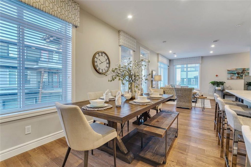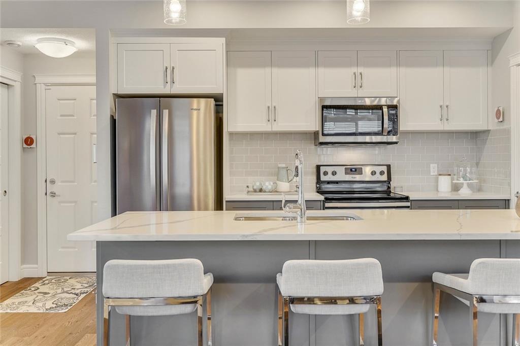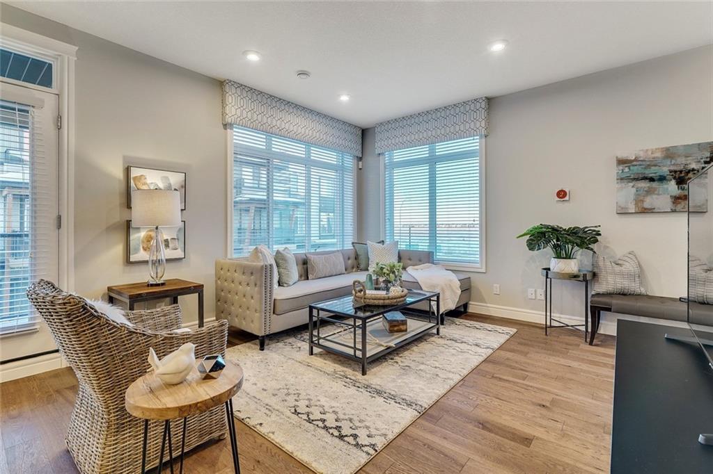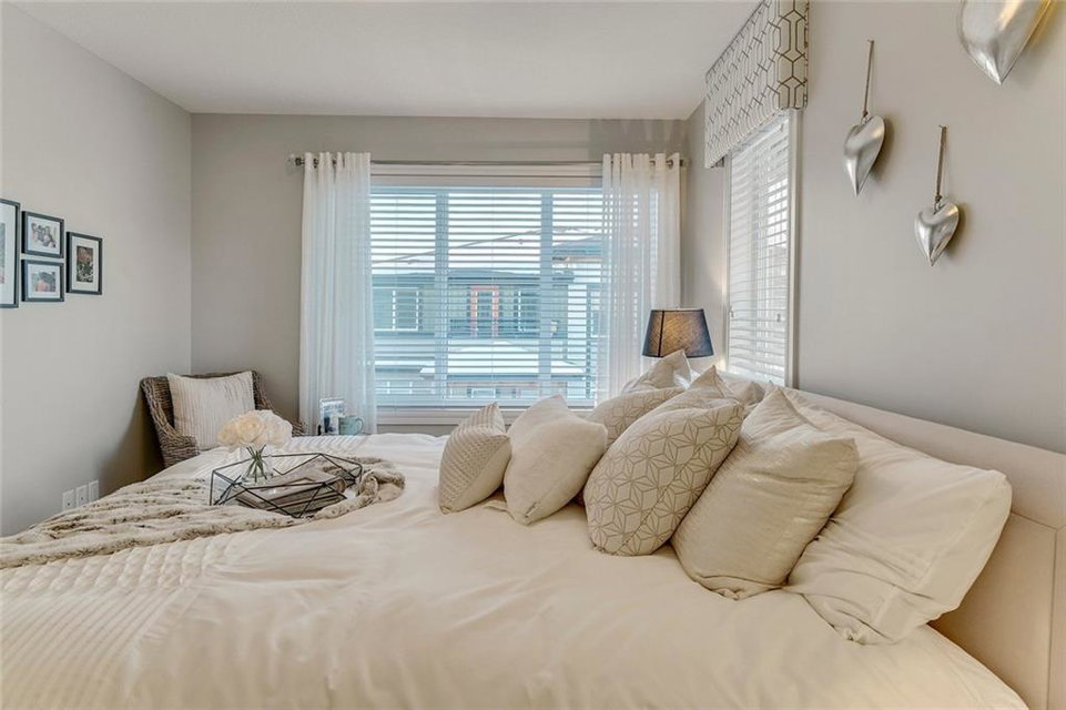 The ‘Bergen’ Built by Rohit Communities, one of Alberta’s largest homebuilders is a beautifully designed townhouse combines functionality and design, feeling more like a single family home than a townhouse. The large kitchen is open to living and dining areas with walls of windows, providing a bright and timeless space. Kitchen is complete with quartz countertops, designer fixtures and stainless-steel appliances. The upper level has a large master bedroom with private ensuite & 2 comfortable bedrooms, a full bathroom & ample space for an office on the upper level. This home is finished in ‘Boho Chic designer interior with beautifully sleek hardware, marble style quartz countertops throughout, laminate flooring in the living space & tiled bathroom floors. To top it off this home as a hard to find single attached garage + storage space. *Note: Photos from show home & are not exact representation of property for sale.