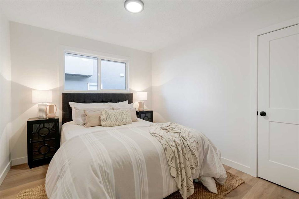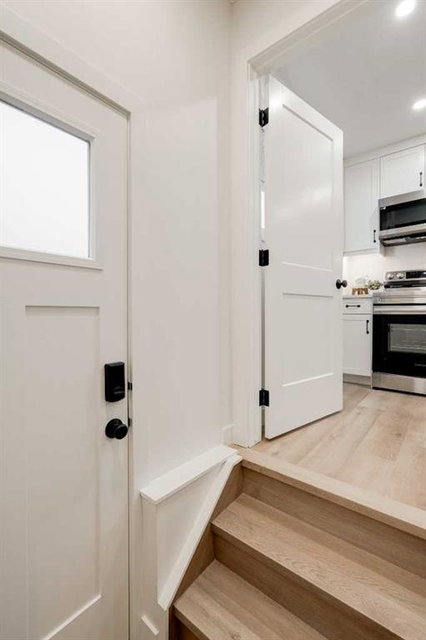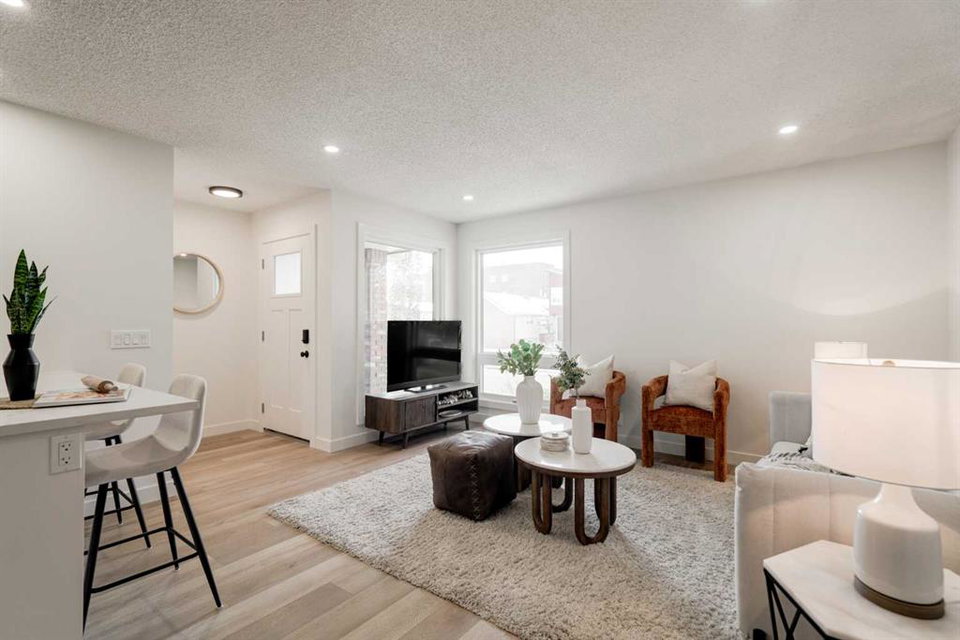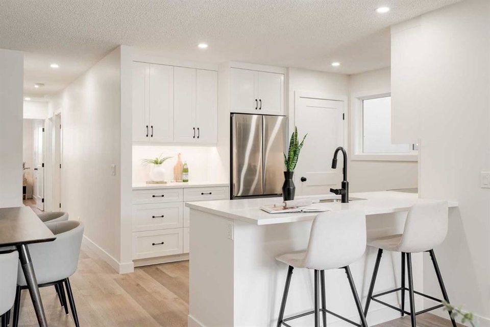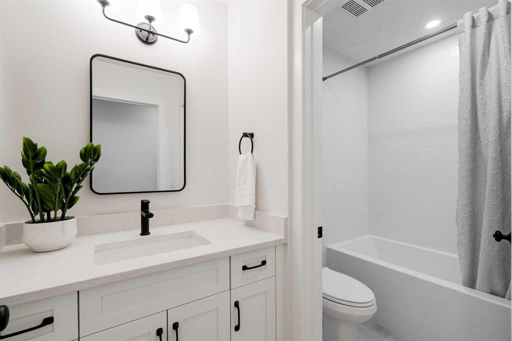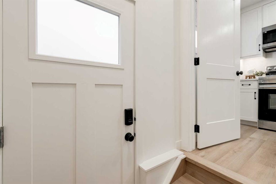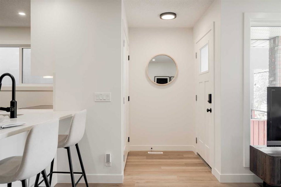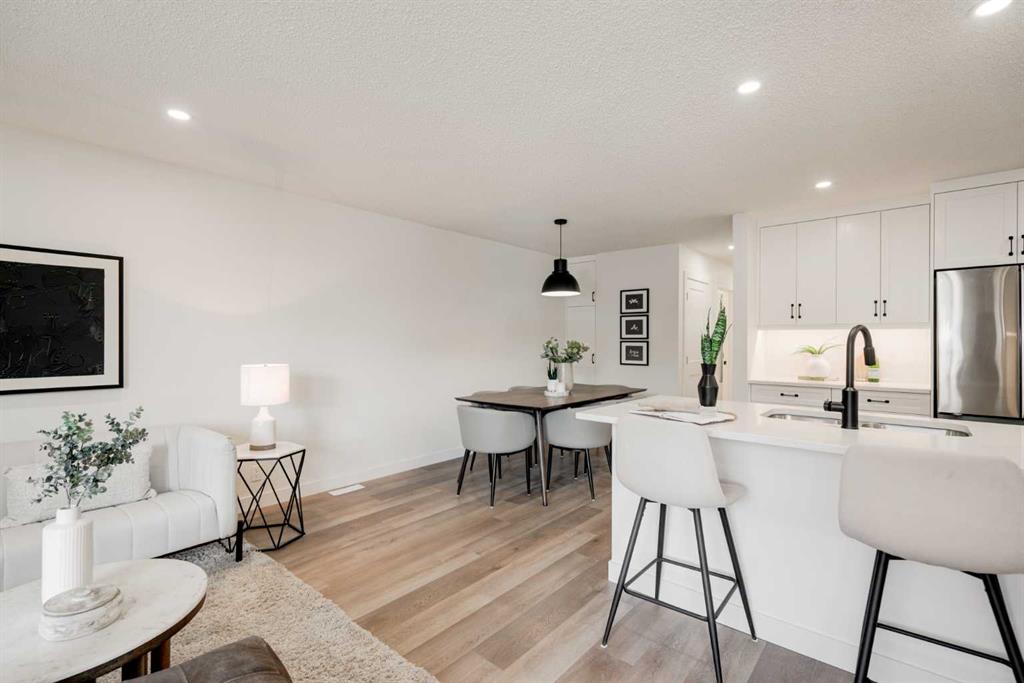 This beautifully renovated property features 3 bedrooms, 2 bathrooms and main floor laundry with over 1,000 square feet of living space on the main level alone, offering bungalow-living in this professionally renovated home! The property is perfectly located with easy access to downtown, the mountains and just a 1 minute walk to nearby amenities and restaurants. The side entrance with direct access to the basement and M-CG zoning mean this property is perfect for a LEGAL BASEMENT SUITE to assist with monthly costs if desired (adding a legal suite for rental purposes would be subject to approval and permitting by the city/municipality). *Suited basement plans available upon request. Renovations include new windows, furnace, hot water tank, new vinyl and tile flooring, new cabinets (kitchen and bathrooms), fresh paint throughout, new appliances, plumbing fixtures, lighting and electrical updates. The timeless white kitchen is complete with quartz countertops and backsplash, pot and pan drawers, under cabinet lighting and a new Samsung appliance package. The kitchen has a peninsula with additional seating and overlooks both the living and dining areas. The expansive living area has two large SW-facing windows that allow natural light to pour through the home all day long. The large dining area has ample space for a dining table for six and a pantry space for added storage. Resilient vinyl flooring flows throughout the entire home (perfect for pets and children) with tile in the bathrooms – meaning no carpet at all! The primary bedroom has space for a king bed and a private ensuite with dual sinks and a tiled walk-in shower. Two more generous-sized bedrooms, a main bathroom, linen closet and stacked laundry complete the main level. The large backyard is partially fenced and includes a patio space and parking for 3 vehicles. This beautiful new home has endless potential and is incredibly well located in the highly desirable community of Montgomery. Book your private viewing today!