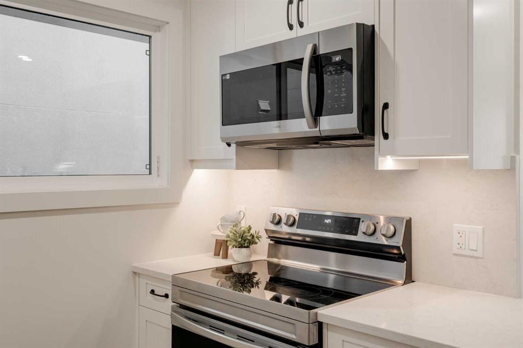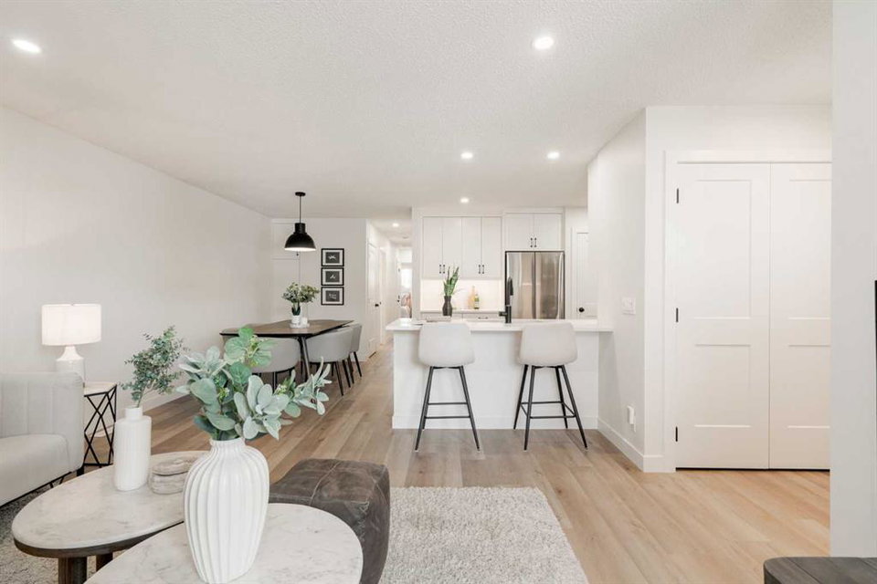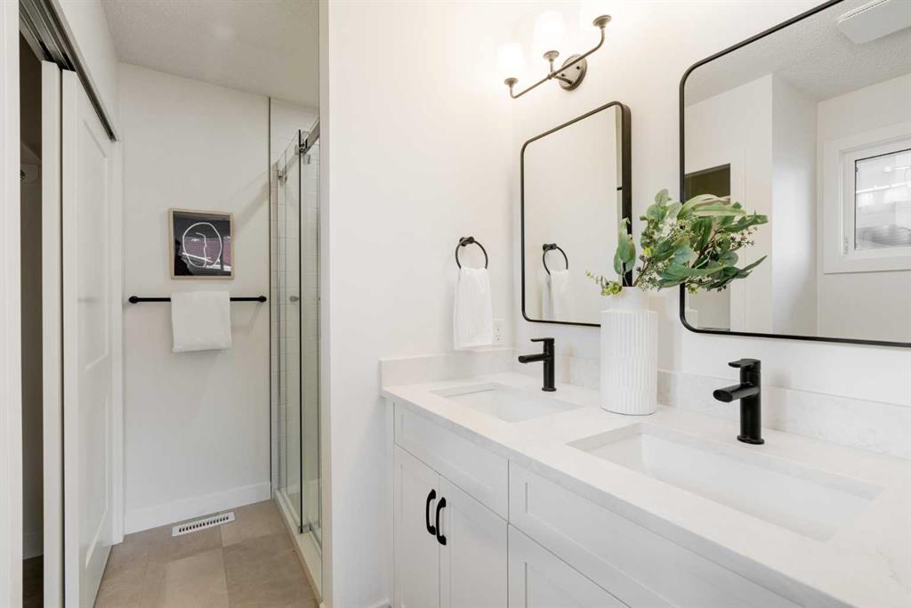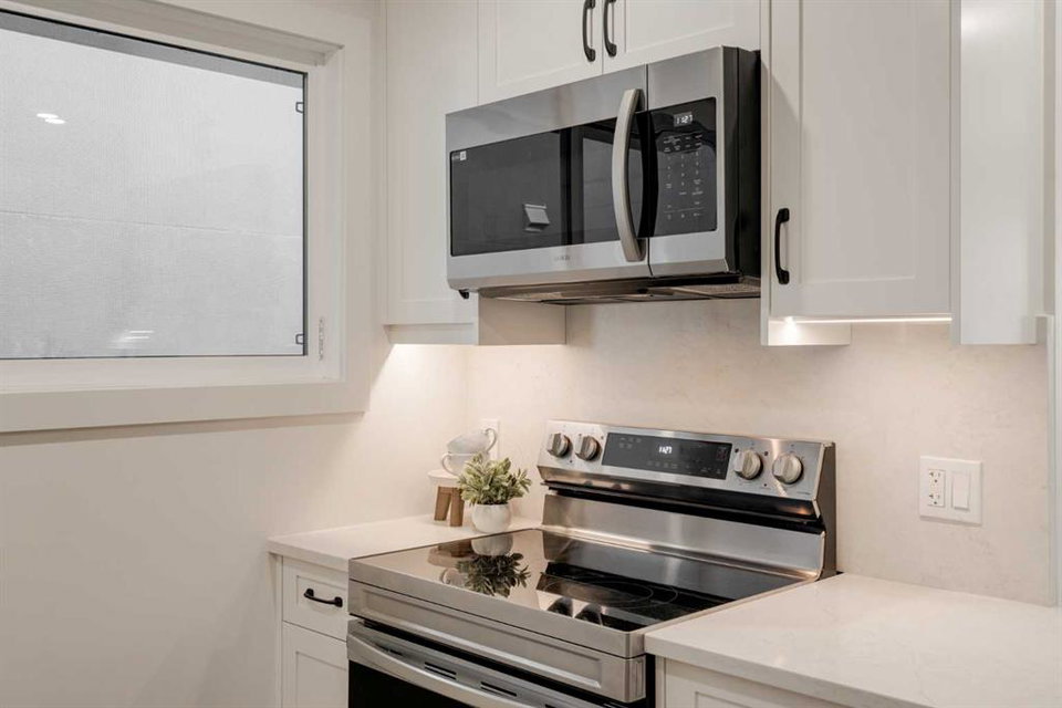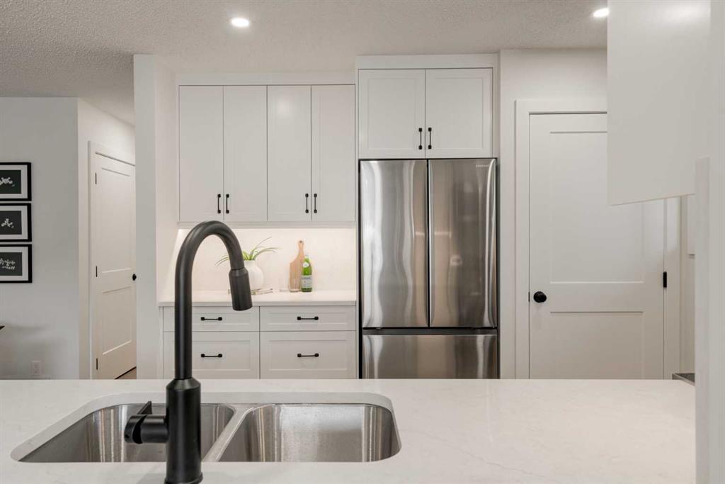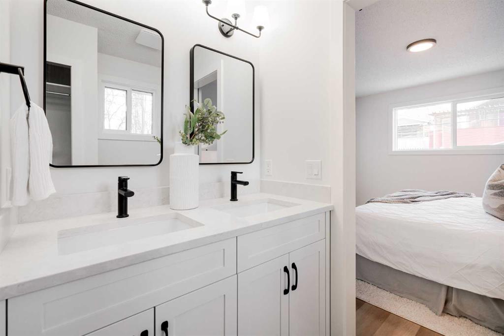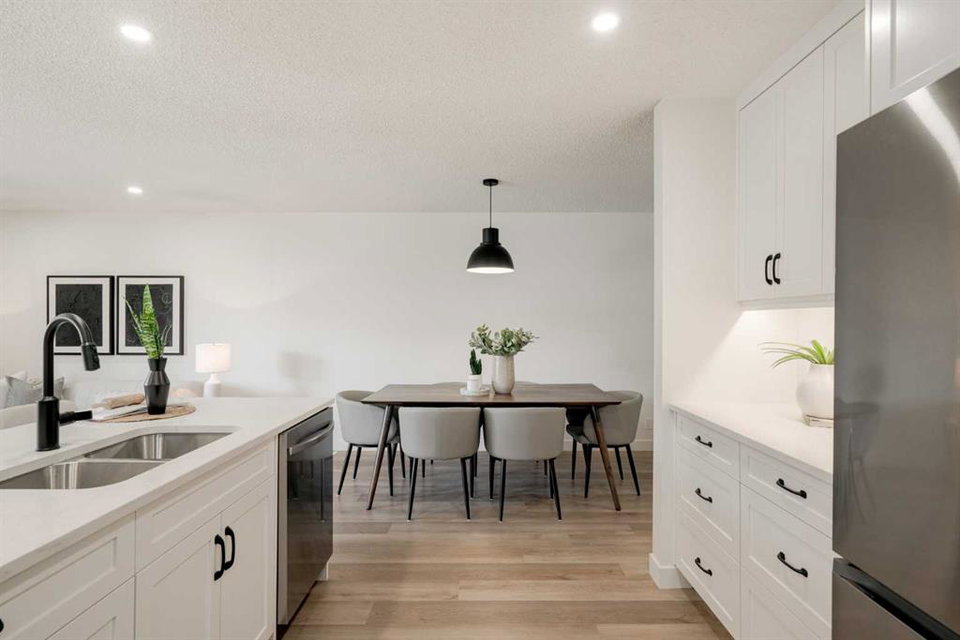 This beautifully renovated property features 3 bedrooms, 2 bathrooms and main floor laundry with over 1,000 square feet of living space on the main level alone, offering bungalow-living in this professionally renovated home! The property is perfectly located with easy access to downtown, the mountains and just a 1 minute walk to nearby amenities and restaurants. The side entrance with direct access to the basement and M-CG zoning mean this property is perfect for a LEGAL BASEMENT SUITE to assist with monthly costs if desired (adding a legal suite for rental purposes would be subject to approval and permitting by the city/municipality). *Suited basement plans available upon request. Renovations include new windows, furnace, hot water tank, new vinyl and tile flooring, new cabinets (kitchen and bathrooms), fresh paint throughout, new appliances, plumbing fixtures, lighting and electrical updates. The timeless white kitchen is complete with quartz countertops and backsplash, pot and pan drawers, under cabinet lighting and a new Samsung appliance package. The kitchen has a peninsula with additional seating and overlooks both the living and dining areas. The expansive living area has two large SW-facing windows that allow natural light to pour through the home all day long. The large dining area has ample space for a dining table for six and a pantry space for added storage. Resilient vinyl flooring flows throughout the entire home (perfect for pets and children) with tile in the bathrooms – meaning no carpet at all! The primary bedroom has space for a king bed and a private ensuite with dual sinks and a tiled walk-in shower. Two more generous-sized bedrooms, a main bathroom, linen closet and stacked laundry complete the main level. The large backyard is partially fenced and includes a patio space and parking for 3 vehicles. This beautiful new home has endless potential and is incredibly well located in the highly desirable community of Montgomery. Book your private viewing today!