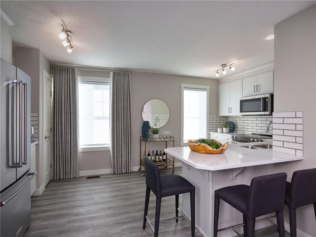 Welcome to the Crimson II built by Brookfield Residential. This impressive split floor-plan boasts 13-ft ceilings in the entry and front living room which delivers that special wow-factor when you walk in the front door. Beautiful spindle-railing separates the dining room from the dropped living room and allows light to flow through from the 8-ft tall front window to carry all throughout the main floor. The kitchen comes equipped with stainless steel appliances, plenty of quartz counter space as well as an eating bar. Sliding glass doors lead to your cozy balcony and allow lots of natural light to fill your main level. On the upper level, you will find your laundry as well as your two large master bedrooms, each with their own ensuite bathroom and walk-in closet. This home is perfectly situated in Symons Gate, with close proximity to Creekside, Nose Hill & Beacon Hill shopping, restaurants & retail! *Please note: Photos are from a show home & are not an exact representation of the property for sale.