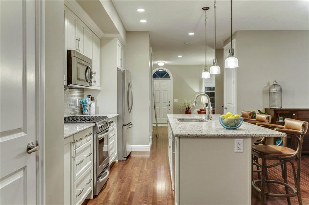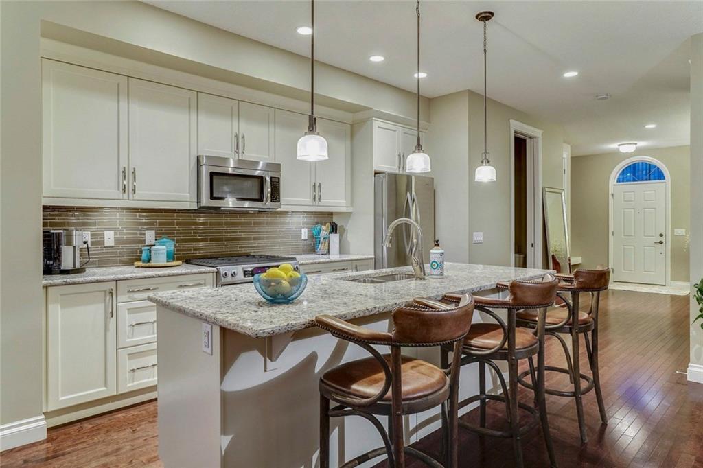 Stunning 3 bedroom end-unit Estate Townhouse located in beautiful Quarry Park. This property includes every upgrade imaginable including hardwood flooring throughout the entire property (no carpet), gas fireplace, full height cabinets, quartz throughout, custom laundry closet, upgraded lighting and premium appliances including gas range and steam washer/dryer. The end-unit features additional windows allowing for natural light to flow through the property all day long. The main level is complete with a timeless white kitchen that is open to the dining and rear living area providing the perfect space for entertaining. Iron railings and hardwood stairs guide to the upper level where you’ll find a master retreat complete with walk-in closet and 5 pc ensuite in addition to two more bedrooms, main bathroom, a built-in desk area and extensive laundry closet. The backyard captures the West sunshine and is complete with a large concrete patio and small green space.