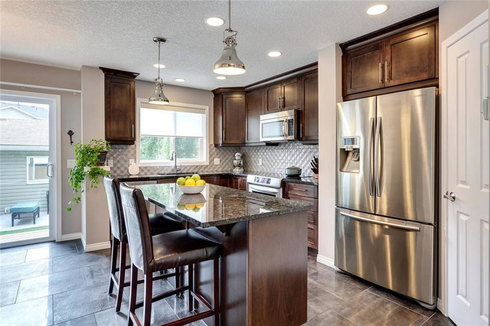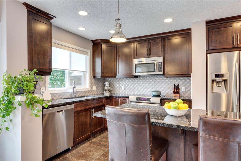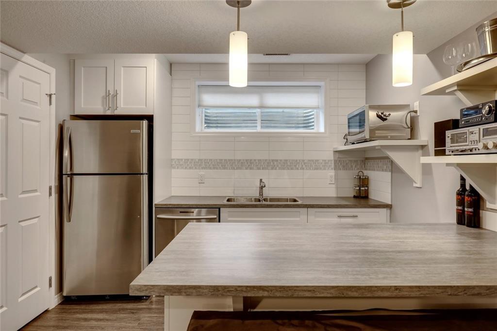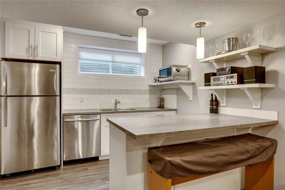 This fully developed home with double detached garage has all the convenience and comfort you want! The main level has resilient tile flooring throughout – perfect for children & pets. The timeless kitchen is complete with ceiling-height cabinets, pot lights, custom pendant lighting, granite countertops and stainless appliances including fridge with waterline. The kitchen overlooks the dining area, backyard, and is open to main living area. Upper level includes a family room that is great for home office or TV area, a second bedroom, main bathroom, laundry, and a master retreat complete with walk-in closet and fully private ensuite including soaker tub and fully tiled shower with bench. An interior entrance and exterior side entrance lead to the professionally developed basement suite (illegal) with wet bar complete with peninsula seating, a private bedroom, full bathroom and private laundry. Keep cool all summer with central A/C and enjoy secured parking in the double detached garage all year.