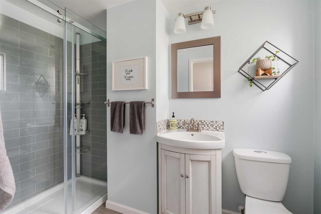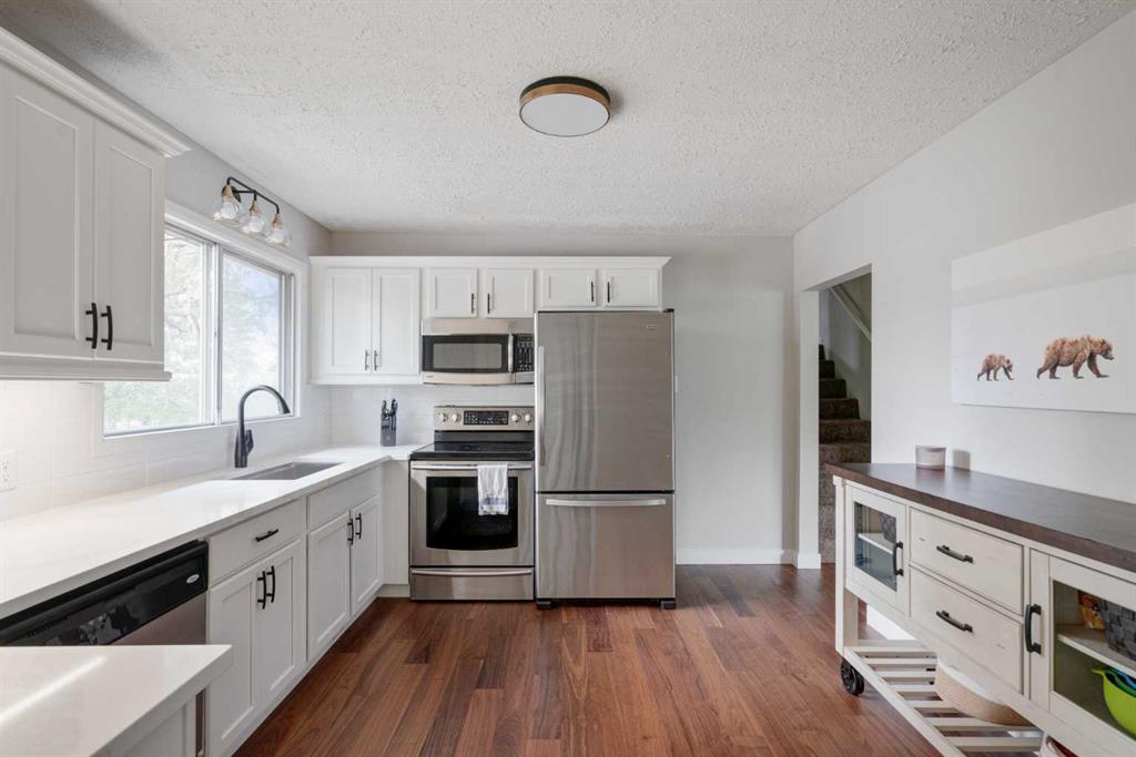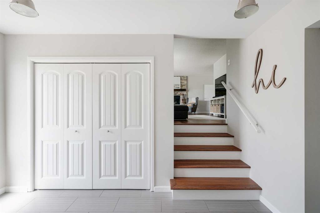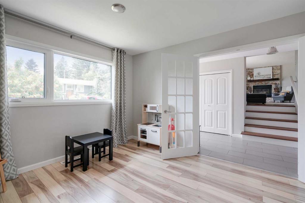 A beautifully updated and fully move-in ready home located in the heart of North Haven! This 4 level split features 4 bedrooms, 2 bathrooms, 3 living areas and over 2,100 square feet of living space! Upon entering there is an expansive entryway that includes double closets and convenient access directly to the backyard. This main level includes a bedroom, full bathroom and a den/flex space with double doors – making it the perfect home office, children’s play space or additional TV area. Up the first half set of stairs is the main living area. A wall of windows allows natural light to pour through this level all day long and the large living room is complete with a central gas fireplace as it also opens up to the dining area. New hardwood floor flows throughout this level into the fully updated kitchen. Complete with timeless white cabinets, a subway style backsplash and a suite of stainless steel appliances, the kitchen has ample storage space and a large window that overlooks the backyard. Up another half set of stairs are 3 bedrooms and a fully updated 5 pc bathroom. The large primary bedroom includes ample space for a king bed and the secondary bedrooms are perfect for children. The lower level is complete with resilient laminate flooring and includes an expansive rec room in addition to a laundry/utility room and endless storage area. The backyard oasis has been professionally landscaped to include a large deck, brand new patio space, tiered garden area, and a brand new fully insulated workshop with covered deck in addition to the single attached garage! Mature trees provide natural shade throughout this beautiful backyard. This home has been updated throughout including most windows and its fully move-in ready. The new workshop is the perfect hobby space and a unique offering that is part of this beautiful move-in ready home.