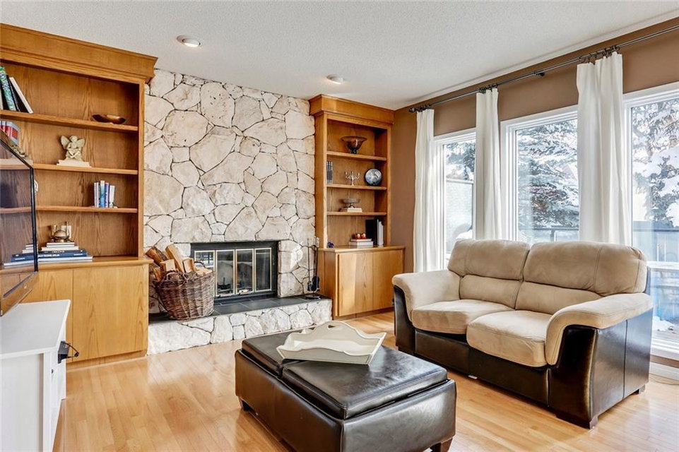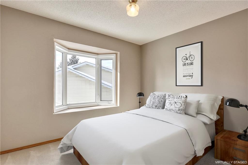 Pride of ownership shines throughout this fully developed home situated on a large PIE LOT with MOUNTAIN VIEWS. Over 2,750 sq. ft. of developed space and the most costly renovations are done! RENOVATIONS INCLUDE: New windows, hot water tank, furnace & roofing in addition to the fully renovated kitchen with IN-FLOOR HEATING and new bathrooms. A completely new exterior including INSULATED SIDING keeps the home energy efficient with beautiful curb appeal. The main level features two living areas, a formal dining area and large kitchen in addition to a large breakfast nook that is surrounded by windows. The upper level is complete with a large master bedroom with a full ensuite including a walk-in tiled shower in addition to two more bedrooms and a main bathroom. The developed basement includes a large living area in addition to two rooms that make the perfect home office and children’s play area. Walk to Fish Creek Park or enjoy your own yard with underground irrigation, a new shed & extensive landscaping.