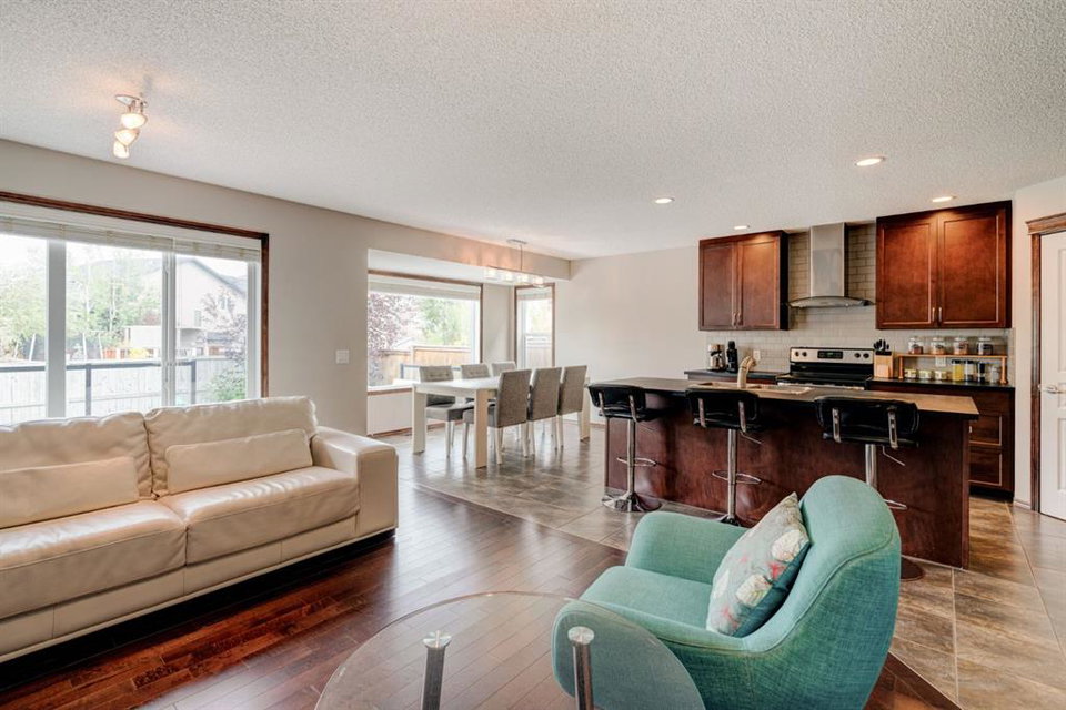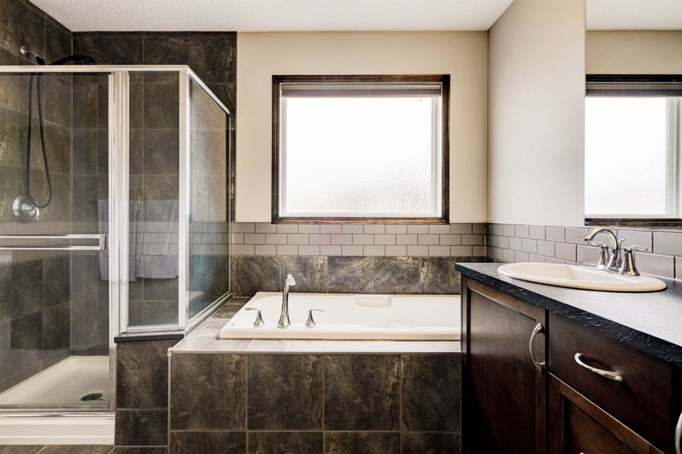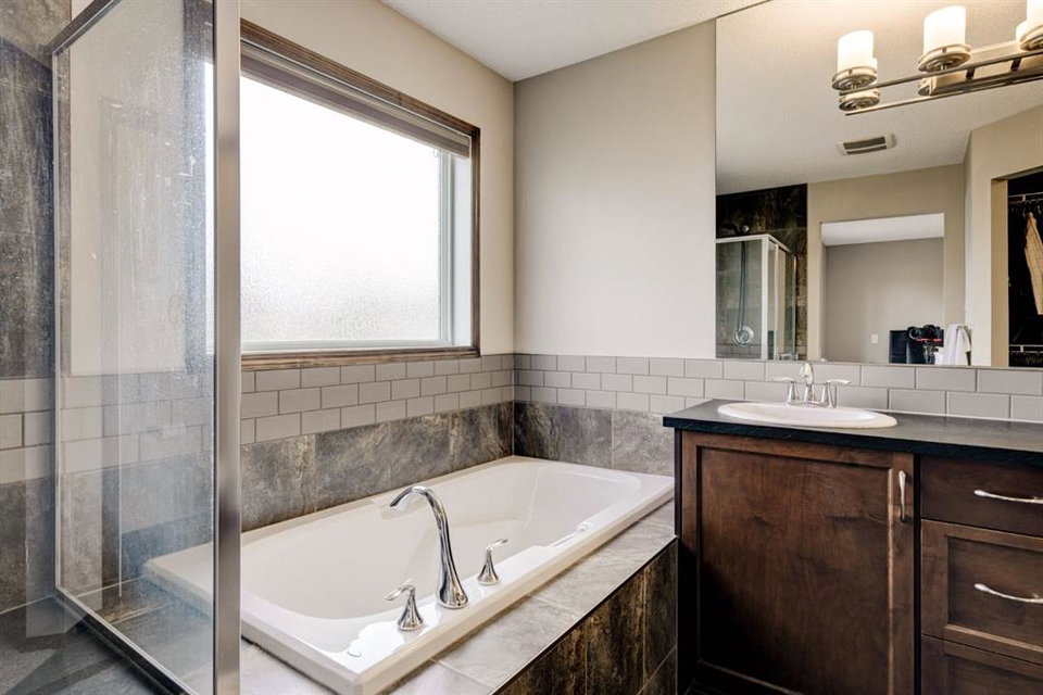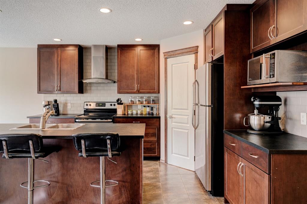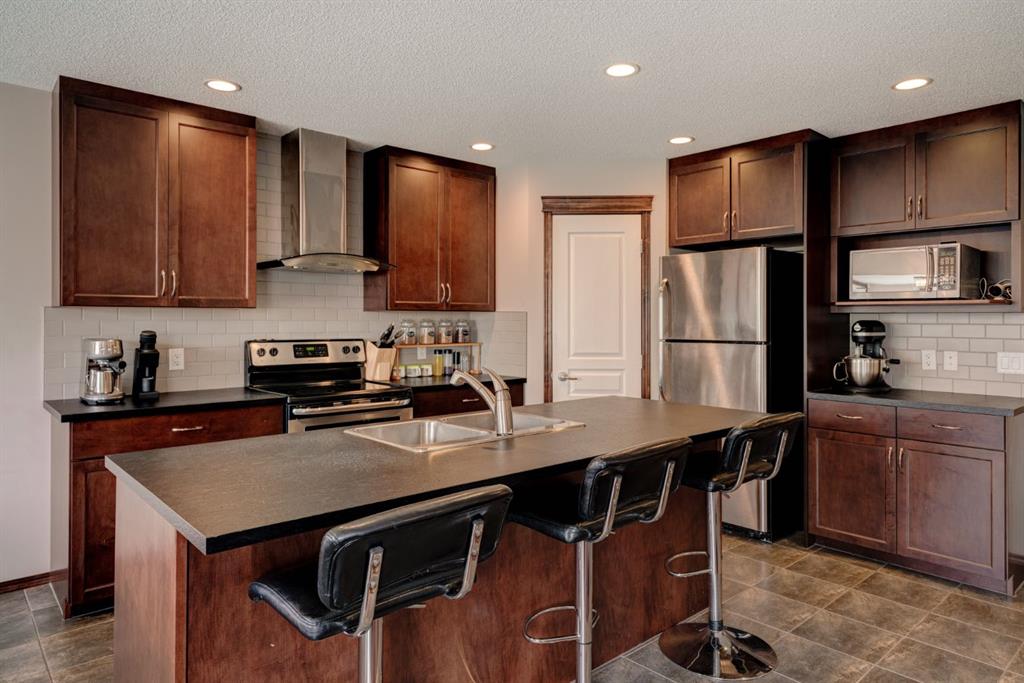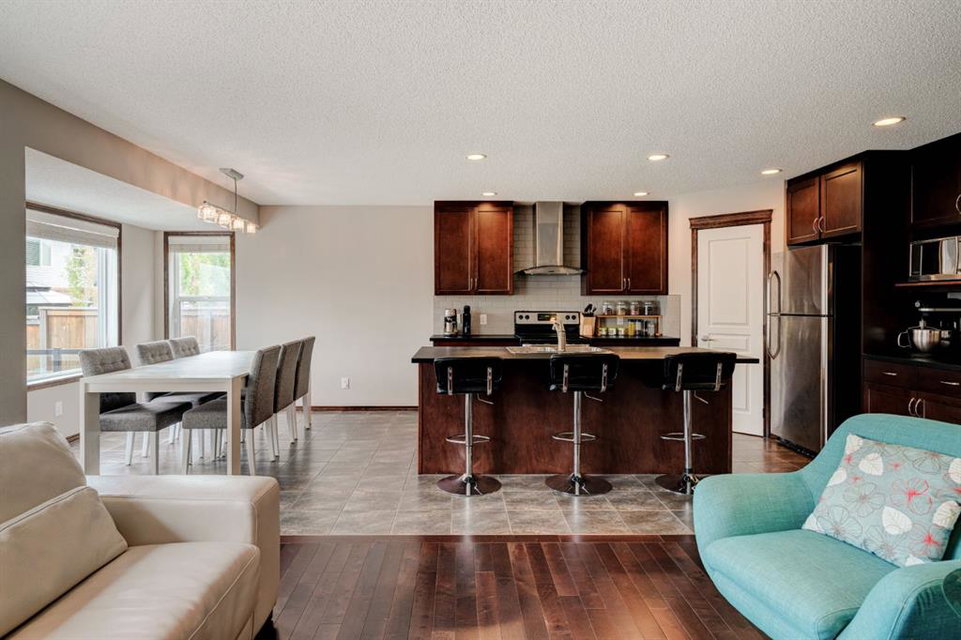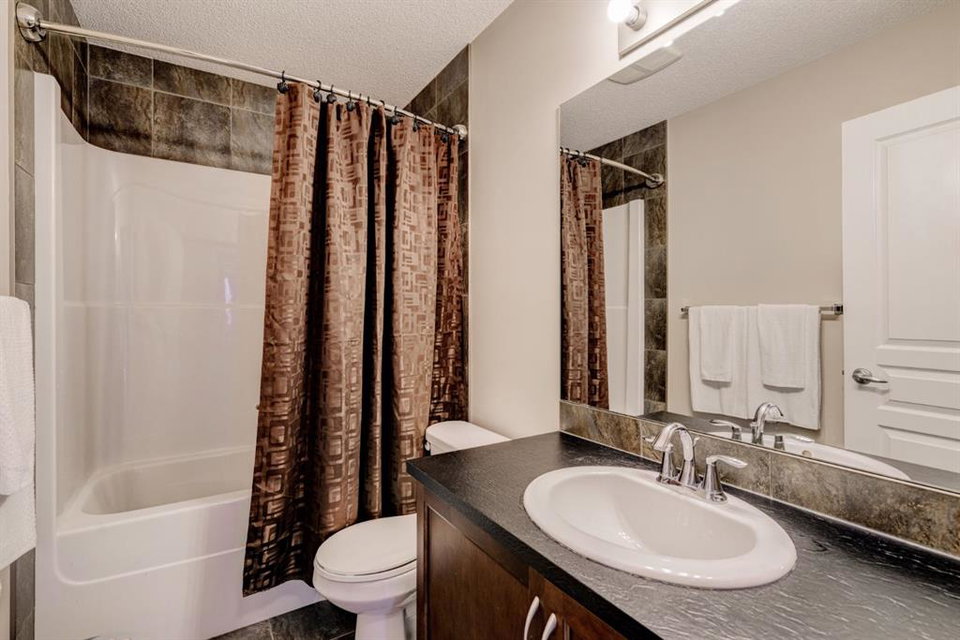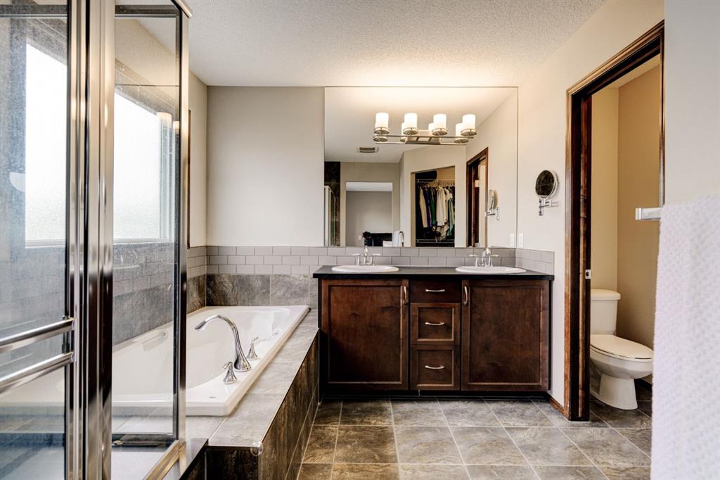 Welcome to this exquisite 2-storey home nestled in the heart of New Brighton. This well-maintained home features 4 bedrooms, 3.5 bathrooms, and over 2,500 square feet of developed living space over three levels. The kitchen features full-height cabinetry, stainless steel appliances, a walk-through pantry, and a spacious center island with a double sink and a breakfast bar for additional seating. The kitchen overlooks both the dining and living area – making this the perfect space to entertain friends and family and the living area is complete with a central gas fireplace – perfect for winter nights. The main level is complete with a 2-piece bathroom, a mud room, and beautiful hardwood and tile flooring throughout. The upper level features 3 bedrooms, 2 full bathrooms, a separate laundry room, and a large bonus room. The spacious primary bedroom offers a walk-in closet and a stunning 5-piece ensuite bathroom with a double vanity, soaker tub, standing shower, and a separate water closet. The lower level is fully finished and features a large rec. room with a wet bar, as well as an additional bedroom and a 3-piece bathroom, and an additional storage area with built-in cabinets. The spacious backyard offers a large two-tier deck, stone patio, and plenty of greenspace. Additional features of this home include central air conditioning to keep you cool during the summer months, a double attached garage to keep your vehicles secure and out of the snow in the winter, and maintenance free landscaping with artificial turf in the backyard and no grass in the front yard. New Brighton features countless amenities including parks, playground, walking paths, and a community center with a water park, and offers quick access to Deerfoot for daily commuting. Don’t miss out on this incredible opportunity in New Brighton!