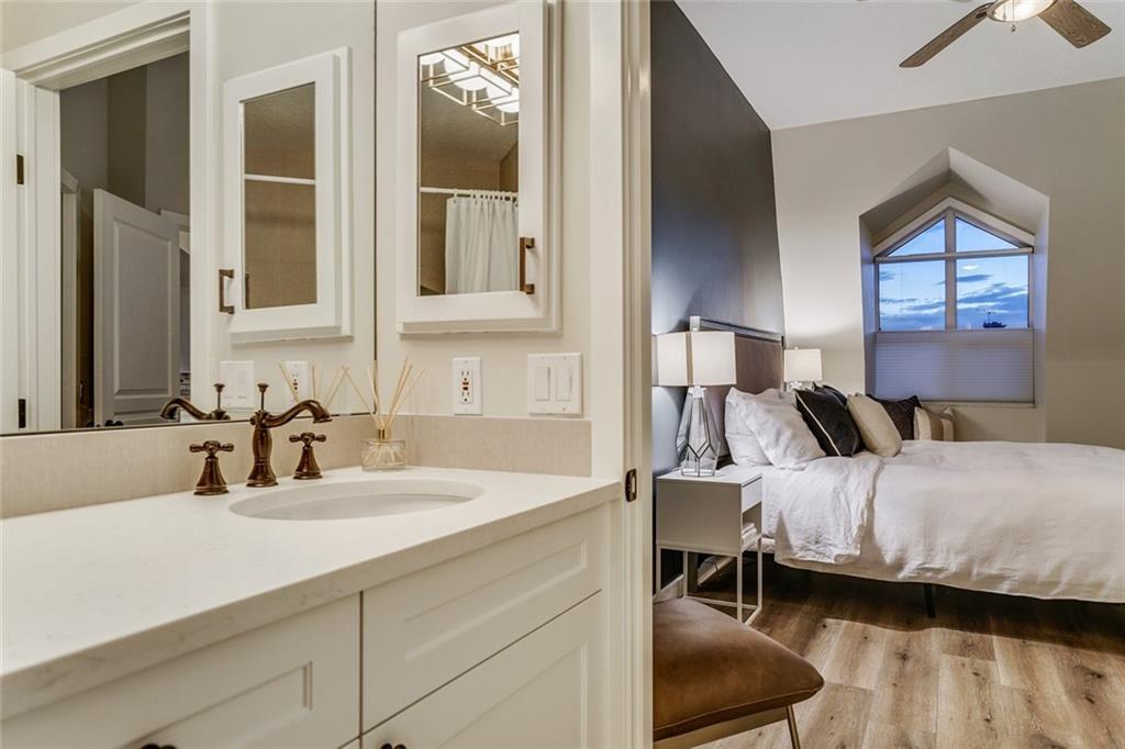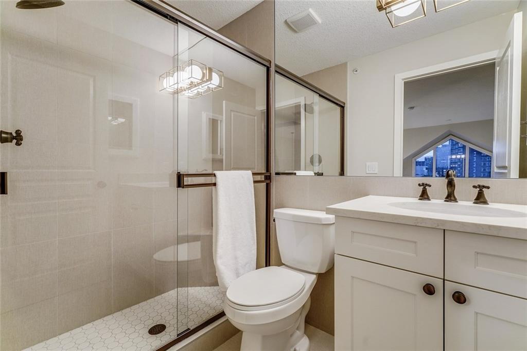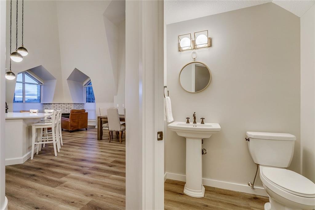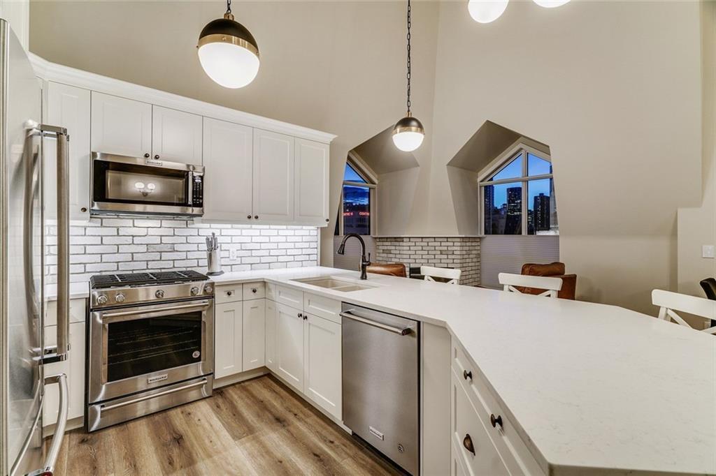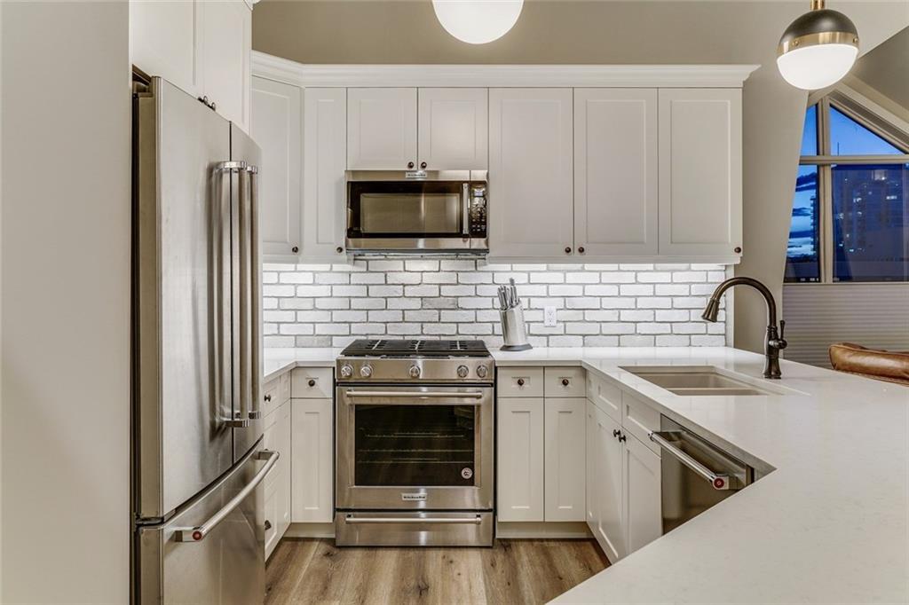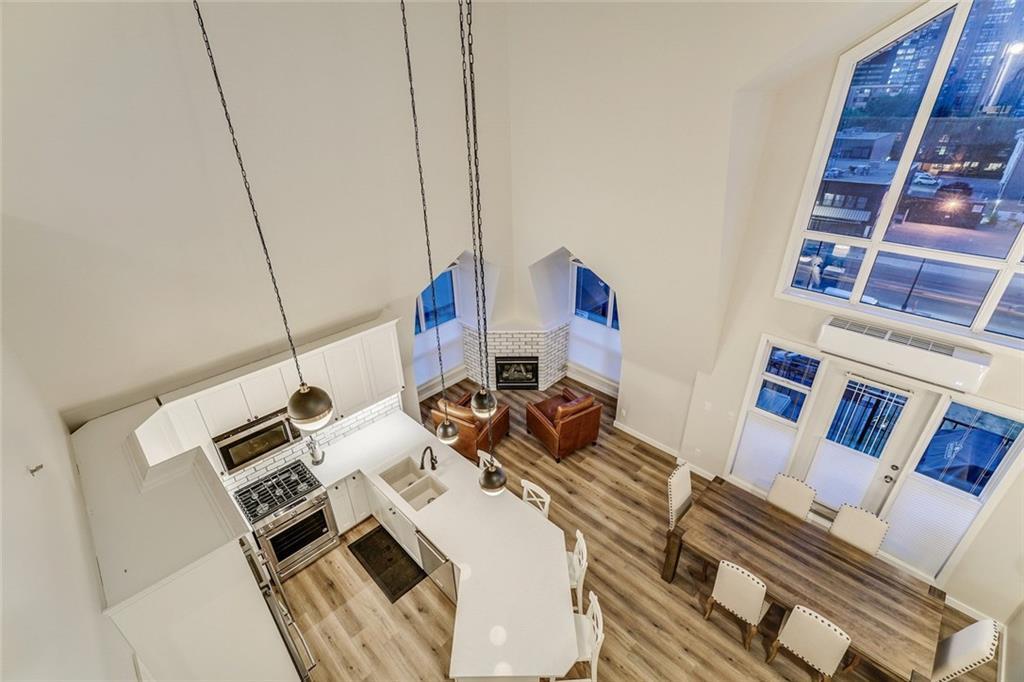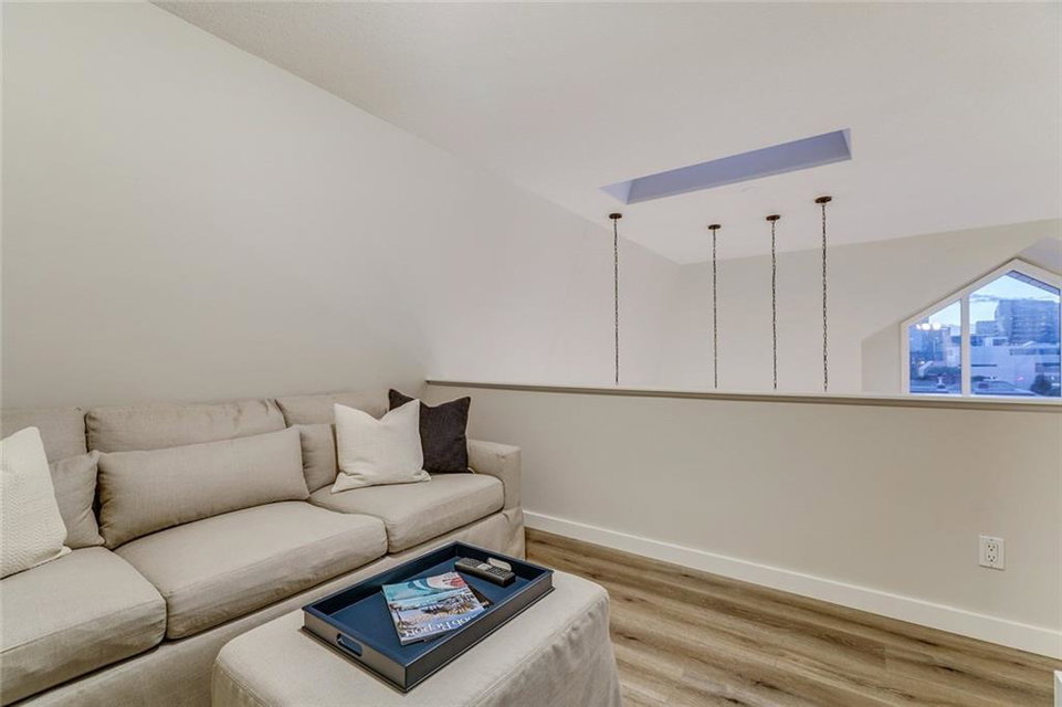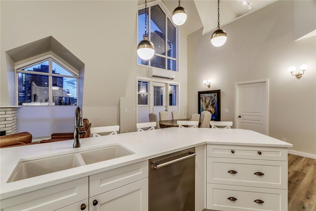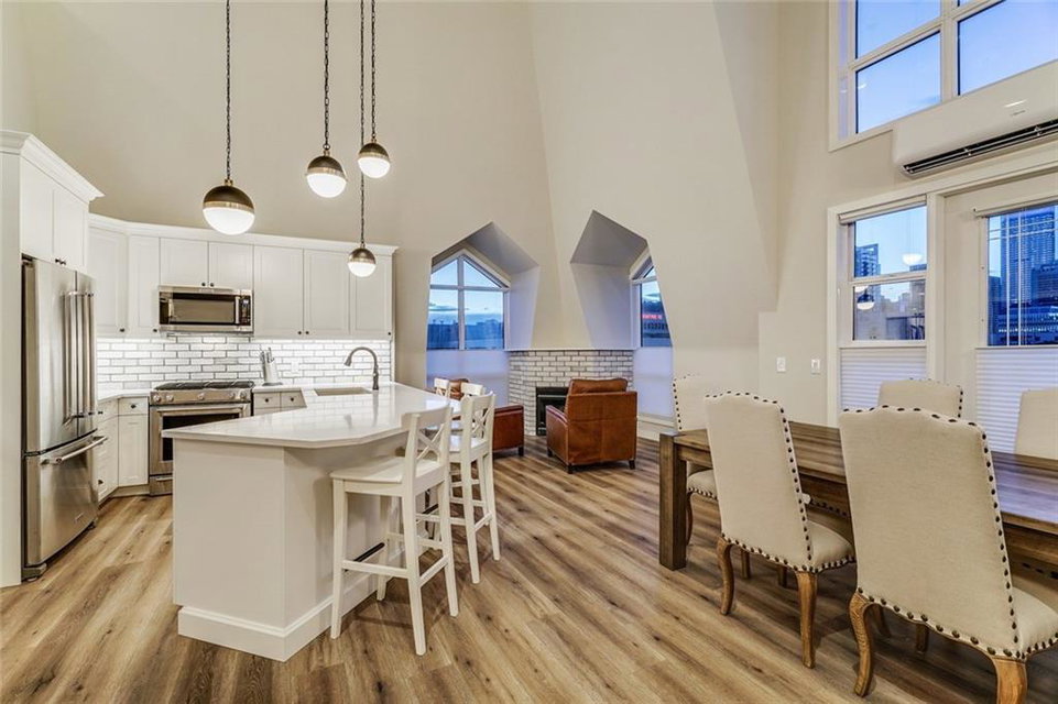 Stunning completely renovated PENTHOUSE condo in Mission. Located in the best location on the NW corner of the building, this condo has unobstructed downtown views and is fully renovated. With 2 bedrooms, 2.5 bathrooms, 2 loft living areas in addition to the main floor and 2 TITLED parking stalls! Laminate flooring flows throughout the property that has 20′ ceilings, custom lighting, new kitchen, new appliances, CENTRAL A/C, automatic window coverings and oil rubbed bronze fixtures. Designed for entertaining, the kitchen is open to the living and dining areas and is complete with timeless white cabinetry, real brick backsplash, and resilient quartz countertops. The large master bedroom is complete with a walk-in closet, beautiful ensuite with linen tile and counter-height cabinets. Finding a penthouse with this much space, architectural appeal, 2 parking stalls and within walking distance to downtown and 17th Avenue that is completely updated is very rare. Aggressively priced to sell.
