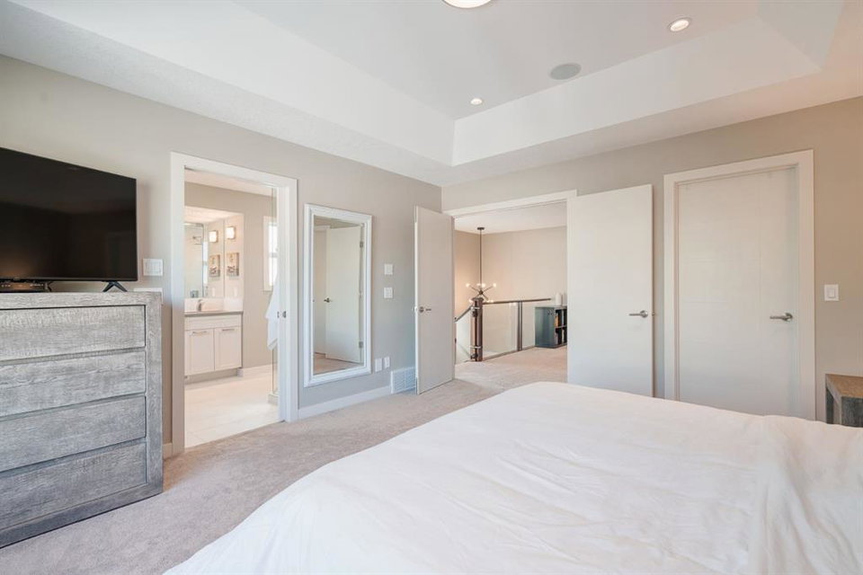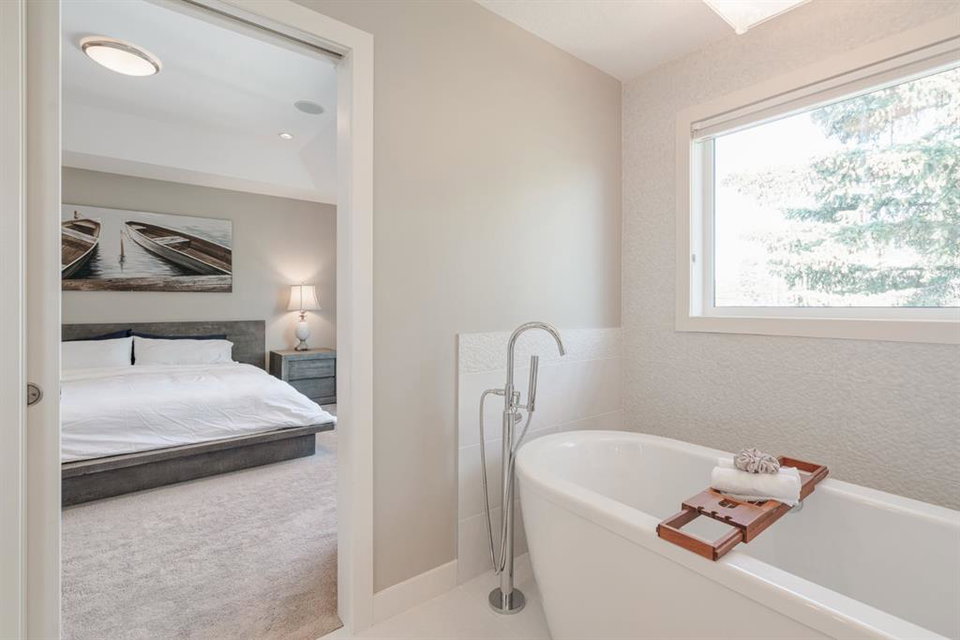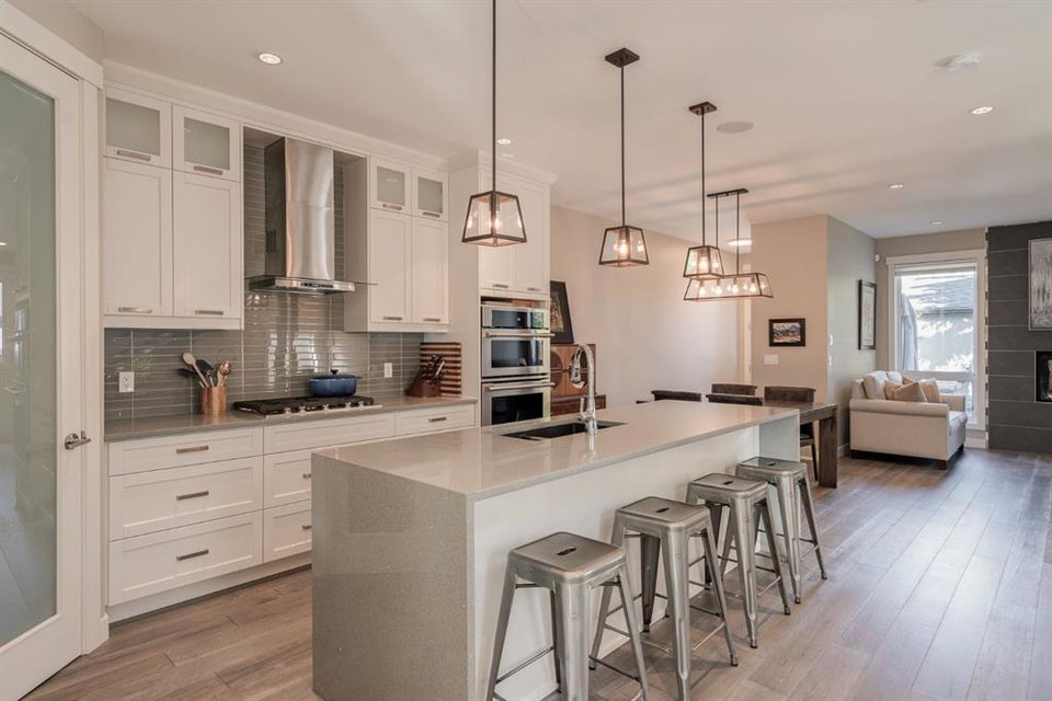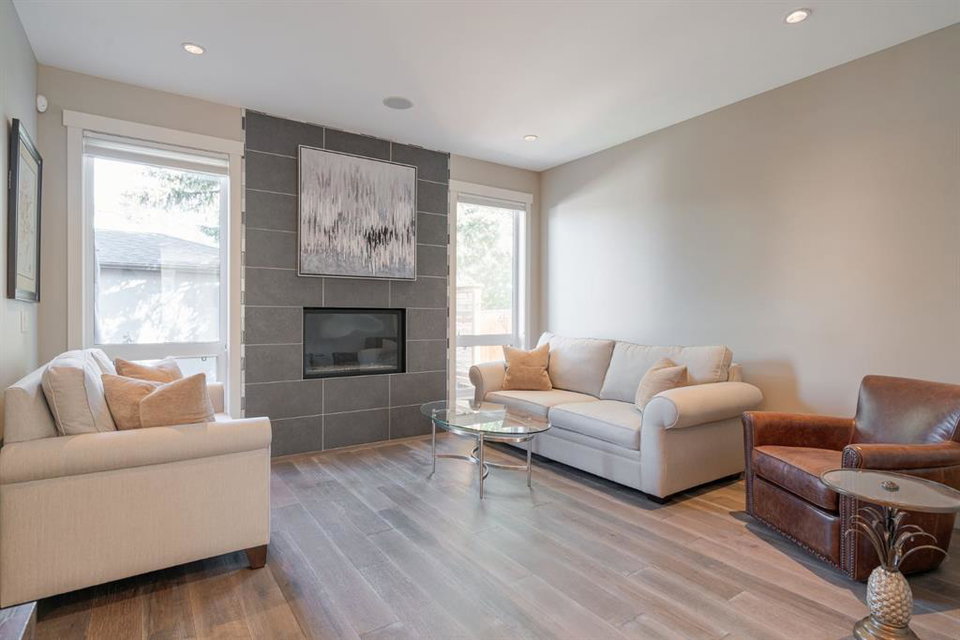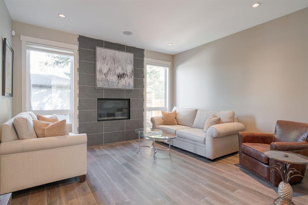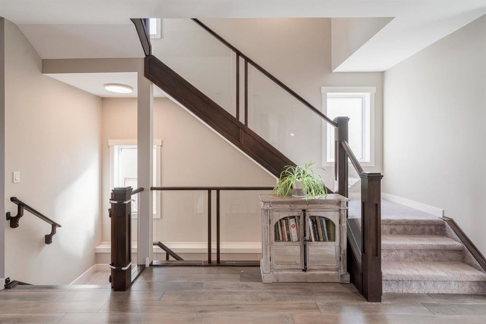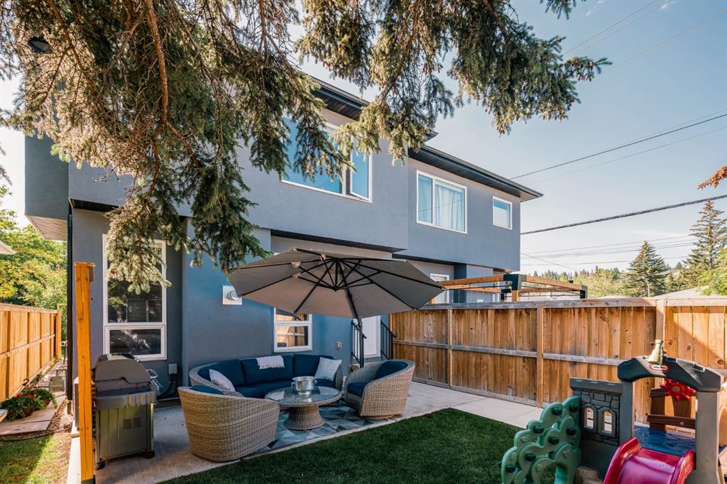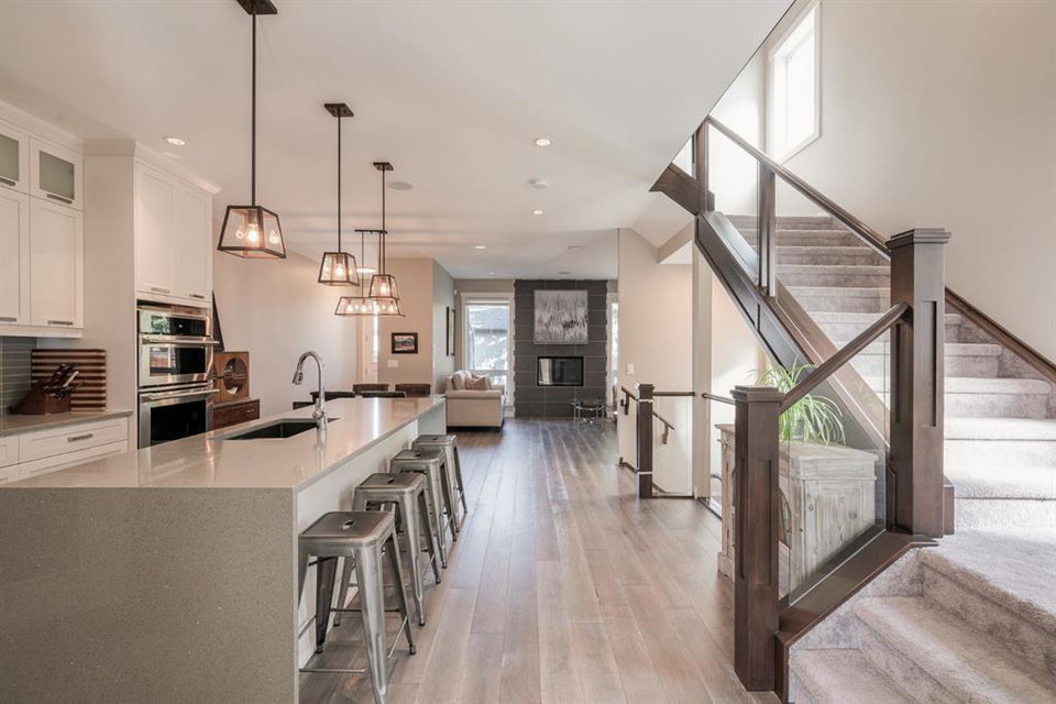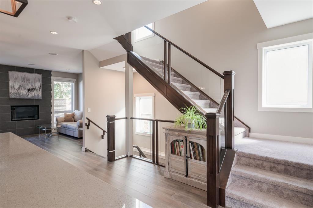 This immaculate home features 4 bedrooms, 3.5 bathrooms, 2 living areas, a home office space and over 2,600 square feet of living space over 3 levels! Located in desirable Parkdale with quick access to the Bow River, pathways, downtown and countless amenities – this property is perfectly located! The kitchen is central to the main living area and is complete with timeless white cabinets to the ceiling, a large pantry, waterfall quartz island and a suite of upgraded appliances including a gas cooktop, chimney hood fan and built-in microwave and oven. The kitchen overlooks both the living and dining areas – making the perfect space for entertaining. The front of the home has a large flex space that is perfect for a home office, additional living space or formal dining area. Completing the main level is a 2 pc powder room and a rear mudroom. Glass railing leads to the second level of the home with stairwell windows providing natural light into the main level all day. The primary suite is complete with an expansive walk-in closet and 5 pc ensuite including dual sinks, a soaker tub and new tiled shower with bench and 10mm glass. Two more bedrooms, a full bathroom and proper laundry room complete the second level. The glass railing flows to the basement that is complete with 9′ ceiling, built-in cabinetry for the entertainment area, a full wet bar, fourth bedroom and another full bathroom in addition to extra storage. The backyard has been professionally landscaped with a concrete patio space, grass and privacy wall. The double detached garage is fully insulated and finished and equipped with 220V power and more built-in storage. Central A/C will keep you cool all summer long and you can capture west sunshine in the backyard on summer evenings. This beautiful and well-cared for home is centrally located and the perfect size for a growing family.
