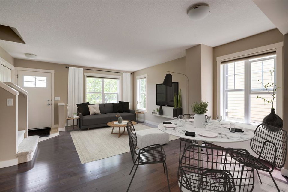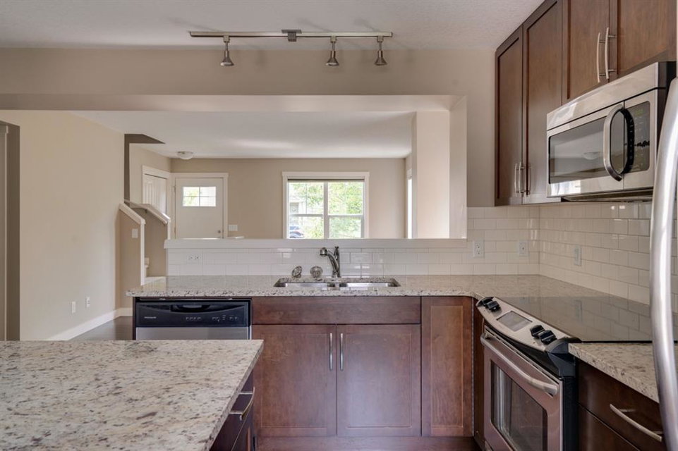 This beautiful end-unit townhome is located in the desirable community of McKenzie Towne and is perfect for a young couple, small family, or professional looking for the best value in the area. Situated on McKenzie Towne Drive – just blocks from all the amenities of High Street with convenient street parking for guests out front. The well-maintained home features a bright and open main level with the kitchen overlooking the dining and living rooms making it perfect for entertaining. Hardwood flooring flows throughout the main level while large south and west-facing windows allow ample natural light into the home all day. The thoughtfully designed kitchen includes timeless full height wood cabinetry, subway tile backsplash, a suite of stainless-steel appliances and granite countertops. Completing the main level is a 2-piece bathroom and a nook/flex space perfect for a home office or study space. The upper-level features two master bedrooms, each complete with their own private en suites and walk-in-closets making them perfect for smaller families or investors. Finishing the upper level is a large laundry room with additional storage providing further convenience for daily living. Completing the home is an expansive storage area which could be converted to a home gym and a private double car garage providing extra storage while keeping your vehicles and valuables safe and clean year-round. Don’t wait this maintenance free property won’t last!