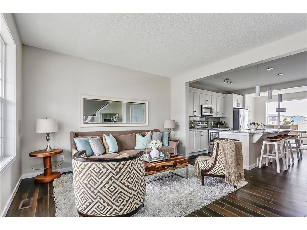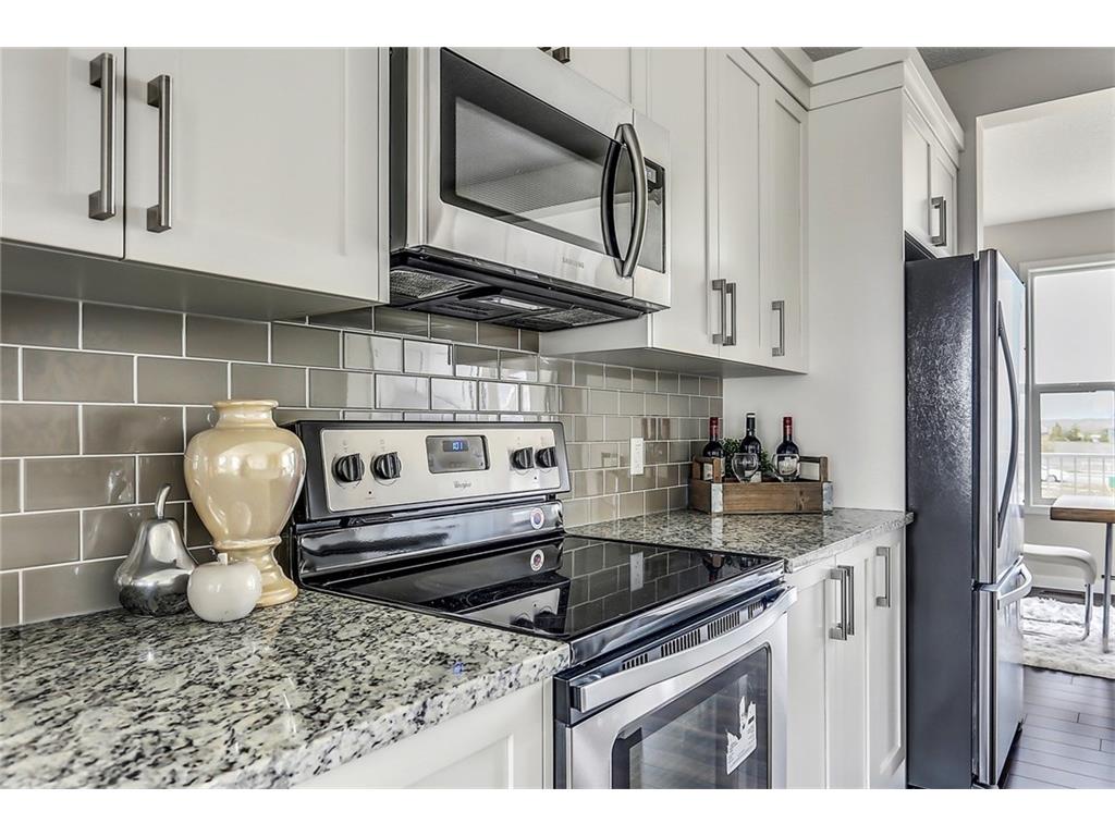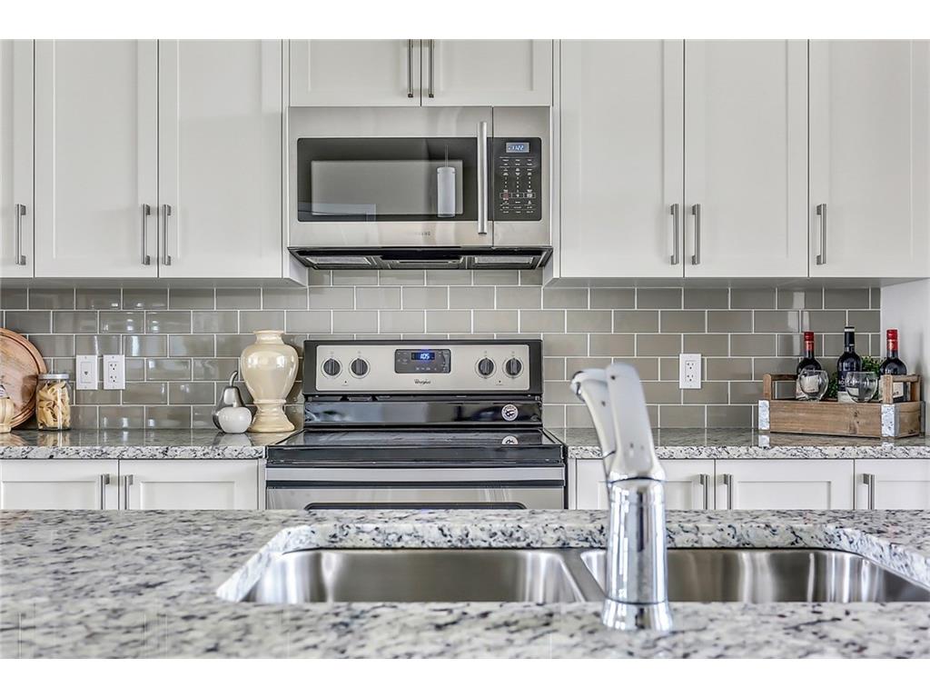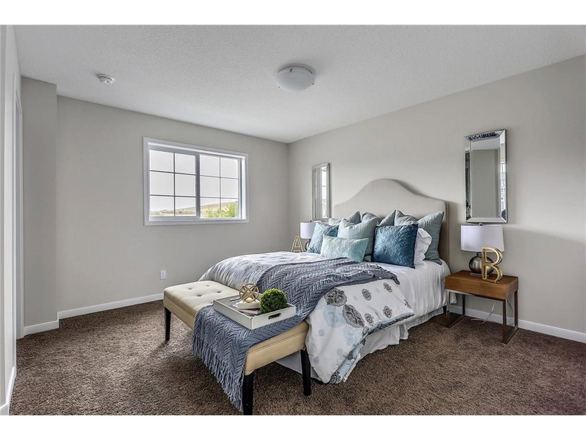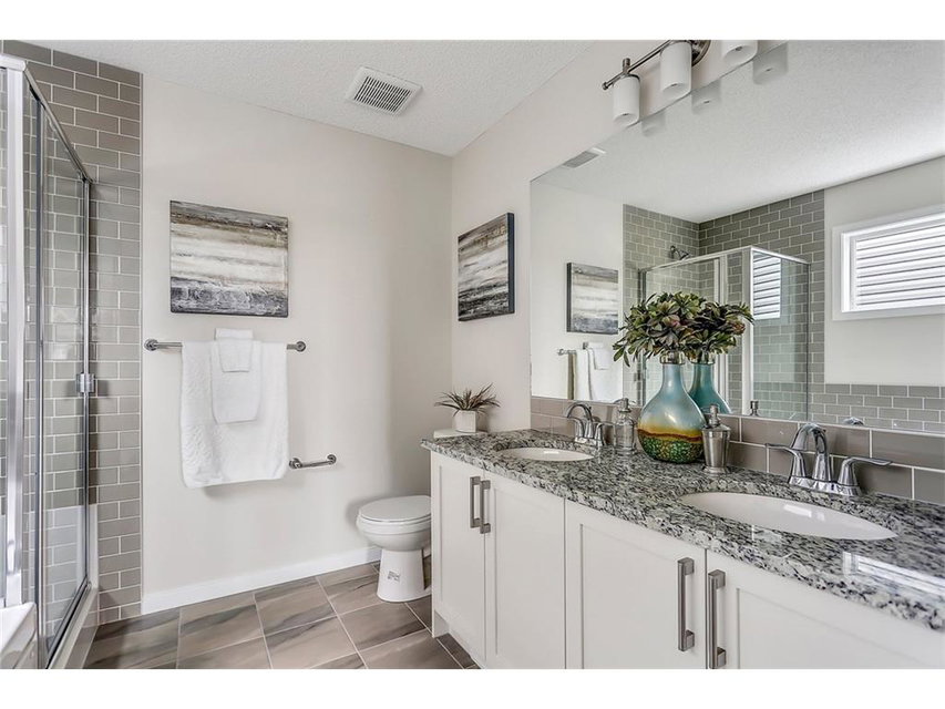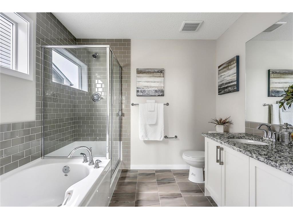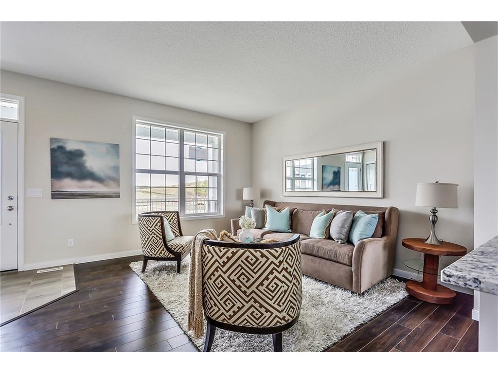 with white cabinets and granite countertops. The upper level includes a master retreat, two additional great-sized bedrooms and upper floor laundry! The large master bedroom can accommodate a bedroom suite of virtually any size and includes a full 5 piece private en suite in addition to its walk-in closet. Many upgrades throughout the home include: laminate and tile flooring, granite countertops, stainless steel appliances, front-load washer and dryer, and a rear deck. This brand new home includes a full Alberta New Home Warranty in addition to it’s builder warranty. Legal fees are included in the purchase. Don’t wait – buy a brand new single family home for under $400,000 today!