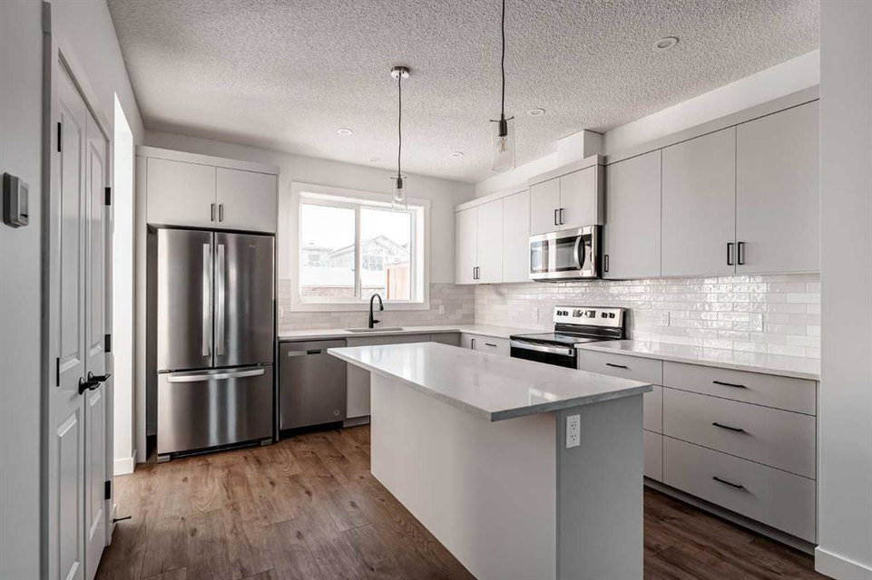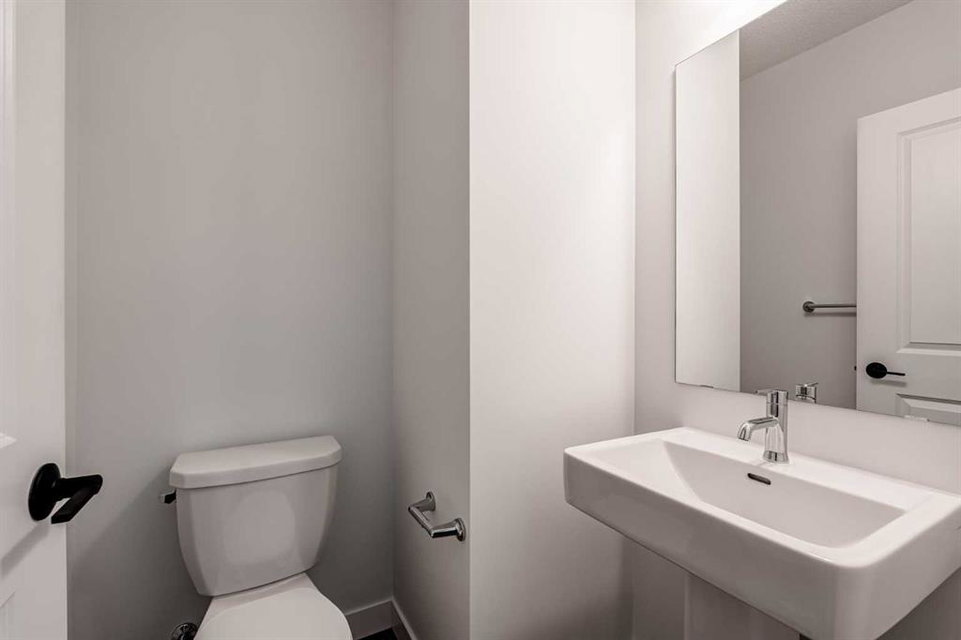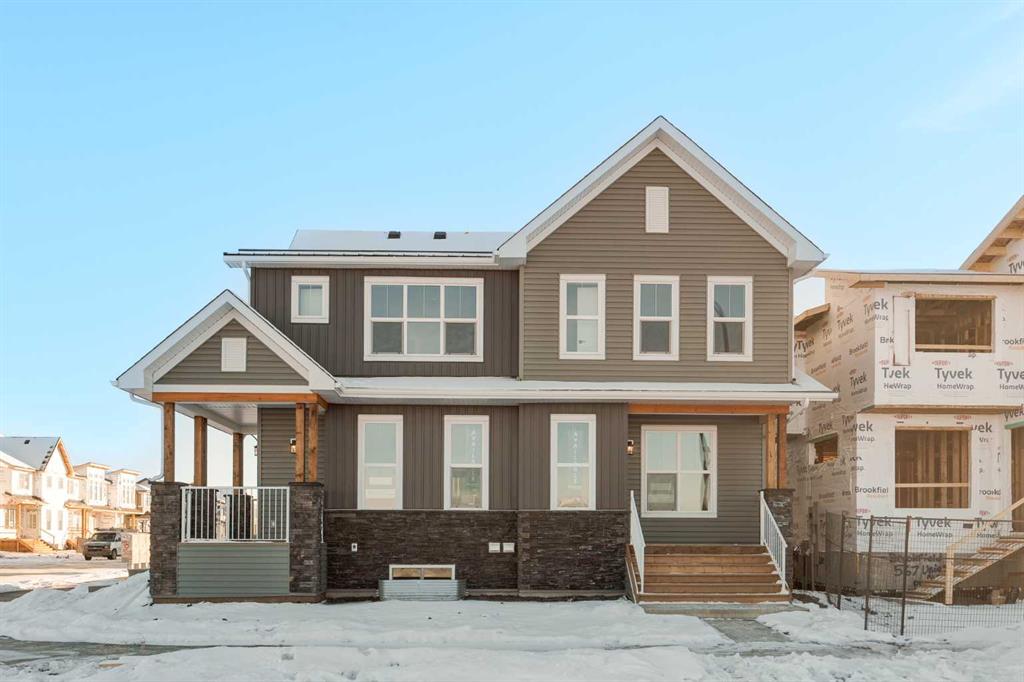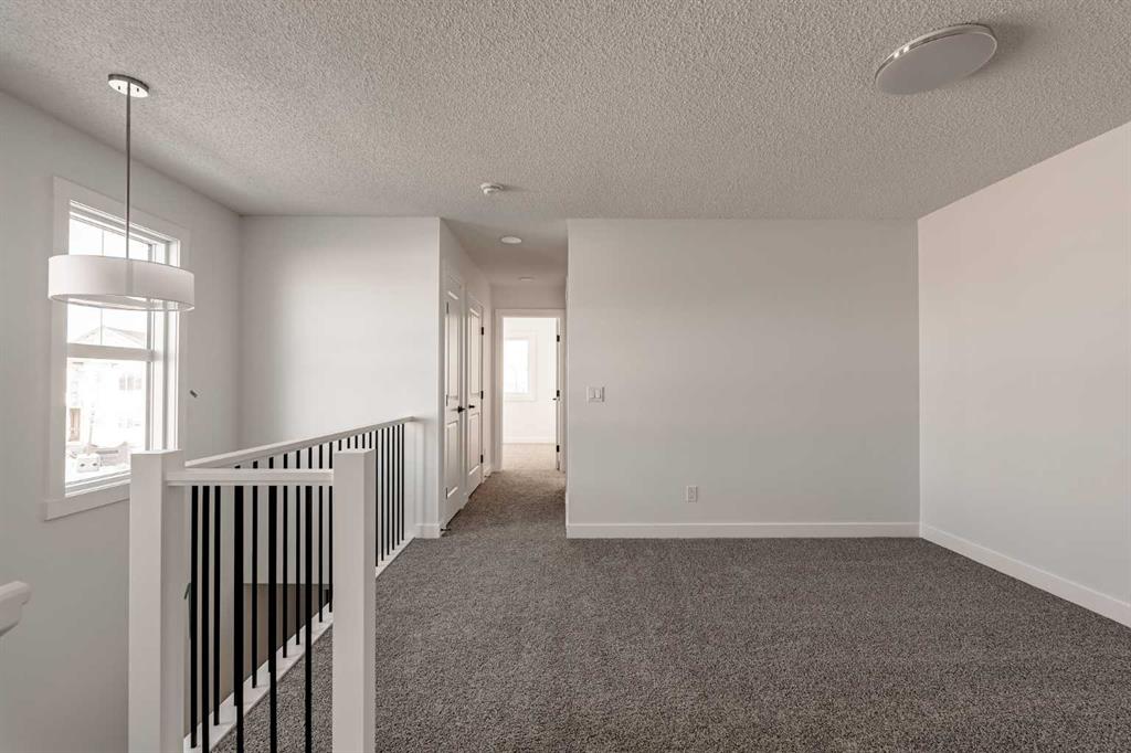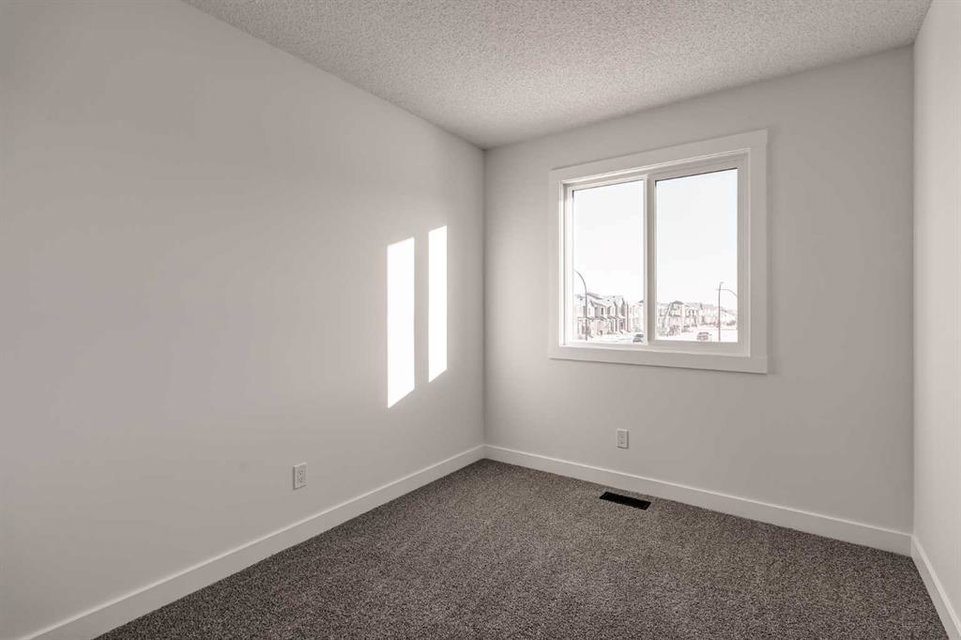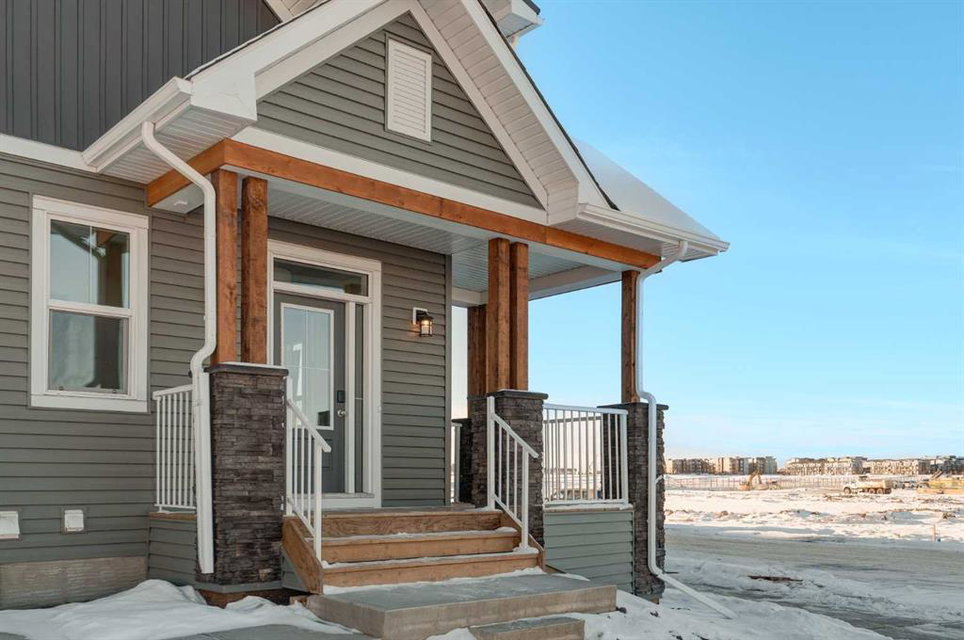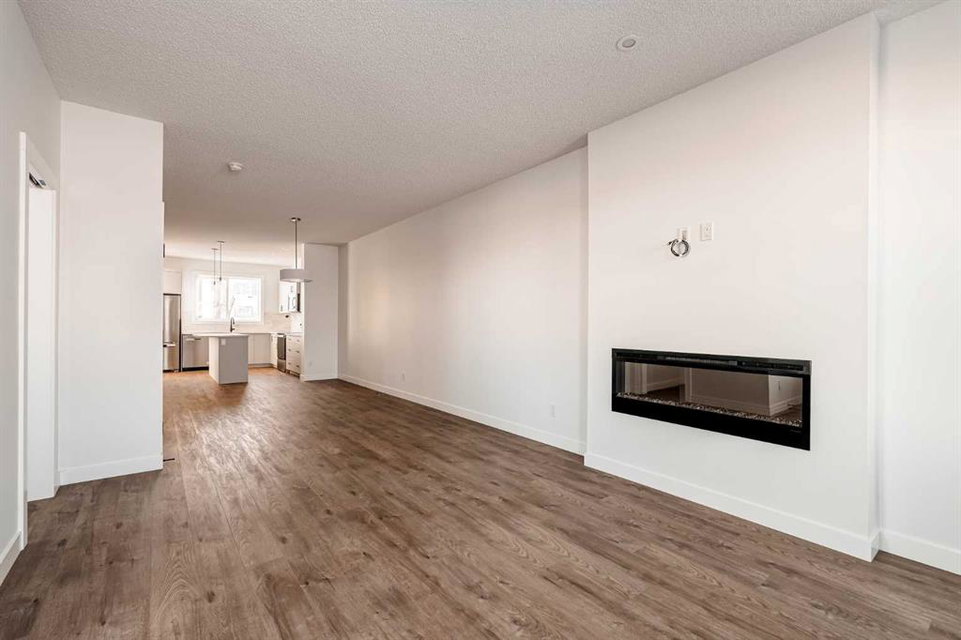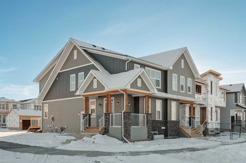 The brand new ‘Alder’ by Brookfield Residential offers functionality and affordability with its fully legal basement suite providing an additional revenue source! Situated on a large corner lot, this beautiful new home features 2 living areas, 3 bedrooms, 2.5 bathrooms and a flex space perfect for a home office + a fully legal basement suite with its own private side entrance. Featuring nearly 1,700 square feet of living space above grade, this home is perfect for first time buyers, investors or those looking to downsize. The open concept main level is the ideal space for entertaining with a kitchen that is open to both living and dining areas. The front of the home features an expansive living area with central electric fireplace and it opens to the central dining area and kitchen at the back of the home. The timeless kitchen features light cabinetry with subway tile backsplash, stainless steel appliances, and a large pantry for additional storage. The kitchen overlooks the south-facing backyard, providing added natural light inside and the perfect outdoor living space. The main level is complete with a ‘flex’ space (perfect for a home office area), a 2 pc bathroom and a mud room. The second level has a central bonus space that separates the primary suite from the secondary bedrooms. The expansive 12’x15′ primary suite is complete with a walk-in closet and private 4 pc ensuite with dual sinks and a walk-in shower. Two more bedrooms and a laundry closet complete the second level. The fully separate legal basement suite is accessed on the side of the property and has a large living area, dining space, full kitchen, bedroom, bathroom and laundry closet in addition to a large utility room with additional storage. Lastly, this brand new home comes with builder warranty + Alberta New Home Warranty, meaning that you can purchase this home with peace of mind. This large corner lot isn’t an everyday offering, so don’t wait!
