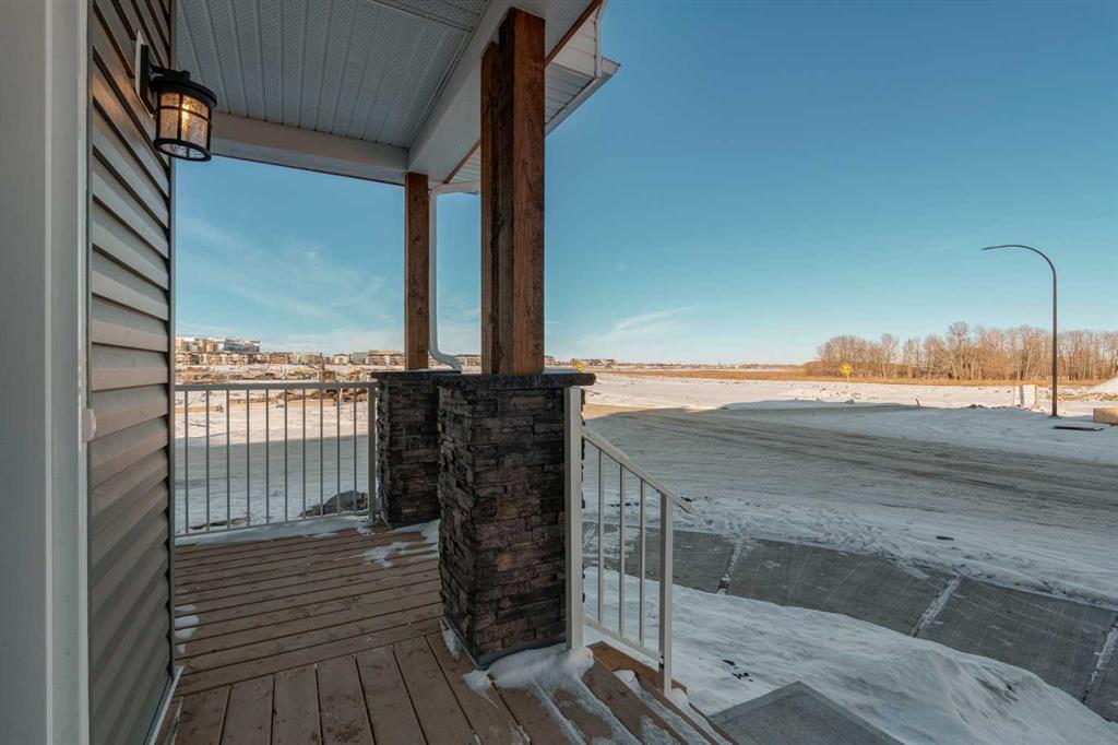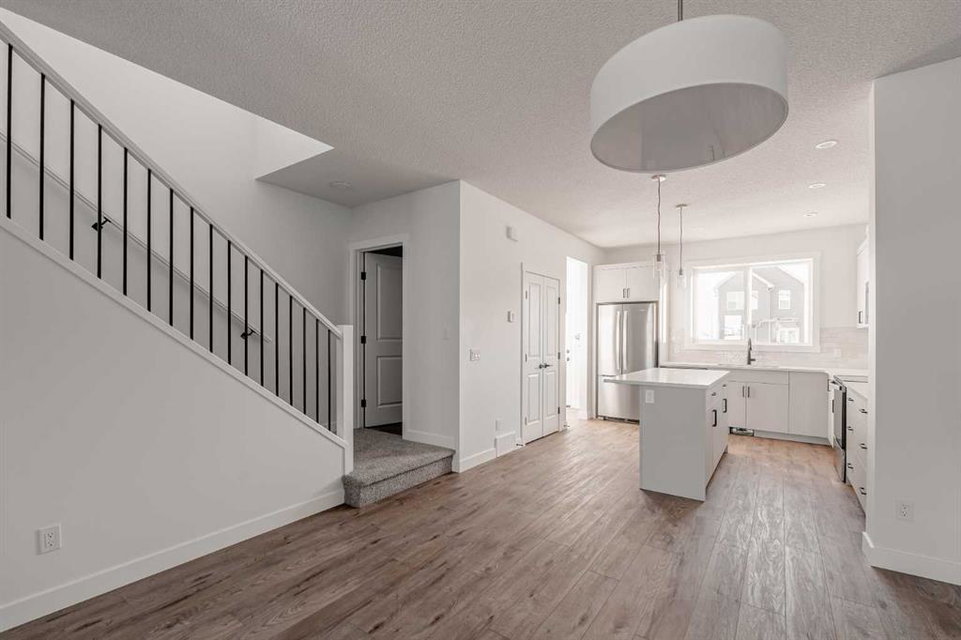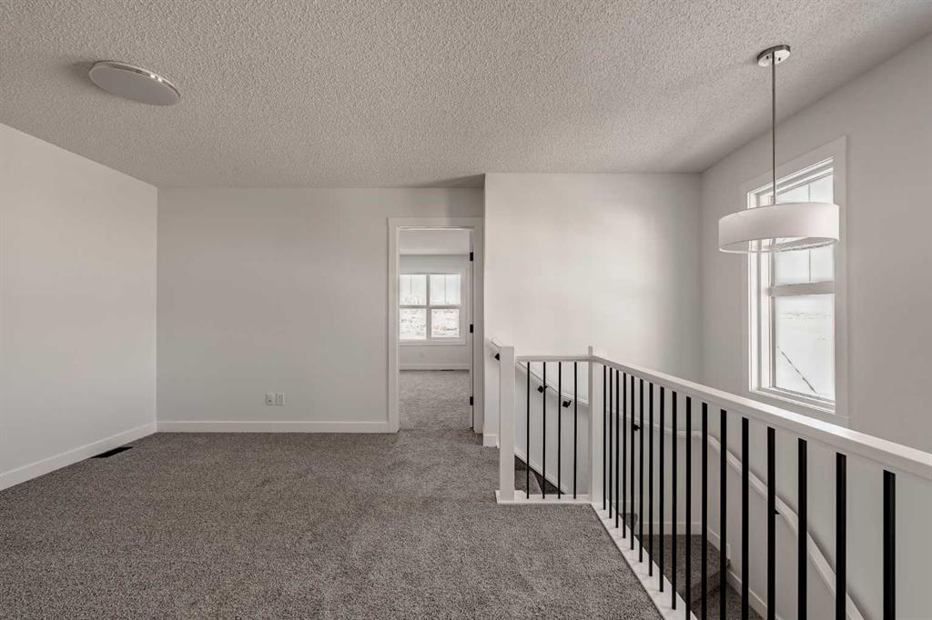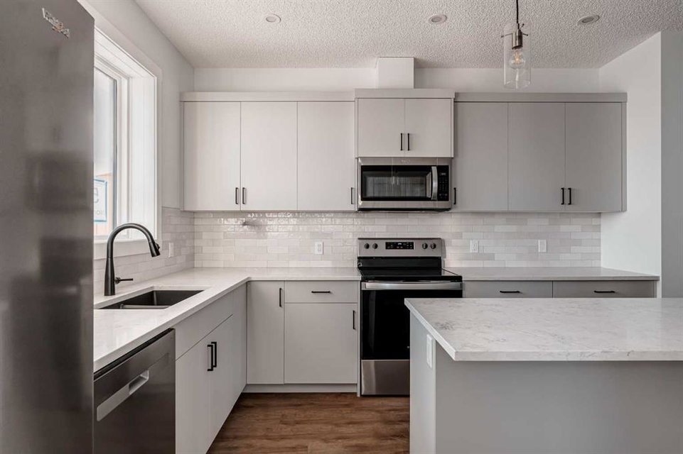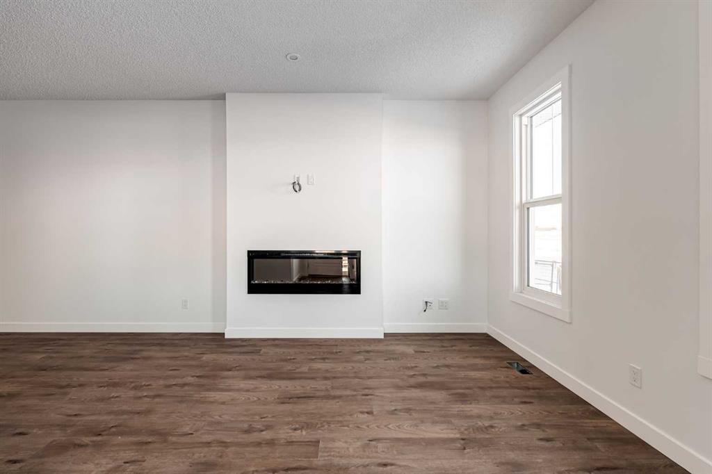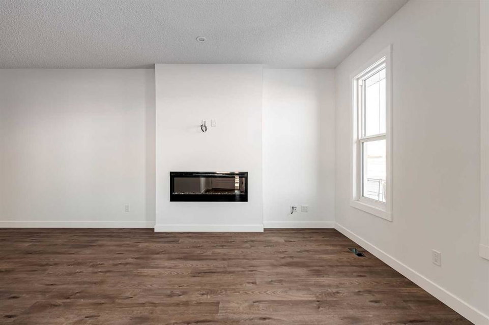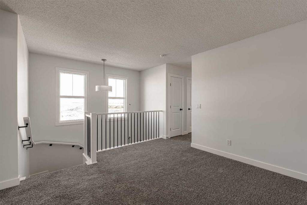 The brand new ‘Alder’ by Brookfield Residential offers functionality and affordability with its fully legal basement suite providing an additional revenue source! Situated on a large corner lot, this beautiful new home features 2 living areas, 3 bedrooms, 2.5 bathrooms and a flex space perfect for a home office + a fully legal basement suite with its own private side entrance. Featuring nearly 1,700 square feet of living space above grade, this home is perfect for first time buyers, investors or those looking to downsize. The open concept main level is the ideal space for entertaining with a kitchen that is open to both living and dining areas. The front of the home features an expansive living area with central electric fireplace and it opens to the central dining area and kitchen at the back of the home. The timeless kitchen features light cabinetry with subway tile backsplash, stainless steel appliances, and a large pantry for additional storage. The kitchen overlooks the south-facing backyard, providing added natural light inside and the perfect outdoor living space. The main level is complete with a ‘flex’ space (perfect for a home office area), a 2 pc bathroom and a mud room. The second level has a central bonus space that separates the primary suite from the secondary bedrooms. The expansive 12’x15′ primary suite is complete with a walk-in closet and private 4 pc ensuite with dual sinks and a walk-in shower. Two more bedrooms and a laundry closet complete the second level. The fully separate legal basement suite is accessed on the side of the property and has a large living area, dining space, full kitchen, bedroom, bathroom and laundry closet in addition to a large utility room with additional storage. Lastly, this brand new home comes with builder warranty + Alberta New Home Warranty, meaning that you can purchase this home with peace of mind. This large corner lot isn’t an everyday offering, so don’t wait!