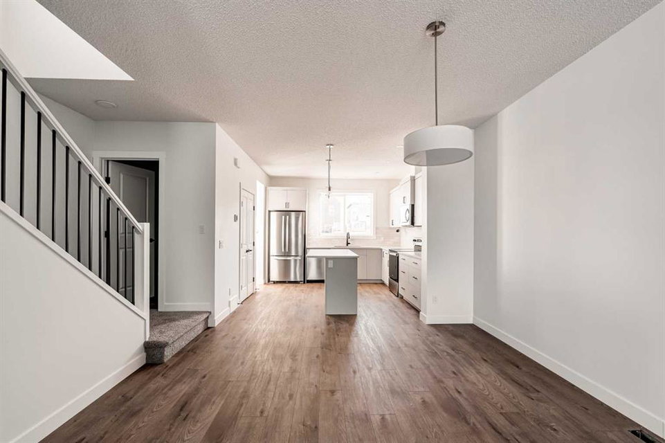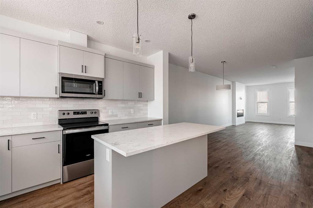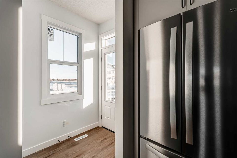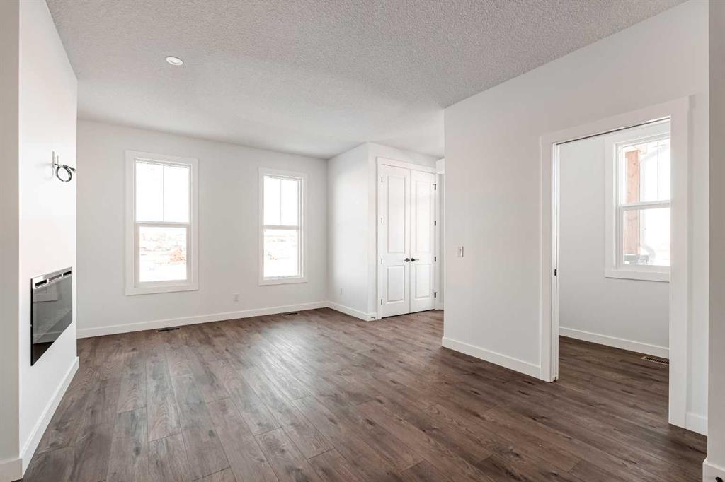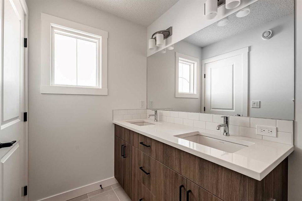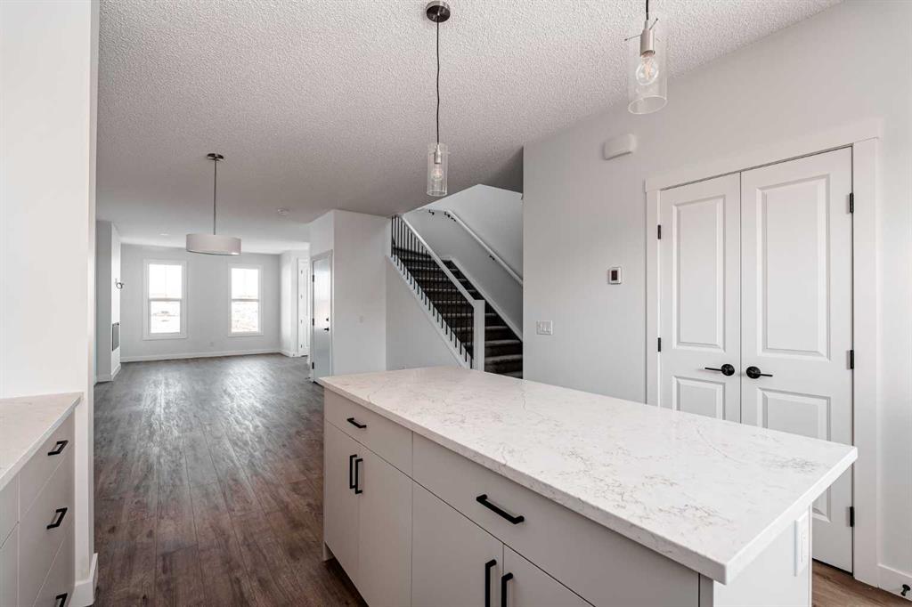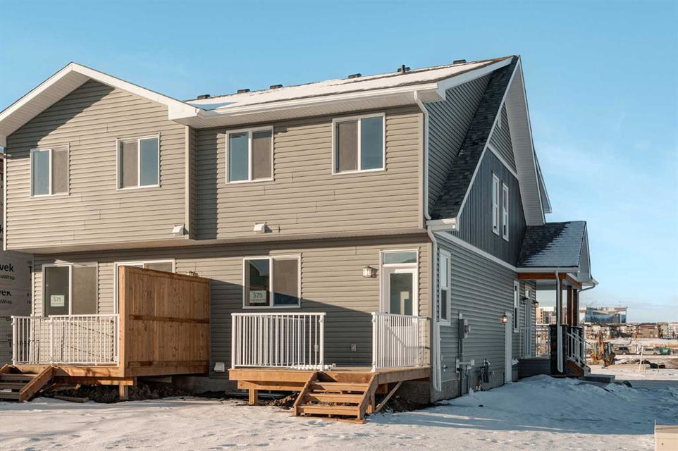 The brand new ‘Alder’ by Brookfield Residential offers functionality and affordability with its fully legal basement suite providing an additional revenue source! Situated on a large corner lot, this beautiful new home features 2 living areas, 3 bedrooms, 2.5 bathrooms and a flex space perfect for a home office + a fully legal basement suite with its own private side entrance. Featuring nearly 1,700 square feet of living space above grade, this home is perfect for first time buyers, investors or those looking to downsize. The open concept main level is the ideal space for entertaining with a kitchen that is open to both living and dining areas. The front of the home features an expansive living area with central electric fireplace and it opens to the central dining area and kitchen at the back of the home. The timeless kitchen features light cabinetry with subway tile backsplash, stainless steel appliances, and a large pantry for additional storage. The kitchen overlooks the south-facing backyard, providing added natural light inside and the perfect outdoor living space. The main level is complete with a ‘flex’ space (perfect for a home office area), a 2 pc bathroom and a mud room. The second level has a central bonus space that separates the primary suite from the secondary bedrooms. The expansive 12’x15′ primary suite is complete with a walk-in closet and private 4 pc ensuite with dual sinks and a walk-in shower. Two more bedrooms and a laundry closet complete the second level. The fully separate legal basement suite is accessed on the side of the property and has a large living area, dining space, full kitchen, bedroom, bathroom and laundry closet in addition to a large utility room with additional storage. Lastly, this brand new home comes with builder warranty + Alberta New Home Warranty, meaning that you can purchase this home with peace of mind. This large corner lot isn’t an everyday offering, so don’t wait!