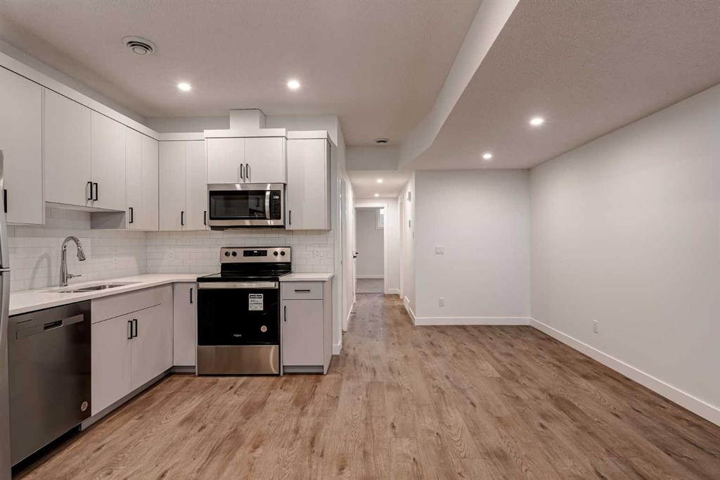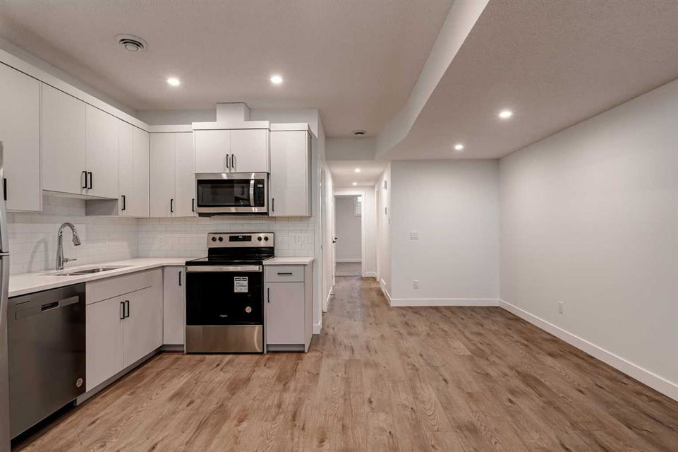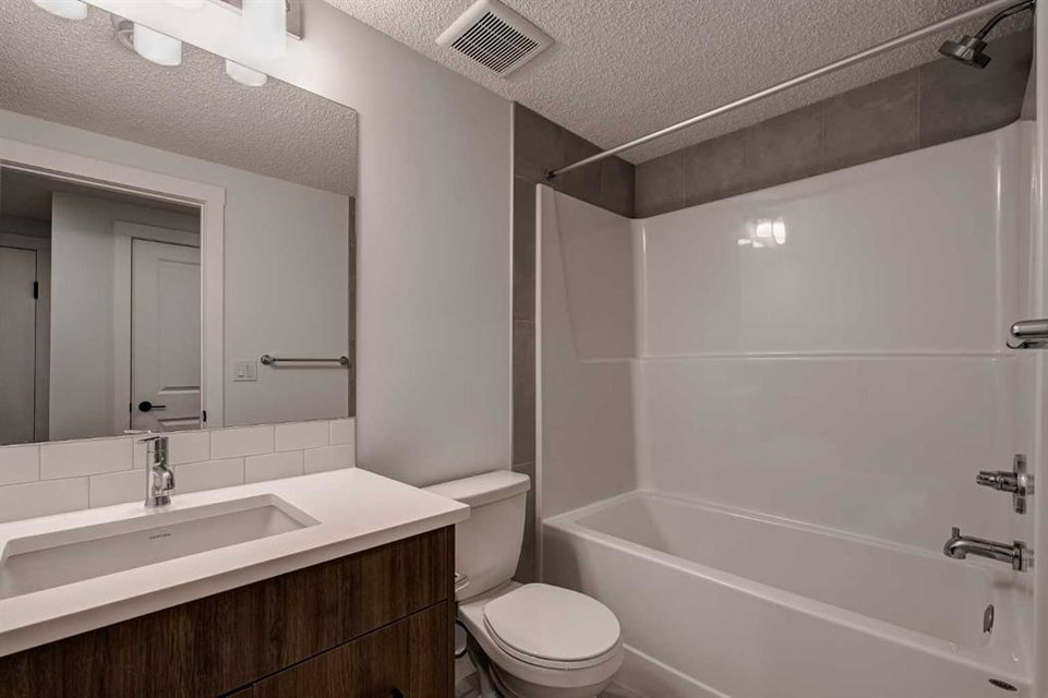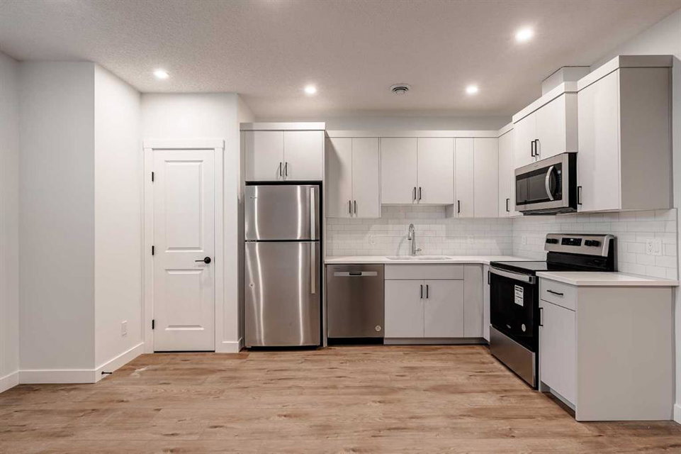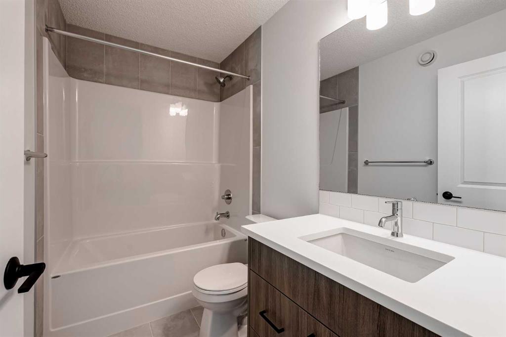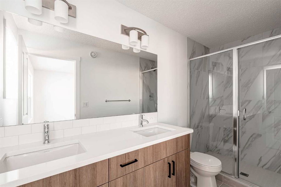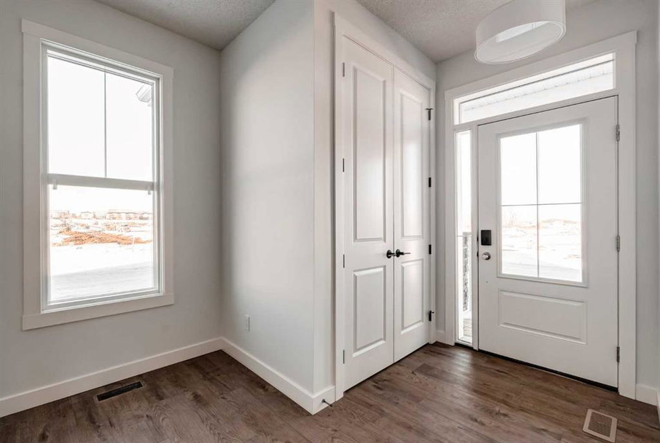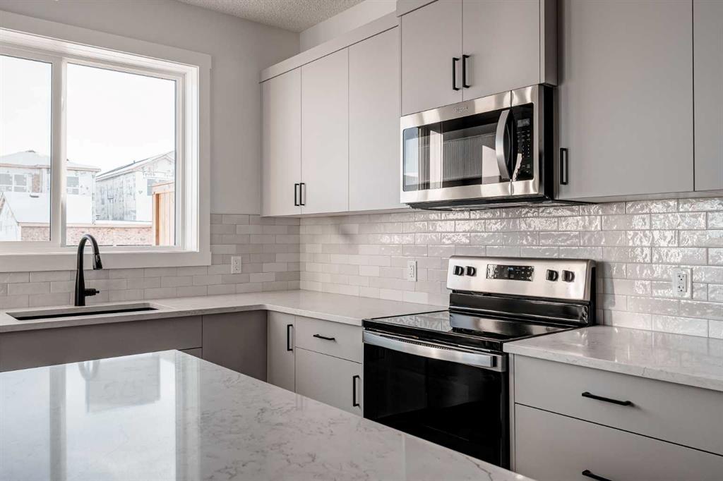 The brand new ‘Alder’ by Brookfield Residential offers functionality and affordability with its fully legal basement suite providing an additional revenue source! Situated on a large corner lot, this beautiful new home features 2 living areas, 3 bedrooms, 2.5 bathrooms and a flex space perfect for a home office + a fully legal basement suite with its own private side entrance. Featuring nearly 1,700 square feet of living space above grade, this home is perfect for first time buyers, investors or those looking to downsize. The open concept main level is the ideal space for entertaining with a kitchen that is open to both living and dining areas. The front of the home features an expansive living area with central electric fireplace and it opens to the central dining area and kitchen at the back of the home. The timeless kitchen features light cabinetry with subway tile backsplash, stainless steel appliances, and a large pantry for additional storage. The kitchen overlooks the south-facing backyard, providing added natural light inside and the perfect outdoor living space. The main level is complete with a ‘flex’ space (perfect for a home office area), a 2 pc bathroom and a mud room. The second level has a central bonus space that separates the primary suite from the secondary bedrooms. The expansive 12’x15′ primary suite is complete with a walk-in closet and private 4 pc ensuite with dual sinks and a walk-in shower. Two more bedrooms and a laundry closet complete the second level. The fully separate legal basement suite is accessed on the side of the property and has a large living area, dining space, full kitchen, bedroom, bathroom and laundry closet in addition to a large utility room with additional storage. Lastly, this brand new home comes with builder warranty + Alberta New Home Warranty, meaning that you can purchase this home with peace of mind. This large corner lot isn’t an everyday offering, so don’t wait!
