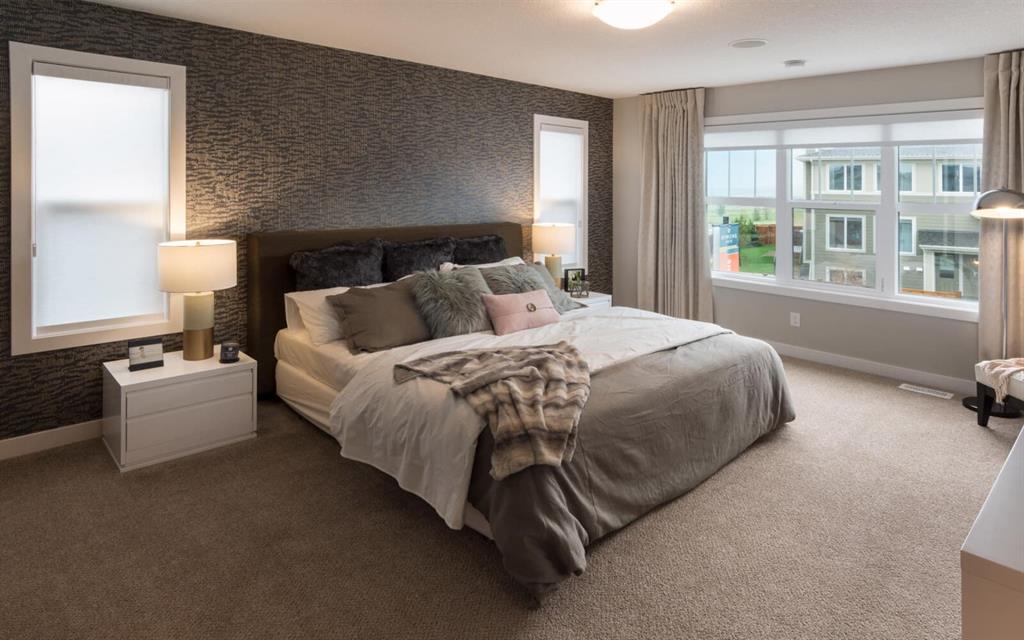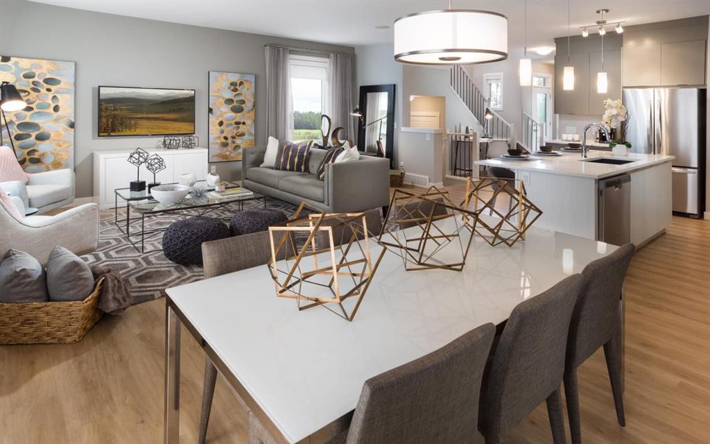 Incredible, limited Front Garage home opportunities available now in Calgary’s Community of the Year, Livingston. The Purcell boasts a striking Arts & Crafts exterior elevation and 2,200 of impeccably designed, practical living space. The open concept main level with 9 ft. ceilings throughout is perfect for entertaining with the kitchen overlooking both the dining and living rooms equipped with a gas fireplace. The gourmet kitchen is finished with full height cabinetry, quartz countertops and a suite of upgraded stainless steel appliances. Enjoy the convenience of a walk-through pantry off a spacious mudroom and a main floor flex room, perfect for a home office. The beautiful master suite comes with a walk-in closet and a 5-piece en suite with dual vanities, a walk-in shower and a soaker tub. Completing the upper level are 2 bedrooms, a 4-piece bathroom, laundry room and a large bonus room – perfect for game nights at home. This 3-bedroom floorplan is ideal for families at all stages of life. Legal fees and Alberta New Home Warranty included with purchase. **Please note: Photos are from a previous show home model and are not an exact representation of the property for sale.