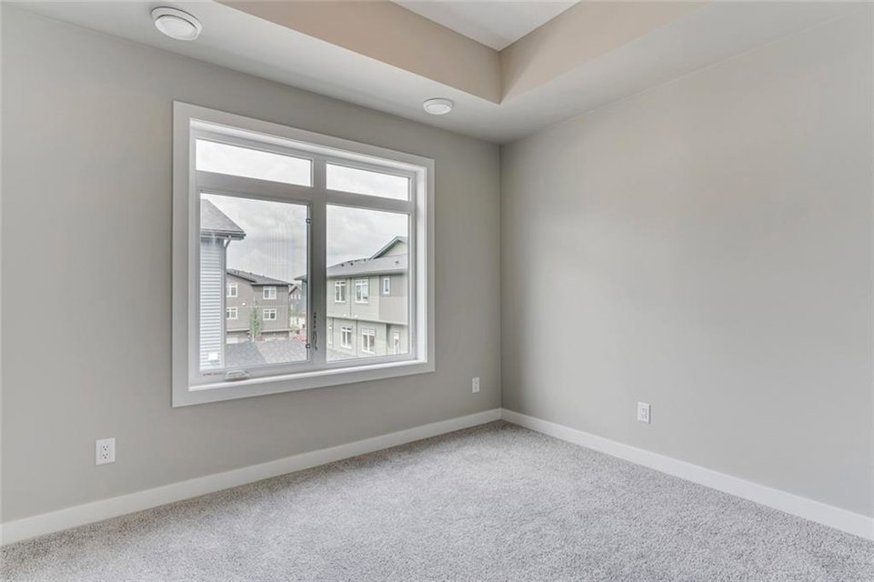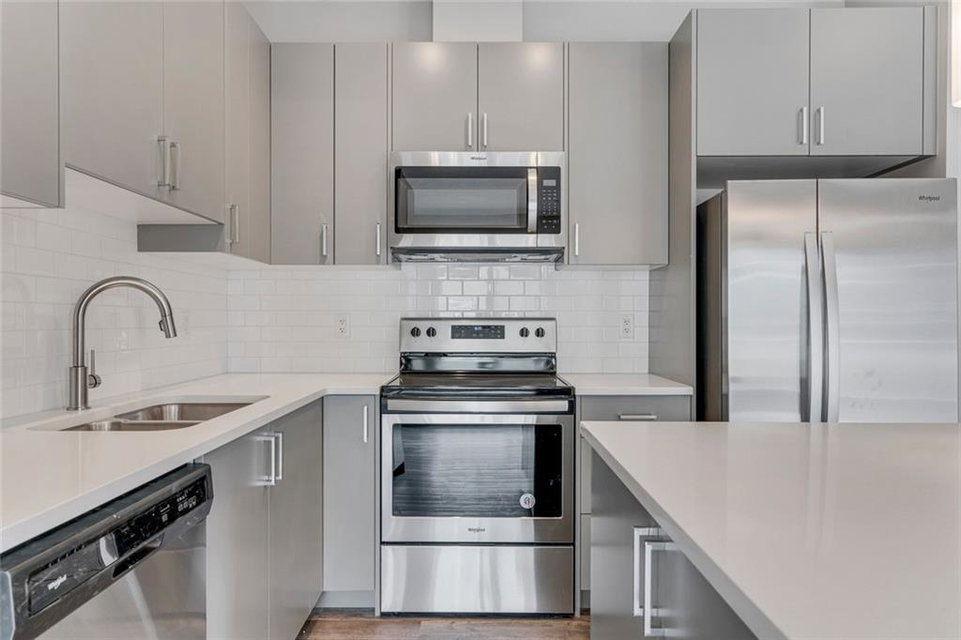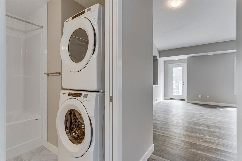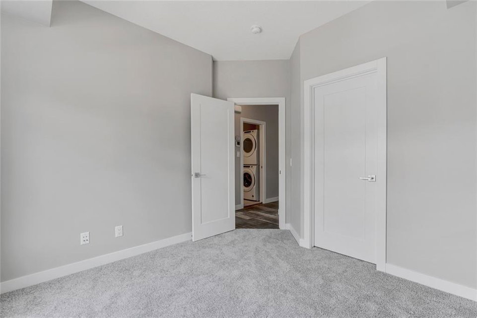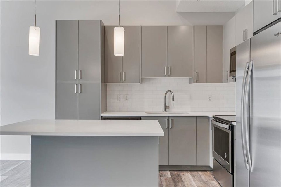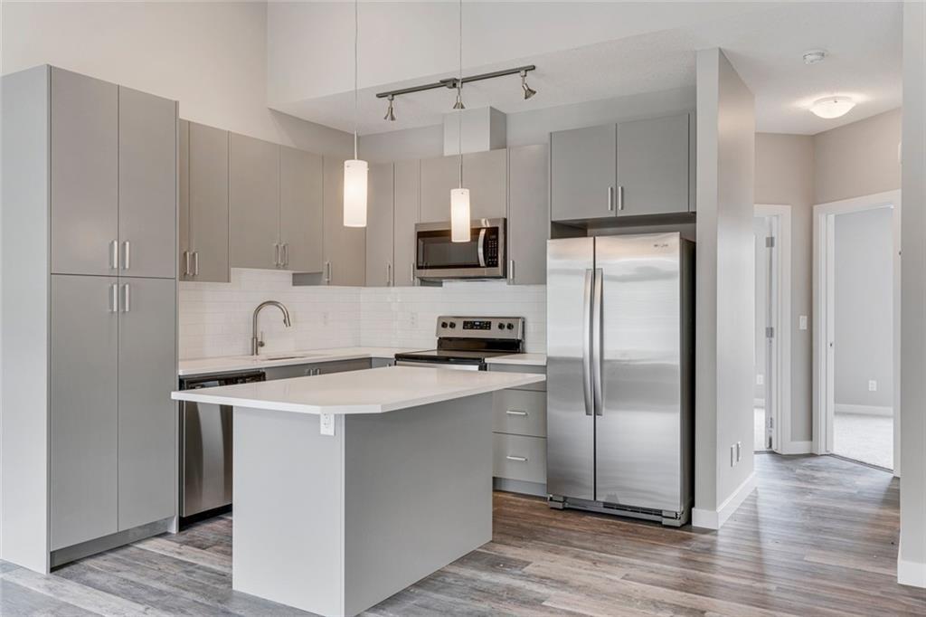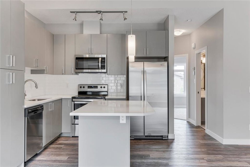 Don’t miss out on your last opportunity to own a Ruby loft at the Link at Symons Gate! This entry level price point is perfect for the first time home buyer or for a wonderful investment opportunity. The Ruby floor plan has vaulted ceilings in the great room which opens up the living space and makes a grand impression. The balcony off of the front has room for your BBQ or to sit and look out over the green space in front of the home. The kitchen has beautiful and ‘Storm Grey’ cabinets with contemporary white quartz countertops and a full stainless steel Whirlpool appliance package. The master bedroom is complete with walk-in closet and the second bedroom makes the perfect guest space or home office. The attached garage will keep your vehicle safe and warm in the winter so you don’t have to park outside. Legal fees and Alberta New Home Warranty included with the purchase of this brand new home!