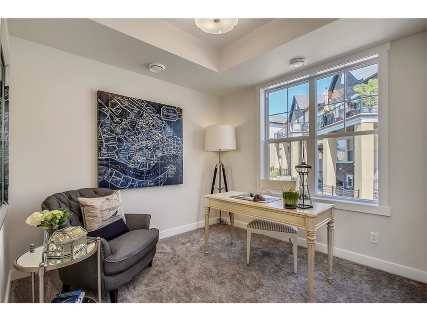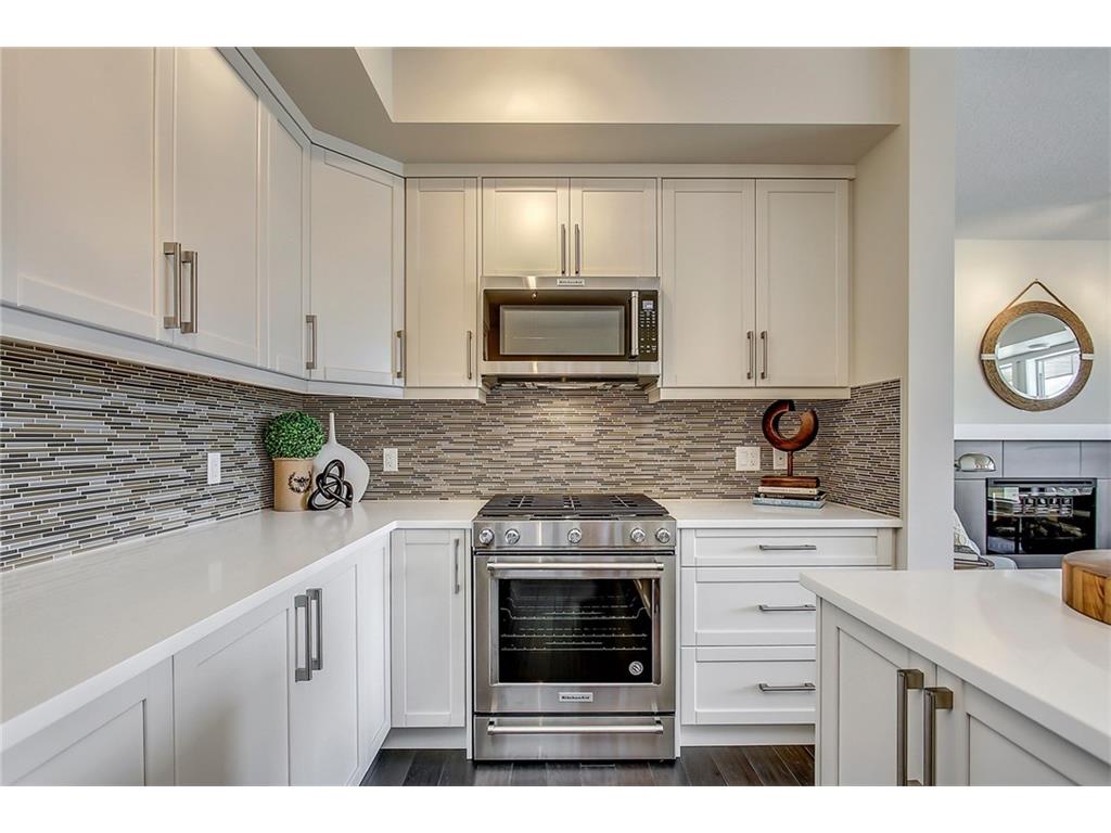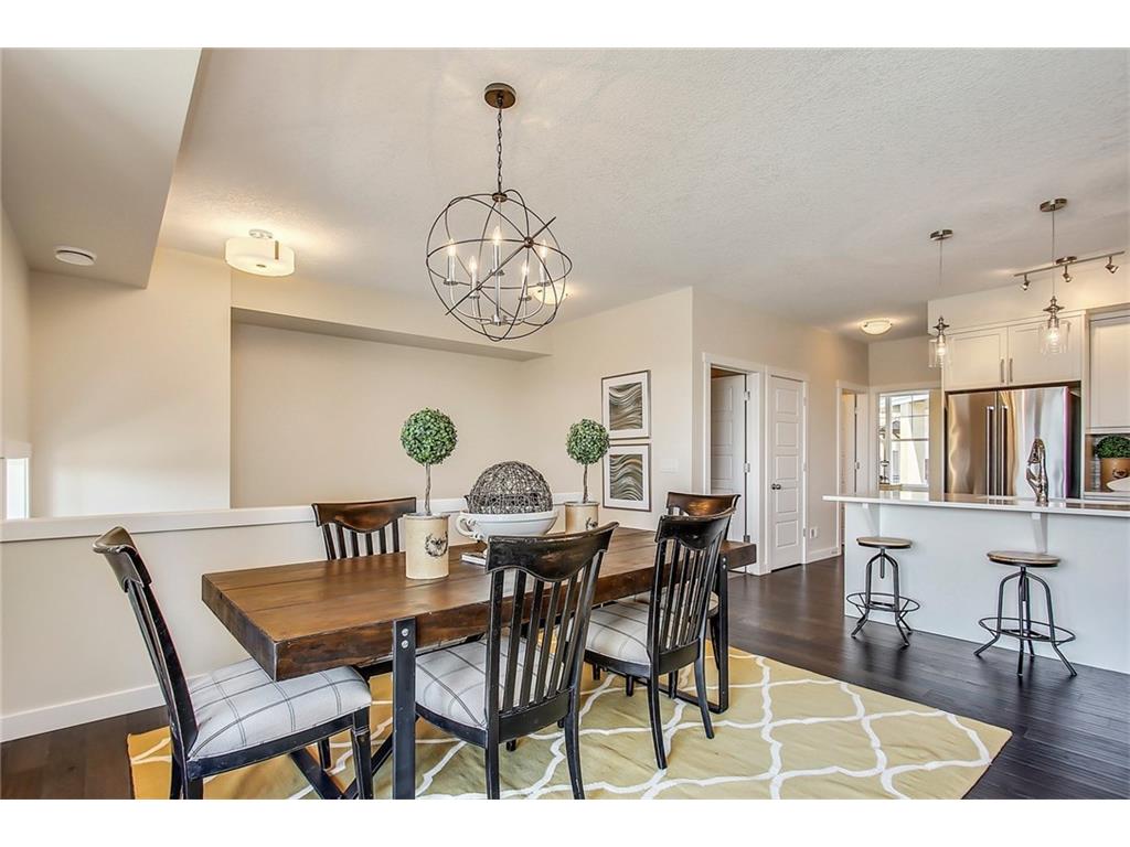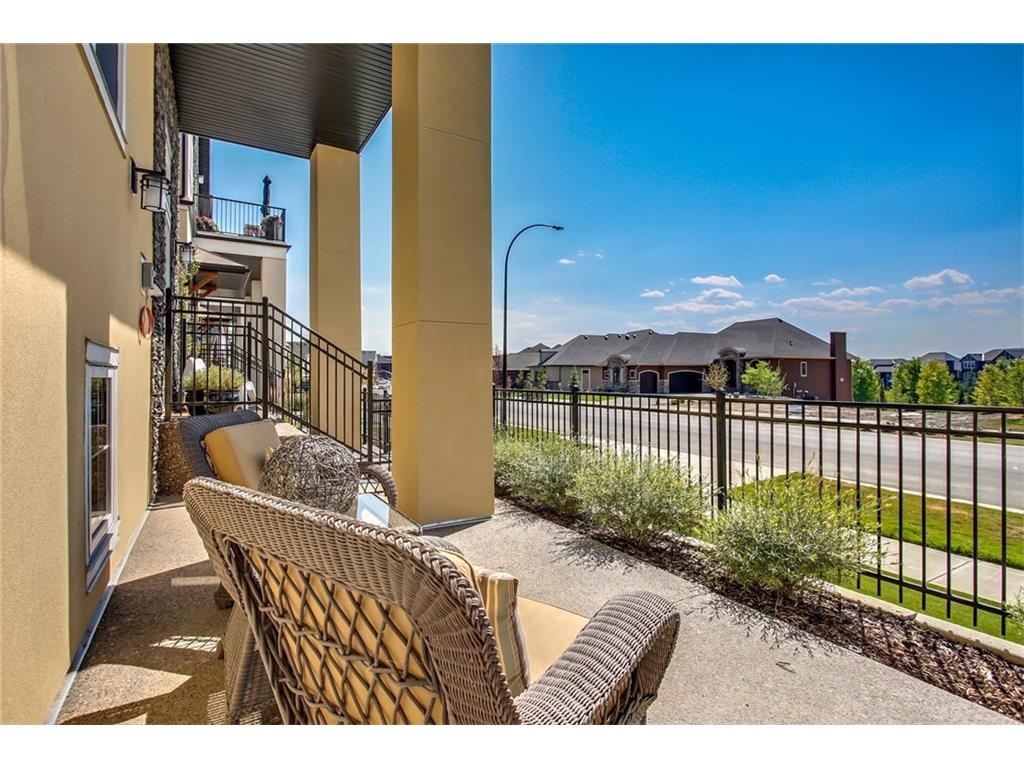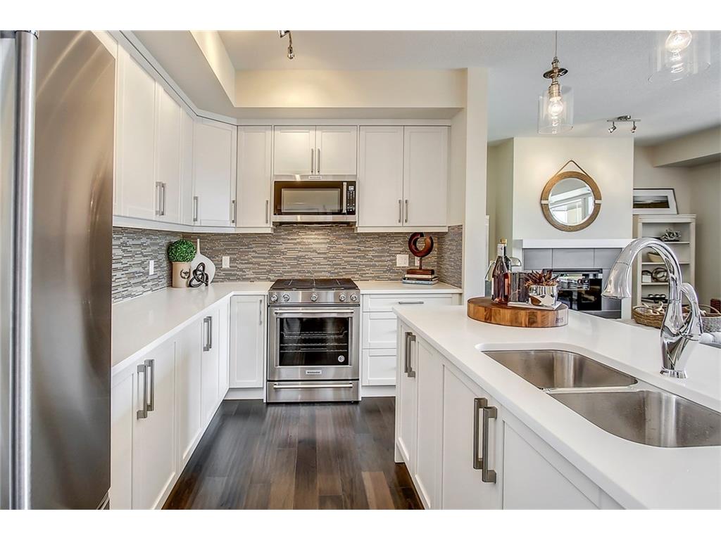 This stunning bungalow townhouse includes comfort, luxury and maintenance-free living in the heart of Riverstone. The open-concept living area features a chef’s kitchen complete with full height cabinetry, mosaic backsplash, Kitchen Aid appliances, quartz countertops and a large island with extended eating bar that overlooks the main living area. Hardwood flooring flows throughout the home offering a seamless design throughout. Living and dining areas are surrounded by windows with West exposure, ensuring natural light flows throughout the property all day long. The large master retreat offers ample room for a king-sized bed in addition to bedroom furniture, a full walk-in closet and ensuite complete with a walk-in shower. Two additional bedrooms create the perfect space for guests or a second bedroom plus den. Ideal for those who are ready to ‘right-size’ without forgoing the luxuries they deserve, Mosaic Riverstone’s ‘Hunter’ combines maintenance-free living with nature.