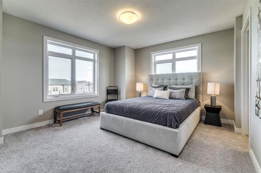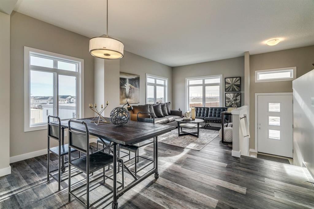 3 Bedroom Townhome Ready to move in this Winter! This beautiful home is situated in the estate community of Riverstone and offers Zero exterior maintenance, an attached Double Garage and a South facing Patio with Garden. Open concept main floor with front living room, a storage room, dining room and a large kitchen with island and rear balcony for that extra outdoor space. Both functional and perfect for entertaining! Upstairs boasts 3 bedrooms with main bathroom & ensuite. All appliances, including washer & dryer, legal fees and one free year of Telus services are included with this home. Situated in the desired community of Riverstone, Fish Creek Park and the Bow river are just steps away. Additionally, this brand new home offers a Builder Warranty along with a 10 year Alberta New Home Warranty. *Please note that photos are from a showhome model and are not an exact representation of the property for sale. Home is currently under construction