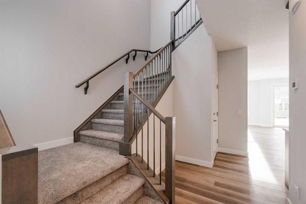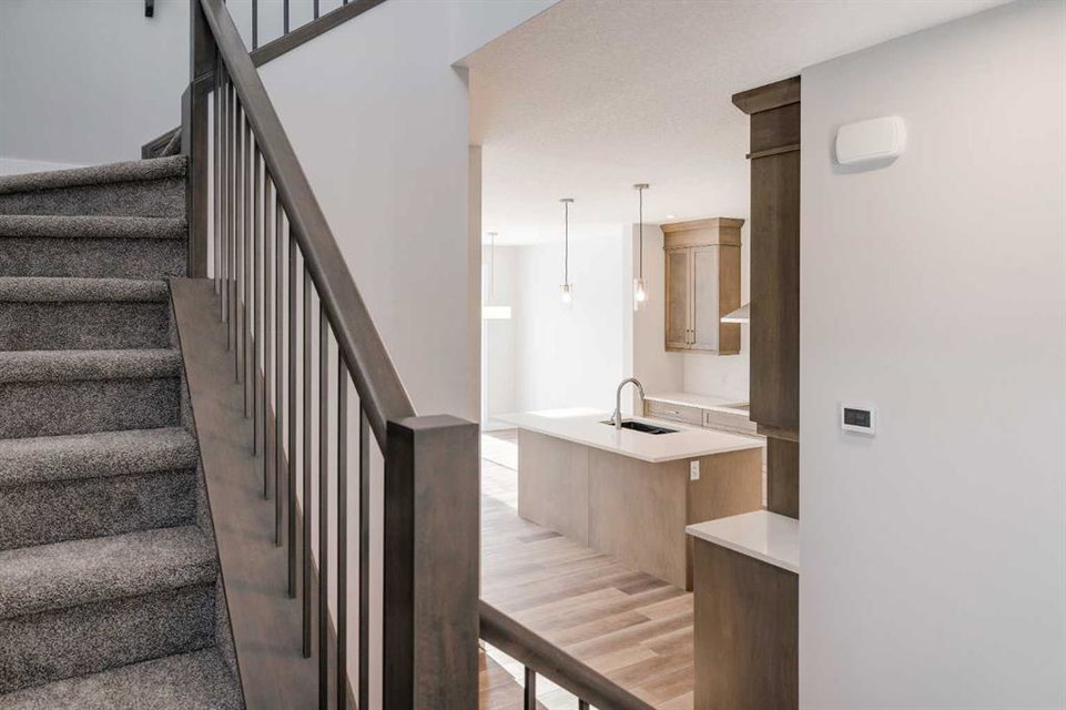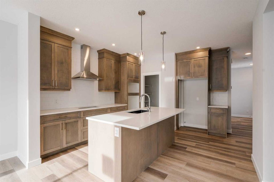 The Purcell 24 with legal basement suite meaning that you can have a beautiful brand new home + private space for family or rental income to assist with monthly mortgage costs! This brand-new home is fully complete allowing for immediate possession! Featuring 4 spacious bedrooms, 3.5 bathrooms, a flex room, 2 living areas and over 2,800 square feet of developed space, this home is perfect for a growing family or investor. This beautifully designed home features an open concept floor plan with a kitchen that overlooks both living and dining areas – making a great space for entertaining or for those with young children. The home is finished with resilient luxury vinyl plank flooring throughout the main level, full height maple cabinetry, quartz countertops and a suite of stainless-steel built-in appliances including a cooktop, chimney range hood & wall oven. Completing the main level is a large living room, a flex room perfect for a home office or study space and a mudroom with access to the pantry and garage. The upper level of the home offers an expansive bonus room / media area. The home features a large primary suite complete with a walk-in closet and 5 pc en suite including a walk-in shower, soaker tub and dual sinks. The upper level offers two more bedrooms and a full 4-pc bathroom and a full laundry room for added convenience for daily living. This property comes equipped with a separate entrance on the side of the home to the legal basement suite. The 1 bedroom, 1 bathroom basement suite comes with a full kitchen, living/dining room, and stacked washer & dryer. This home also includes 2 full mechanical systems, a 10 year warranty, energy efficient features such as triple pane windows, high efficiency furnace, 80 gallon hot water tank, and many other conveniences only a new home can offer. Nestled in a community overflowing with local amenities, this property is just steps away from 3 breathtaking playgrounds, 5 spectacular golf courses within 15 minutes, 10 minutes from the stunning Fish Creek Park, 4 minutes from the trendy Township shopping center, and 10 minutes from the bustling Shawnessy/Millrise shopping complex. With 1 of the 3 luxurious VIP cinemas just 10 minutes away and a future state-of-the-art field house/recreation center in the community, there’s never a dull moment. With multiple local and regional pathways for walking, and a nearby environmental reserve, outdoor adventures await.