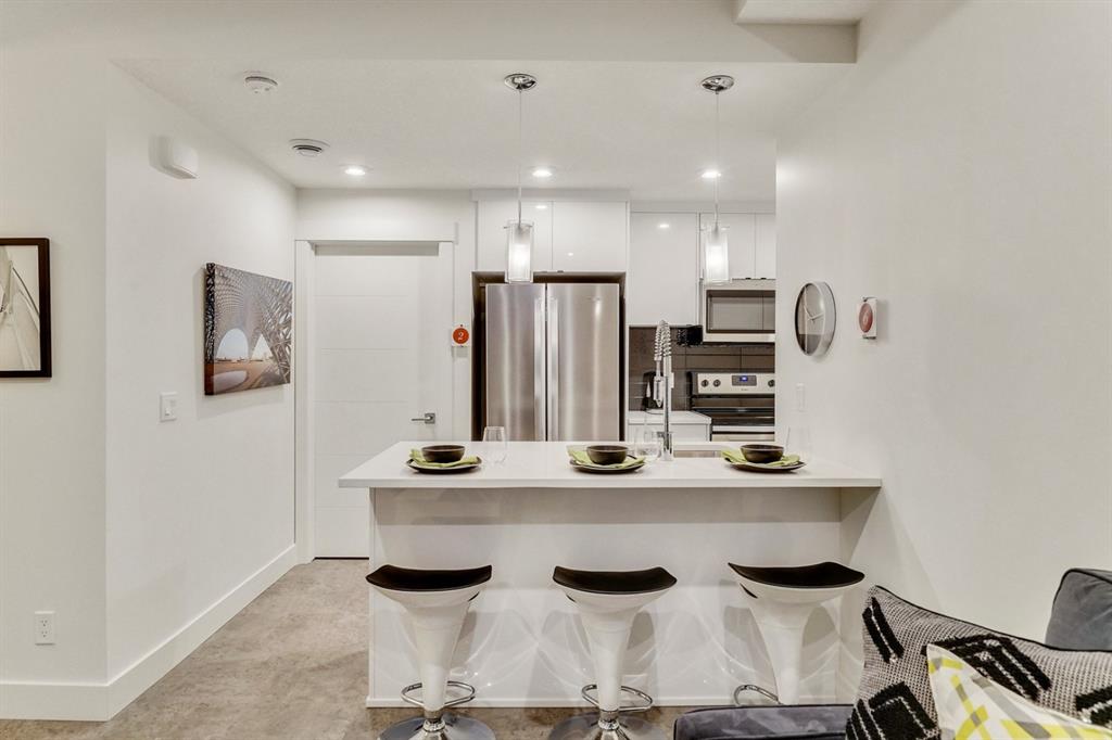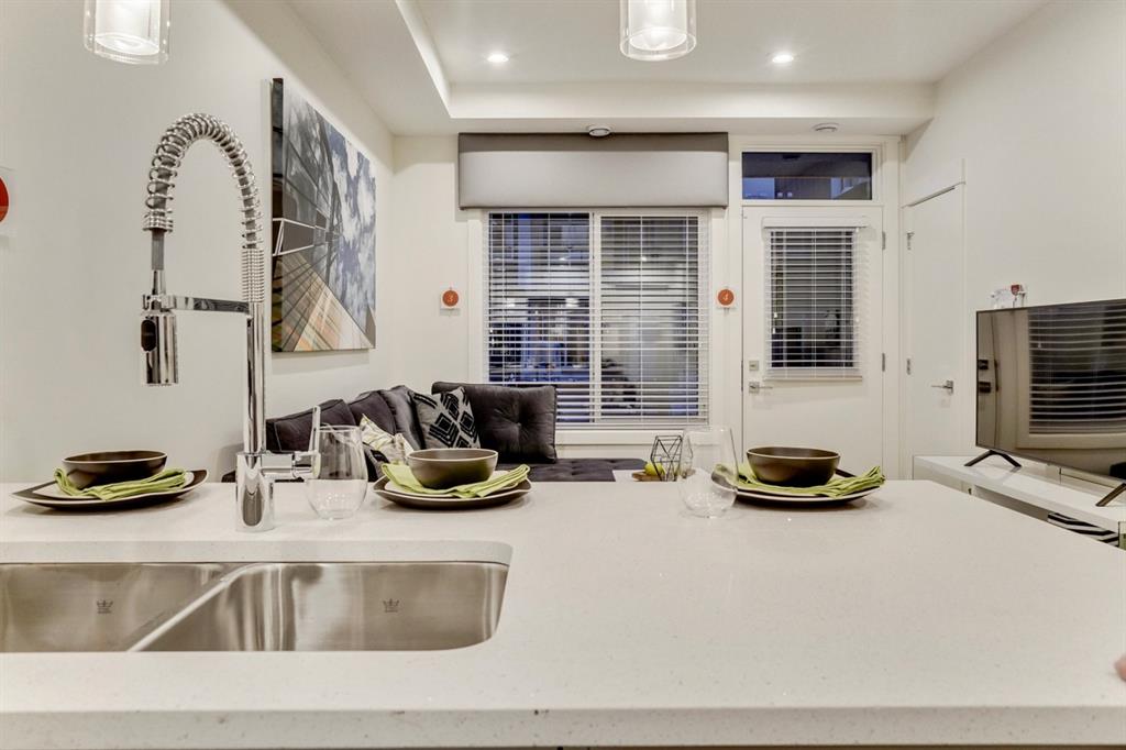 An incredible opportunity to own a brand new 1 bedroom + den townhome in the heart of Seton! The “Cali” Built by Rohit Communities, one of Alberta’s largest homebuilders is an excellent first home offering ample space for a home office while providing plenty of space for daily living and an excellent entertaining area. Perfect for health care professionals or those looking to take advantage of all that Seton has to offer with its walkability, restaurants and numerous shops. This is an incredible opportunity to stop renting and own a brand new home! This home is finished in the ‘New Nordic’ Designer Interior featuring sleek two-toned cabinetry mixed with warm woods and matte black hardware with laminate flooring, quartz countertops and designer lighting. The south-facing main floor home is completed with a titled parking stall and low condo fees. *Note: Photos from show home and are not an exact representation of the property for sale.