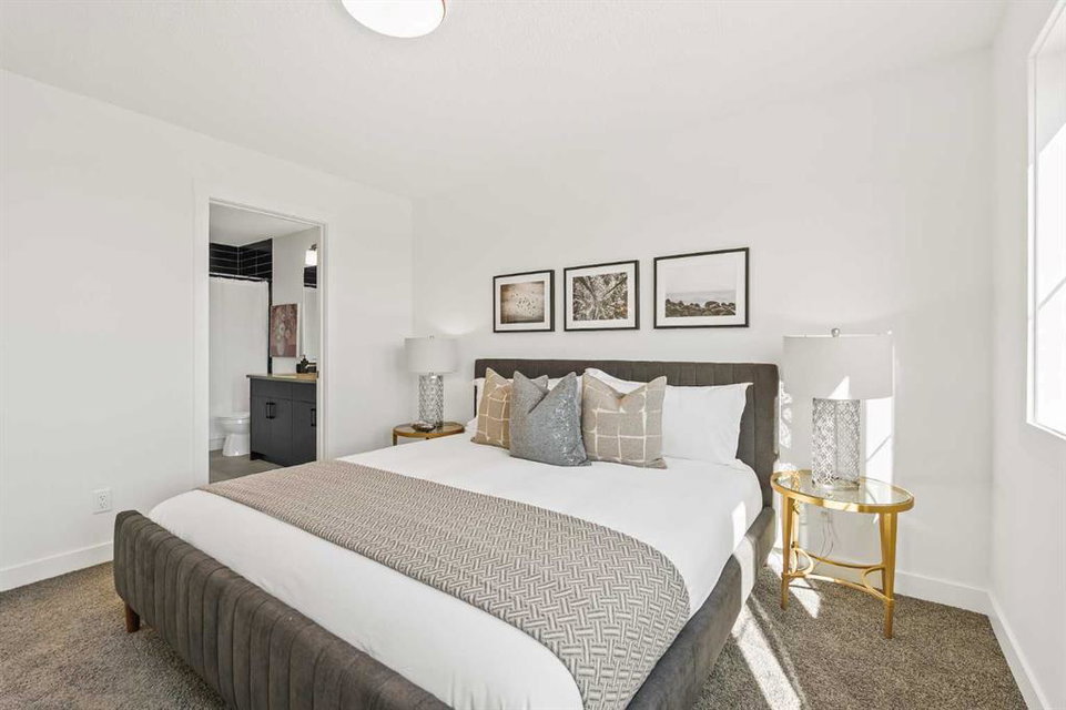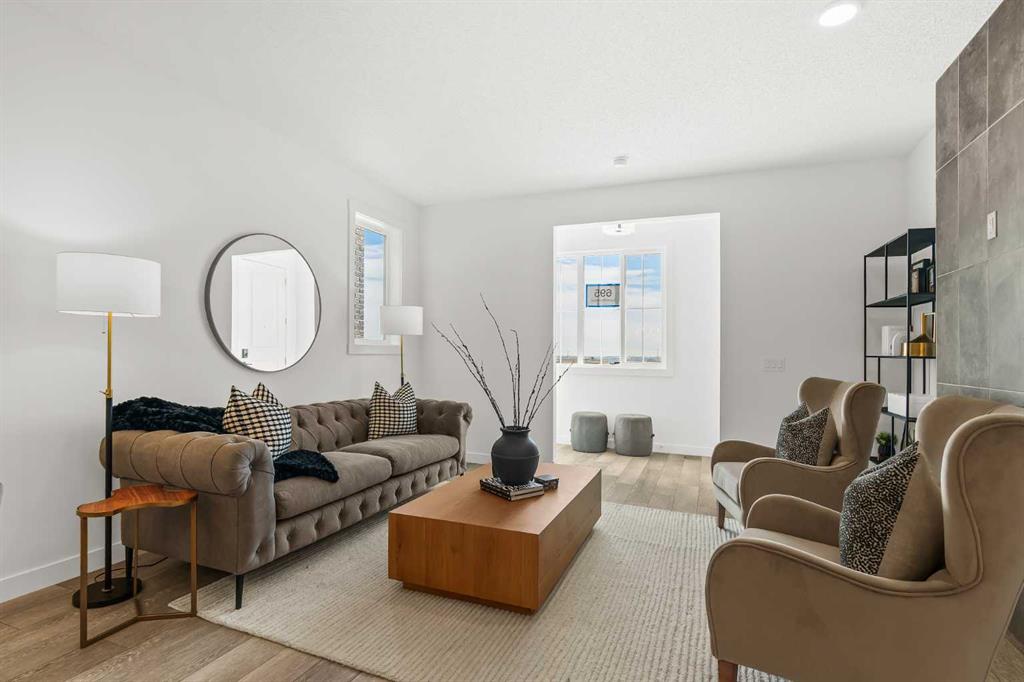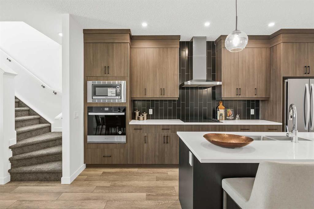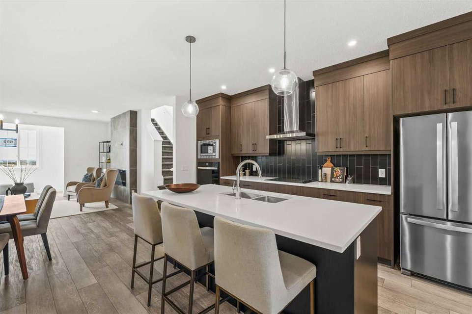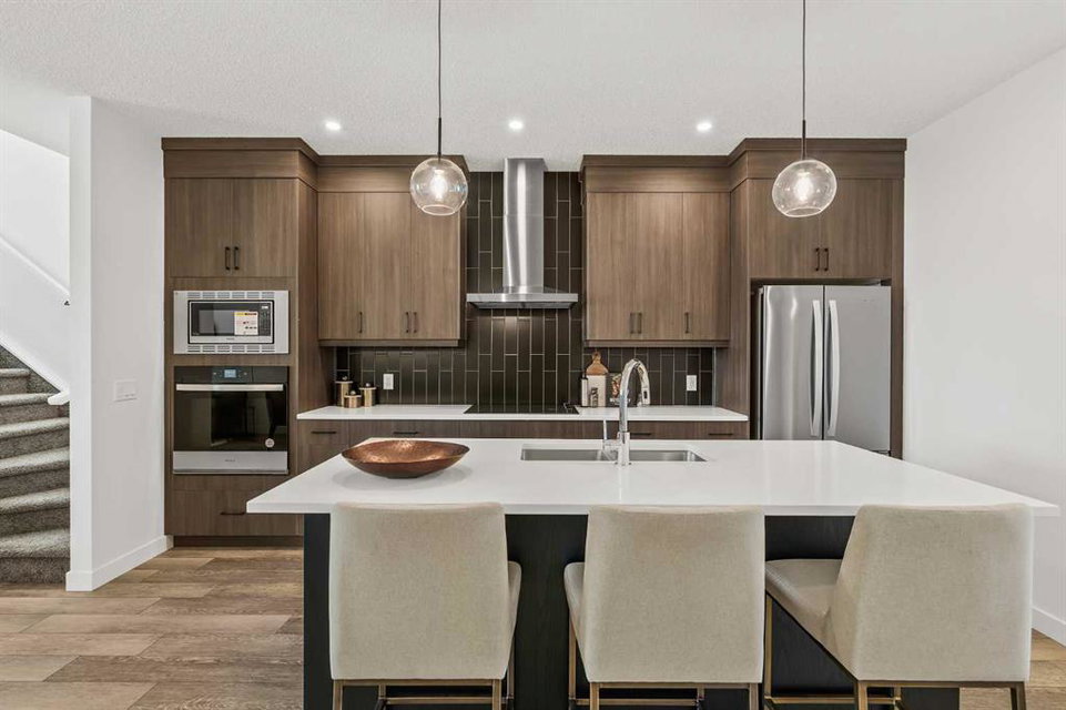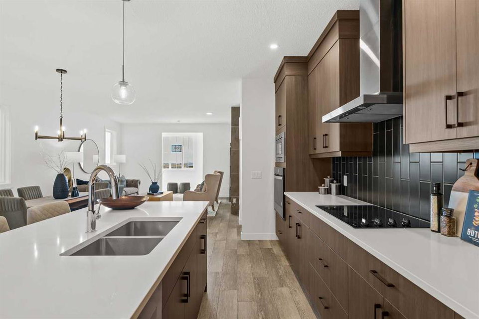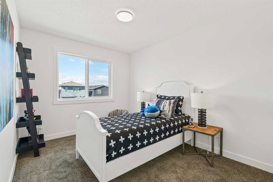 Ready for Immediate Possession! The beautiful, ALL NEW Portland, built by Brookfield Residential, features a functional layout with 4 bedrooms and 3 full bathrooms (including a main-level bedroom and bathroom), plus a 2-bedroom, 1-bathroom legal basement suite. Offering over 2,600 sqft of developed space across three levels, this home is perfect for a growing family seeking multi-generational living or an investor looking for multiple revenue-generating suites. The open-concept main floor boasts 9-ft ceilings, luxury vinyl plank flooring, and expansive windows at the front, rear, and side of the home, filling the space with natural light throughout the day. The kitchen is centrally located, overlooking both the dining and living rooms. It is upgraded with full-height cabinetry, a suite of stainless-steel appliances, including a cooktop, chimney hood fan, built-in wall oven, and microwave. The kitchen also features a large island with a flush eating bar, quartz countertops, and a walk-in pantry. At the front of the home is a spacious living room with an electric fireplace. At the rear, you’ll find a conveniently located bedroom and full bathroom—perfect for those with mobility issues, along with a large rear closet for added storage. A spindle railing leads to the upper level. The upper level offers three bedrooms, with a central bonus room providing separation between the primary suite and the secondary bedrooms. The primary suite includes a 5-piece ensuite with dual sinks and a large walk-in closet. Two additional bedrooms, a full 4-piece bathroom, and a generously sized laundry room complete this level. The lower level of the home features a separate entrance leading to a 2-bedroom legal basement suite. The suite includes a central kitchen that overlooks the living/dining area, and the bedrooms are located on either side of the space for added privacy. Completing the property is a 13′ x 8′ rear deck, perfect for soaking up the summer sun. Situated in the sought-after area of Livingston, this newly built home is move-in ready and offers a great opportunity for both buyers and investors alike. *Please note: Photos are from a previous show home and may not be an exact representation of the property for sale.