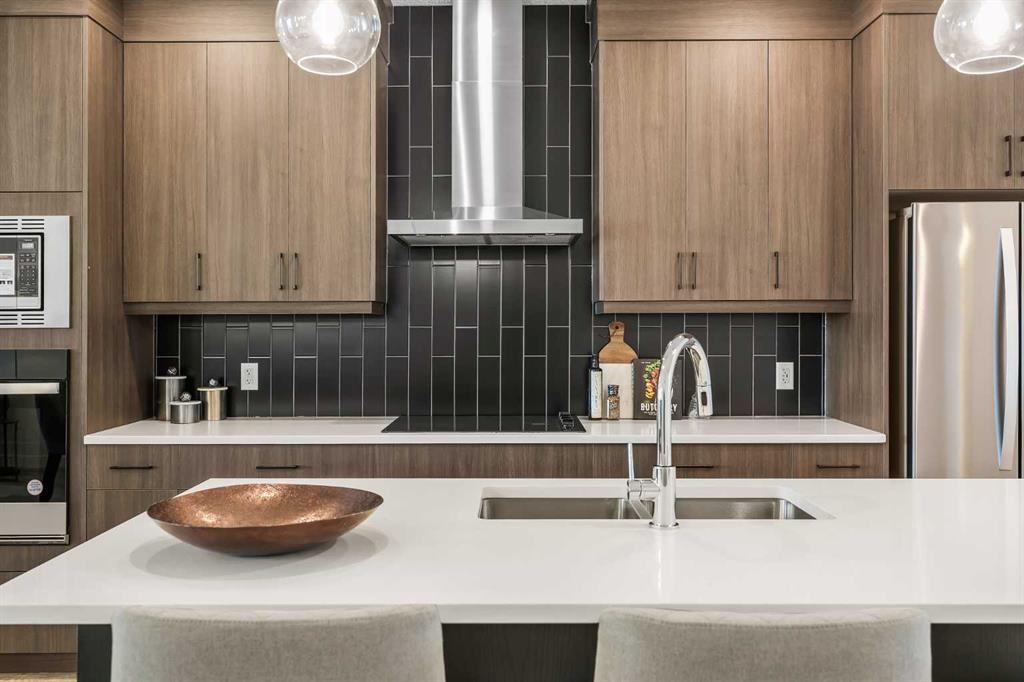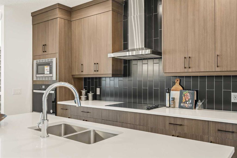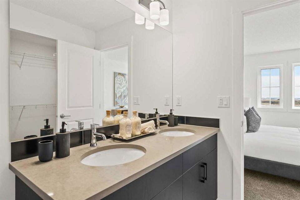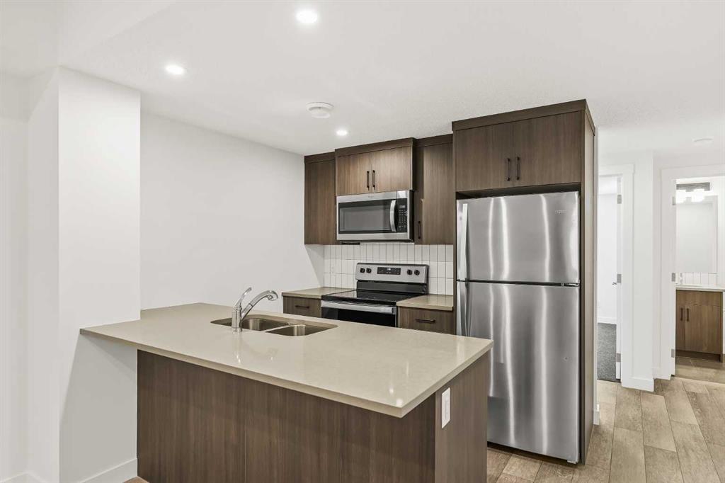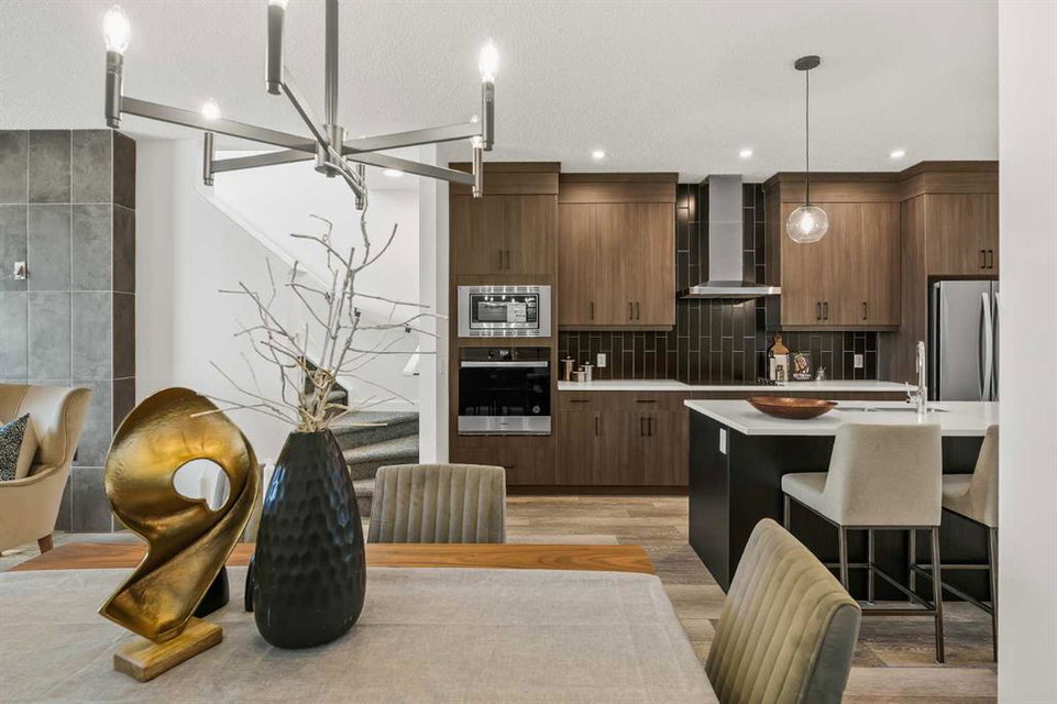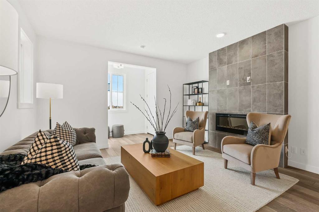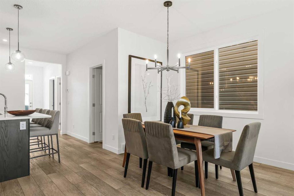 Ready for Immediate Possession! The beautiful, ALL NEW Portland, built by Brookfield Residential, features a functional layout with 4 bedrooms and 3 full bathrooms (including a main-level bedroom and bathroom), plus a 2-bedroom, 1-bathroom legal basement suite. Offering over 2,600 sqft of developed space across three levels, this home is perfect for a growing family seeking multi-generational living or an investor looking for multiple revenue-generating suites. The open-concept main floor boasts 9-ft ceilings, luxury vinyl plank flooring, and expansive windows at the front, rear, and side of the home, filling the space with natural light throughout the day. The kitchen is centrally located, overlooking both the dining and living rooms. It is upgraded with full-height cabinetry, a suite of stainless-steel appliances, including a cooktop, chimney hood fan, built-in wall oven, and microwave. The kitchen also features a large island with a flush eating bar, quartz countertops, and a walk-in pantry. At the front of the home is a spacious living room with an electric fireplace. At the rear, you’ll find a conveniently located bedroom and full bathroom—perfect for those with mobility issues, along with a large rear closet for added storage. A spindle railing leads to the upper level. The upper level offers three bedrooms, with a central bonus room providing separation between the primary suite and the secondary bedrooms. The primary suite includes a 5-piece ensuite with dual sinks and a large walk-in closet. Two additional bedrooms, a full 4-piece bathroom, and a generously sized laundry room complete this level. The lower level of the home features a separate entrance leading to a 2-bedroom legal basement suite. The suite includes a central kitchen that overlooks the living/dining area, and the bedrooms are located on either side of the space for added privacy. Completing the property is a 13′ x 8′ rear deck, perfect for soaking up the summer sun. Situated in the sought-after area of Livingston, this newly built home is move-in ready and offers a great opportunity for both buyers and investors alike. *Please note: Photos are from a previous show home and may not be an exact representation of the property for sale.