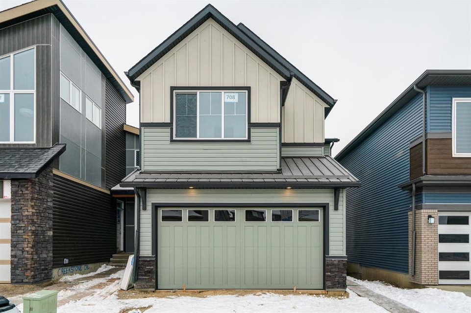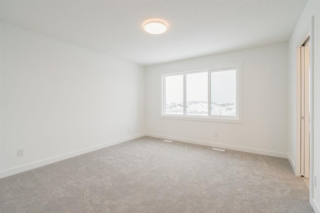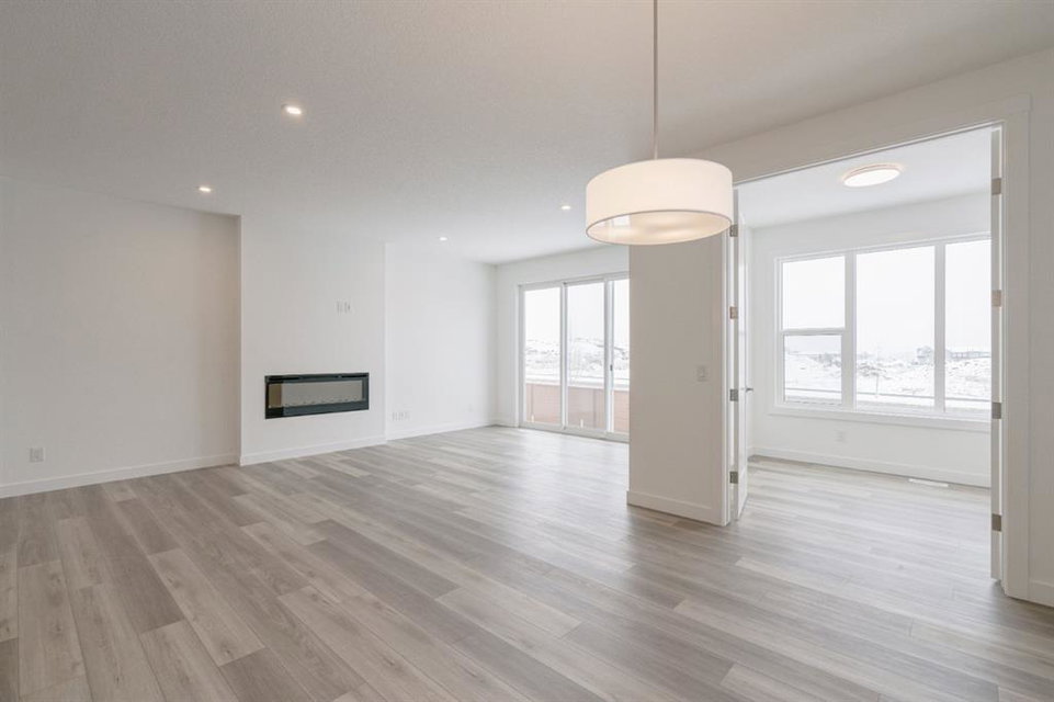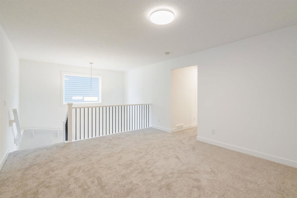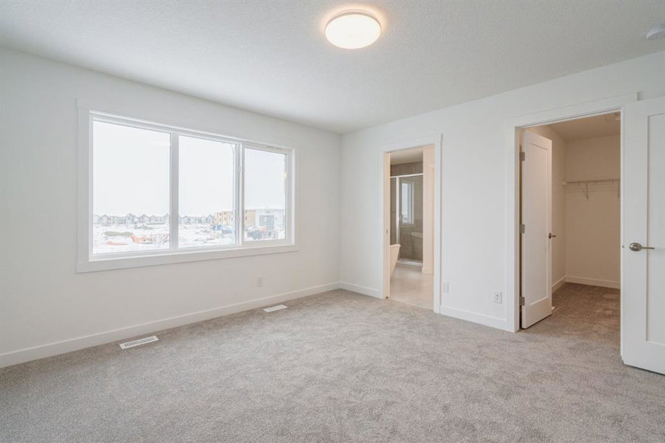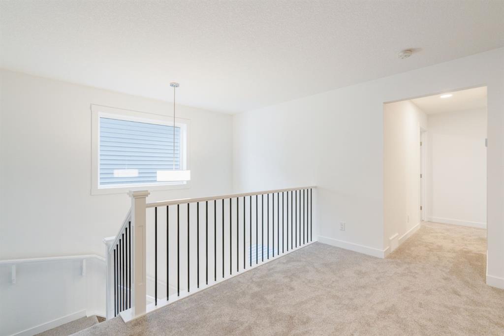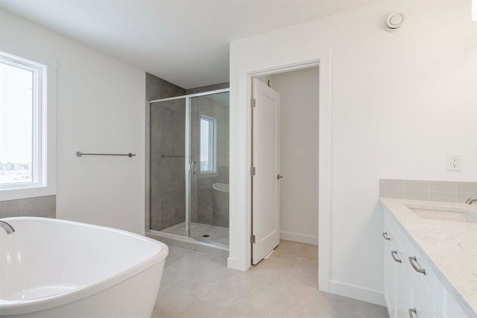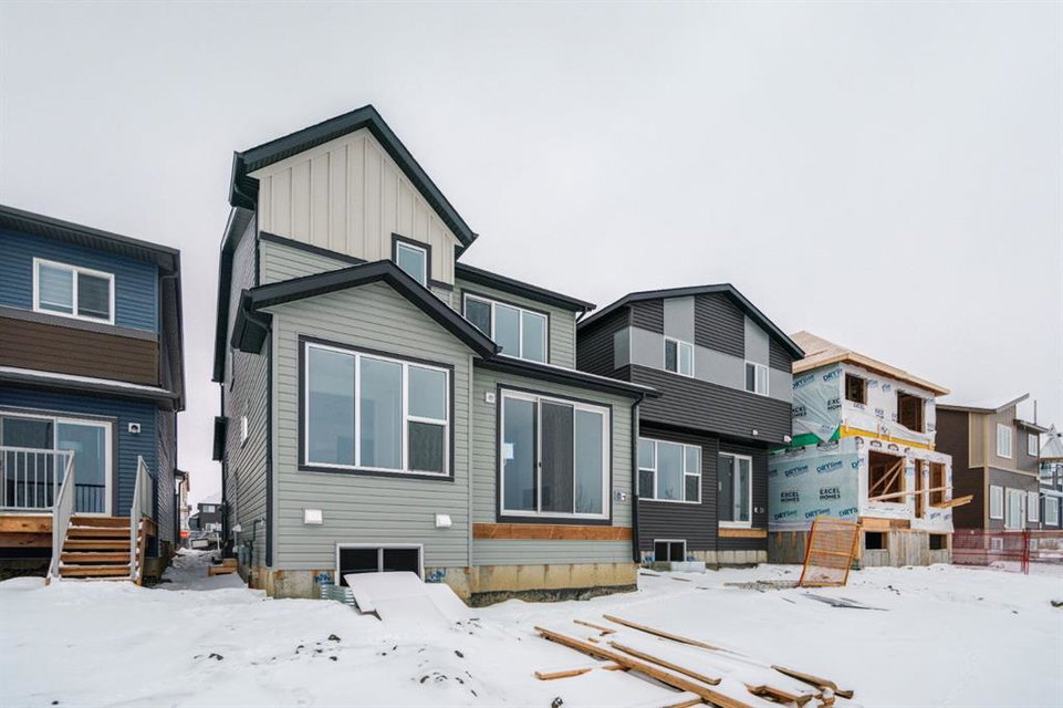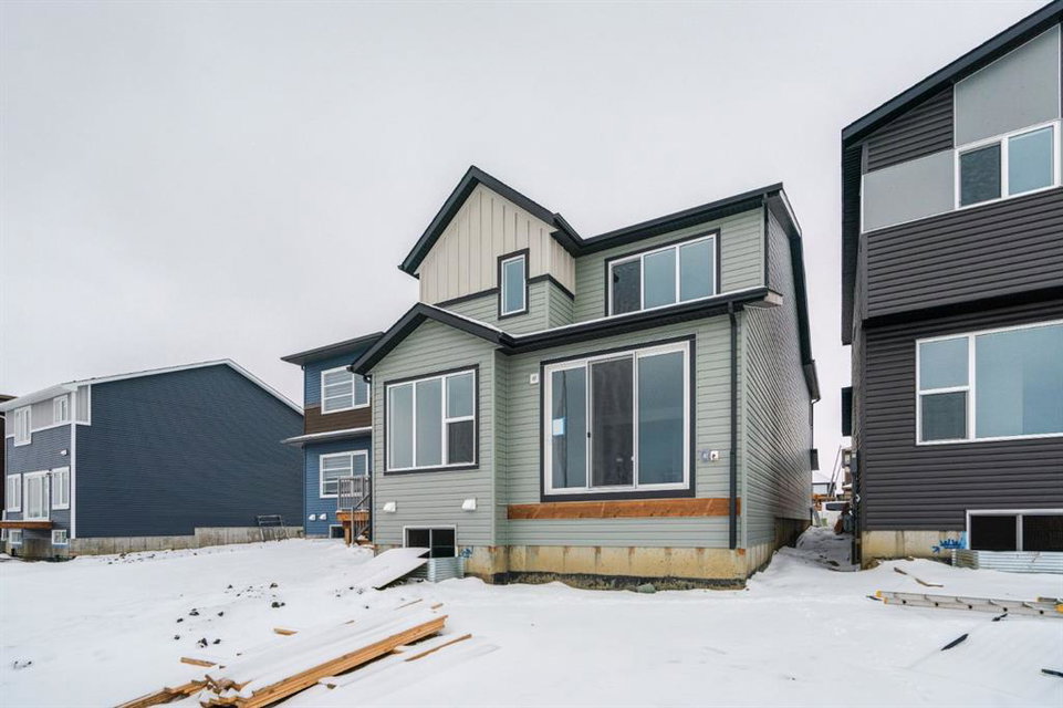 The stunning Columbia model built by award-winning Brookfield Residential has been thoughtfully designed with an incredibly functional layout featuring an open concept main living space with private office, expansive kitchen with oversized island and endless storage! At nearly 2,500 square feet of living space above grade, this property is perfect for those looking to upsize to a more comfortable size without compromising any features! This home features 4 bedrooms above grade with 2.5 bathrooms and a basement that had endless potential and its own side entrance with direct access. The two tone kitchen features timeless white upper cabinets, warm grey lower cabinets, white quartz countertops, a suite of built-in appliances including chimney hood fan, gas cooktop, and a wall oven + microwave. The large main level living area has ample space for all of your furniture, includes a central electric fireplace and is overlooked by the dining area. A private office space with a wall of windows overlooking the backyard makes the perfect work-from-home space. A large walk-through pantry into the mud room off of the garage, walk-in front closet and a powder room with vanity cabinets complete the main level. The open iron spindle railing keeps the space feeling open and bright all day long! The upper level features a central bonus room that separates the primary bedroom from the secondary rooms. The primary bedroom is complete with a huge walk-in closet and private 5 pc ensuite that includes a large soaker tub, walk-in tiled shower, dual sinks and a private water closet. Three more bedrooms, a large main bathroom and oversized laundry room with working space complete the second level. The basement awaits the new owner’s imagination and comes with 9′ foundation walls and bathroom rough-in – making development so much easier and a bright and more open finished space. Located in the new community of Creekstone, this stunning new home is fully move-in ready – an opportunity that won’t exist in the Calgary market for very long! Don’t wait to build when you can have a beautiful new home today.
