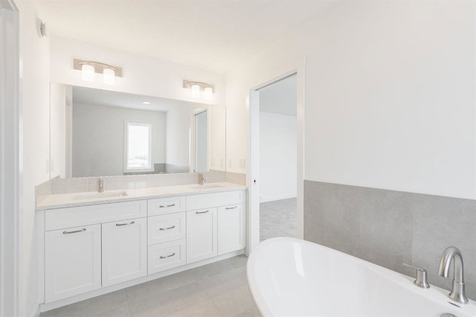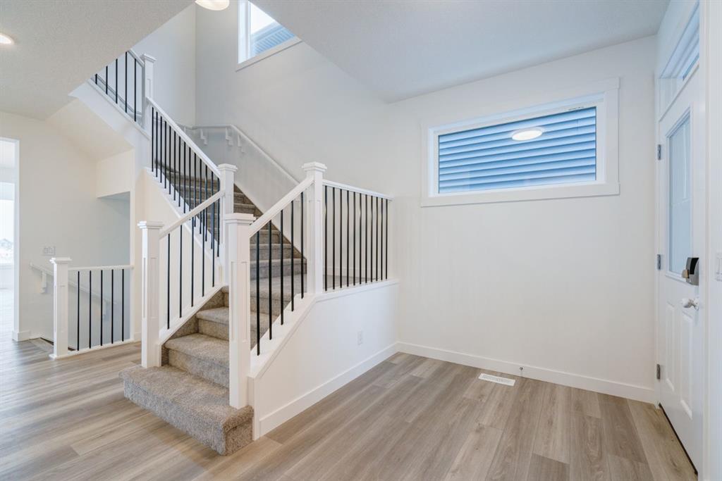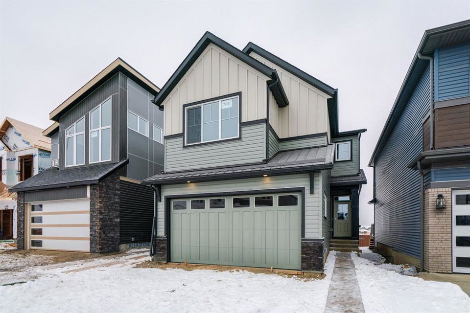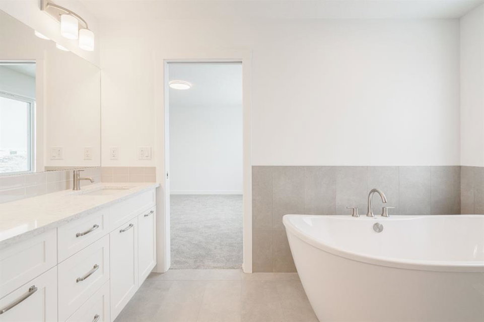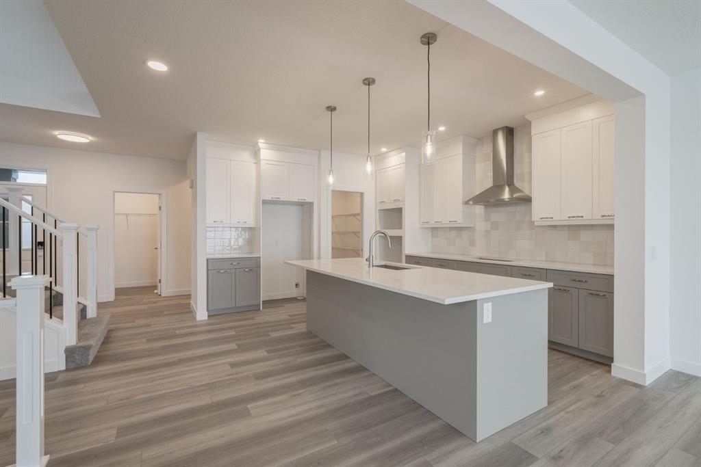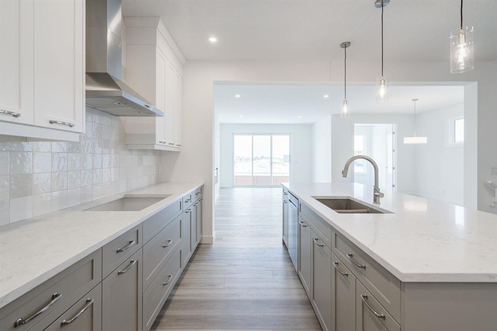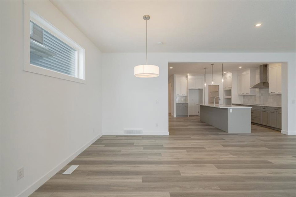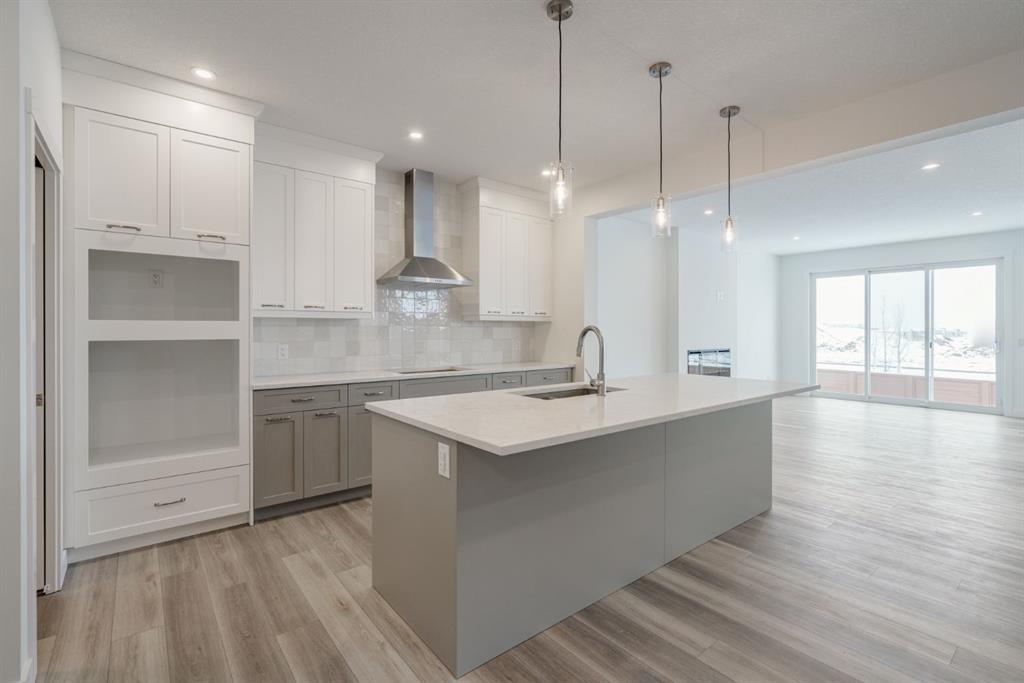 The stunning Columbia model built by award-winning Brookfield Residential has been thoughtfully designed with an incredibly functional layout featuring an open concept main living space with private office, expansive kitchen with oversized island and endless storage! At nearly 2,500 square feet of living space above grade, this property is perfect for those looking to upsize to a more comfortable size without compromising any features! This home features 4 bedrooms above grade with 2.5 bathrooms and a basement that had endless potential and its own side entrance with direct access. The two tone kitchen features timeless white upper cabinets, warm grey lower cabinets, white quartz countertops, a suite of built-in appliances including chimney hood fan, gas cooktop, and a wall oven + microwave. The large main level living area has ample space for all of your furniture, includes a central electric fireplace and is overlooked by the dining area. A private office space with a wall of windows overlooking the backyard makes the perfect work-from-home space. A large walk-through pantry into the mud room off of the garage, walk-in front closet and a powder room with vanity cabinets complete the main level. The open iron spindle railing keeps the space feeling open and bright all day long! The upper level features a central bonus room that separates the primary bedroom from the secondary rooms. The primary bedroom is complete with a huge walk-in closet and private 5 pc ensuite that includes a large soaker tub, walk-in tiled shower, dual sinks and a private water closet. Three more bedrooms, a large main bathroom and oversized laundry room with working space complete the second level. The basement awaits the new owner’s imagination and comes with 9′ foundation walls and bathroom rough-in – making development so much easier and a bright and more open finished space. Located in the new community of Creekstone, this stunning new home is fully move-in ready – an opportunity that won’t exist in the Calgary market for very long! Don’t wait to build when you can have a beautiful new home today.