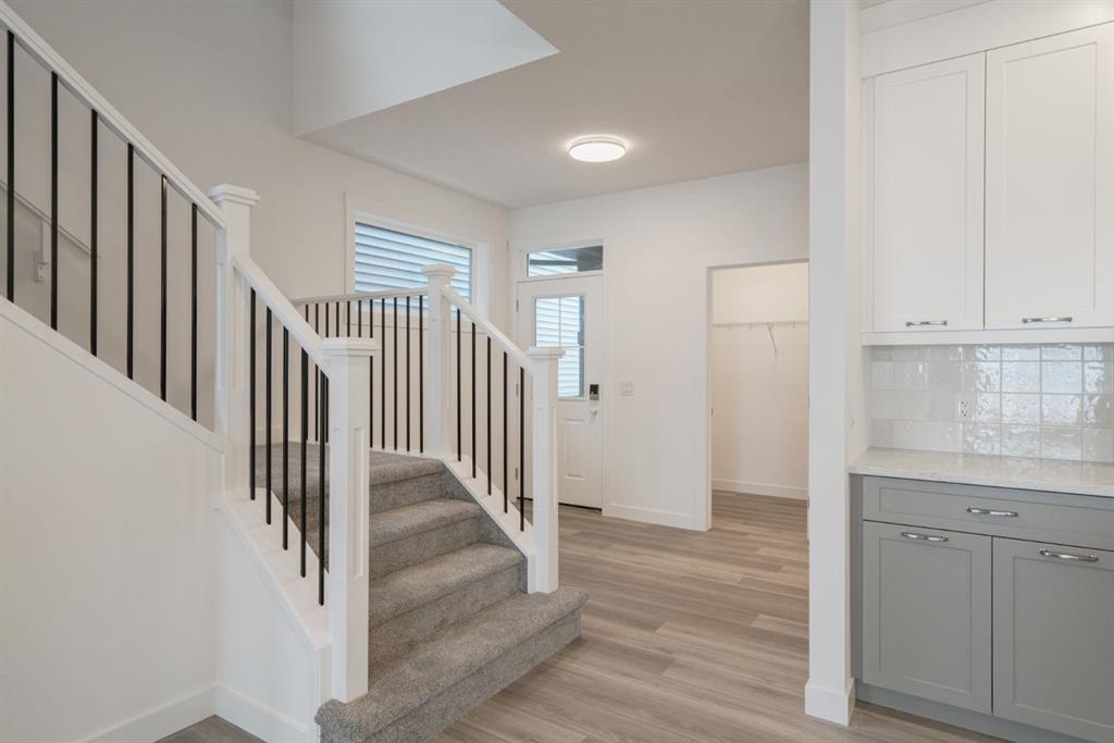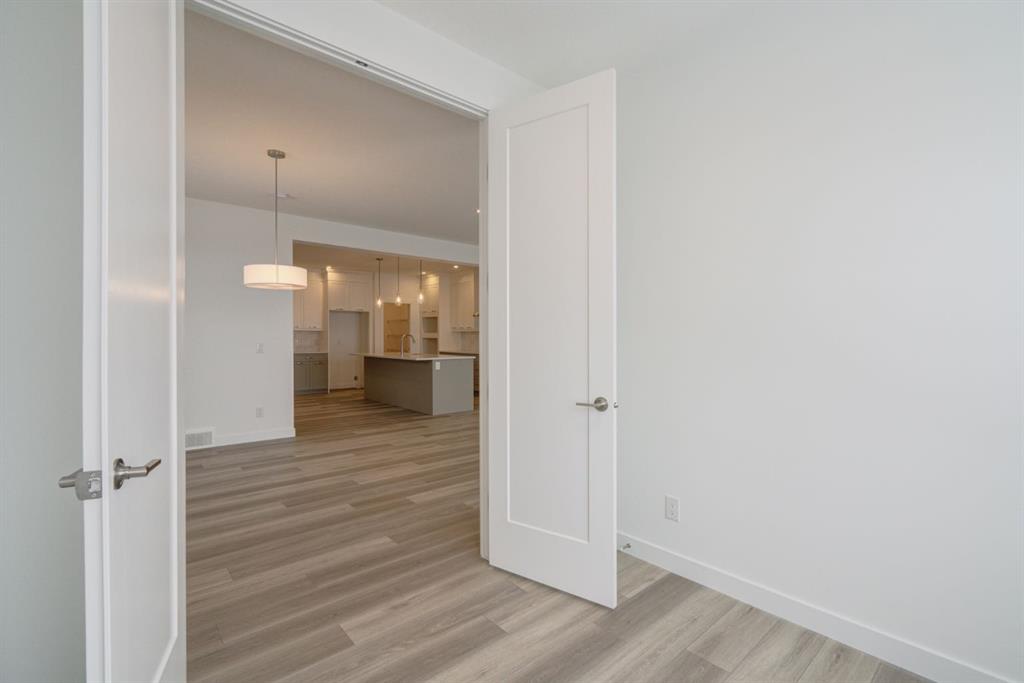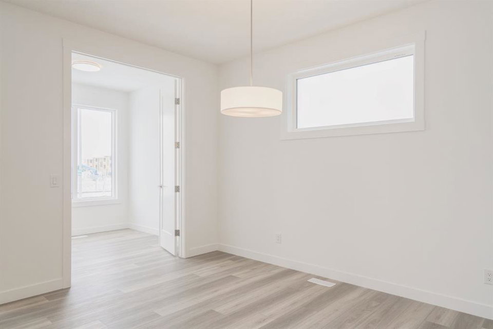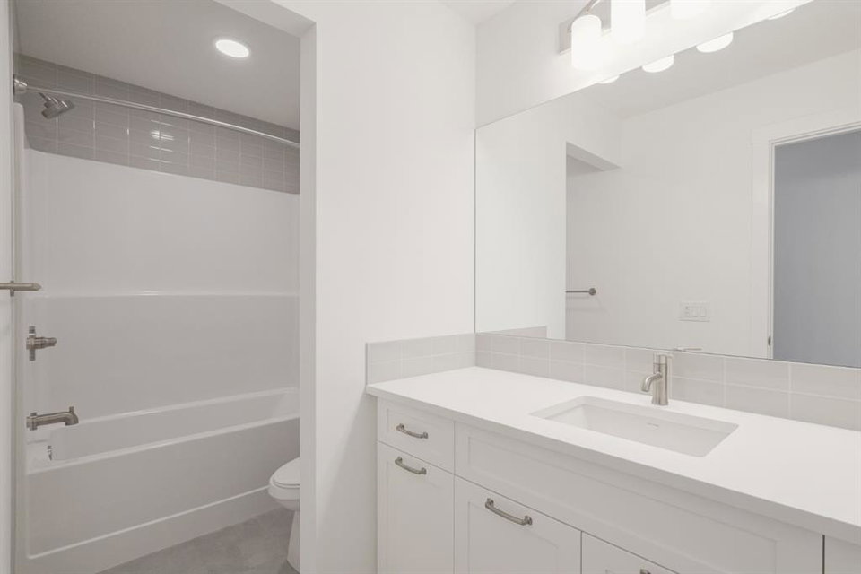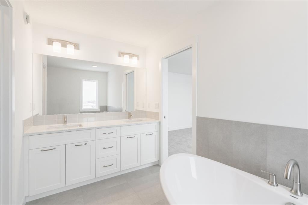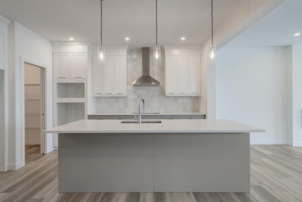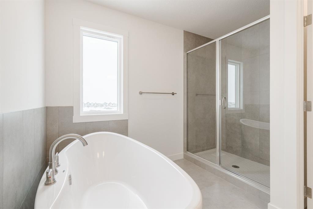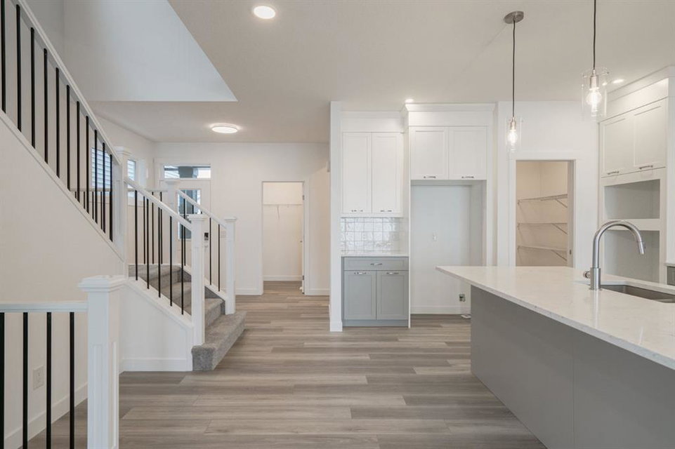 The stunning Columbia model built by award-winning Brookfield Residential has been thoughtfully designed with an incredibly functional layout featuring an open concept main living space with private office, expansive kitchen with oversized island and endless storage! At nearly 2,500 square feet of living space above grade, this property is perfect for those looking to upsize to a more comfortable size without compromising any features! This home features 4 bedrooms above grade with 2.5 bathrooms and a basement that had endless potential and its own side entrance with direct access. The two tone kitchen features timeless white upper cabinets, warm grey lower cabinets, white quartz countertops, a suite of built-in appliances including chimney hood fan, gas cooktop, and a wall oven + microwave. The large main level living area has ample space for all of your furniture, includes a central electric fireplace and is overlooked by the dining area. A private office space with a wall of windows overlooking the backyard makes the perfect work-from-home space. A large walk-through pantry into the mud room off of the garage, walk-in front closet and a powder room with vanity cabinets complete the main level. The open iron spindle railing keeps the space feeling open and bright all day long! The upper level features a central bonus room that separates the primary bedroom from the secondary rooms. The primary bedroom is complete with a huge walk-in closet and private 5 pc ensuite that includes a large soaker tub, walk-in tiled shower, dual sinks and a private water closet. Three more bedrooms, a large main bathroom and oversized laundry room with working space complete the second level. The basement awaits the new owner’s imagination and comes with 9′ foundation walls and bathroom rough-in – making development so much easier and a bright and more open finished space. Located in the new community of Creekstone, this stunning new home is fully move-in ready – an opportunity that won’t exist in the Calgary market for very long! Don’t wait to build when you can have a beautiful new home today.