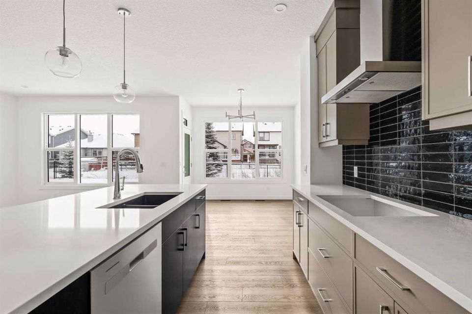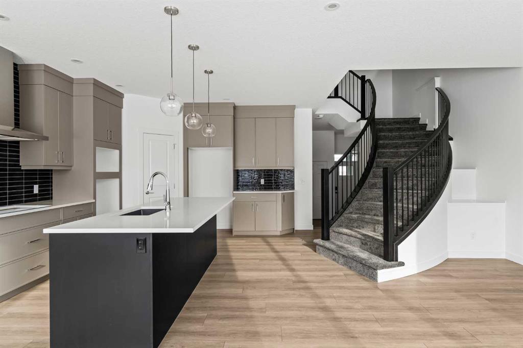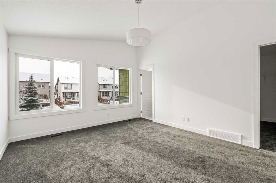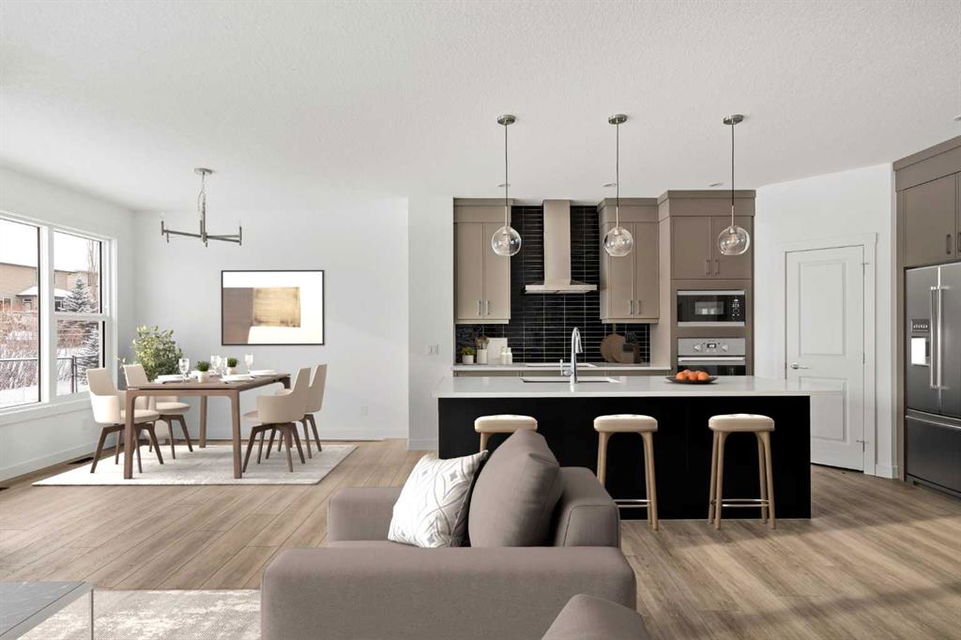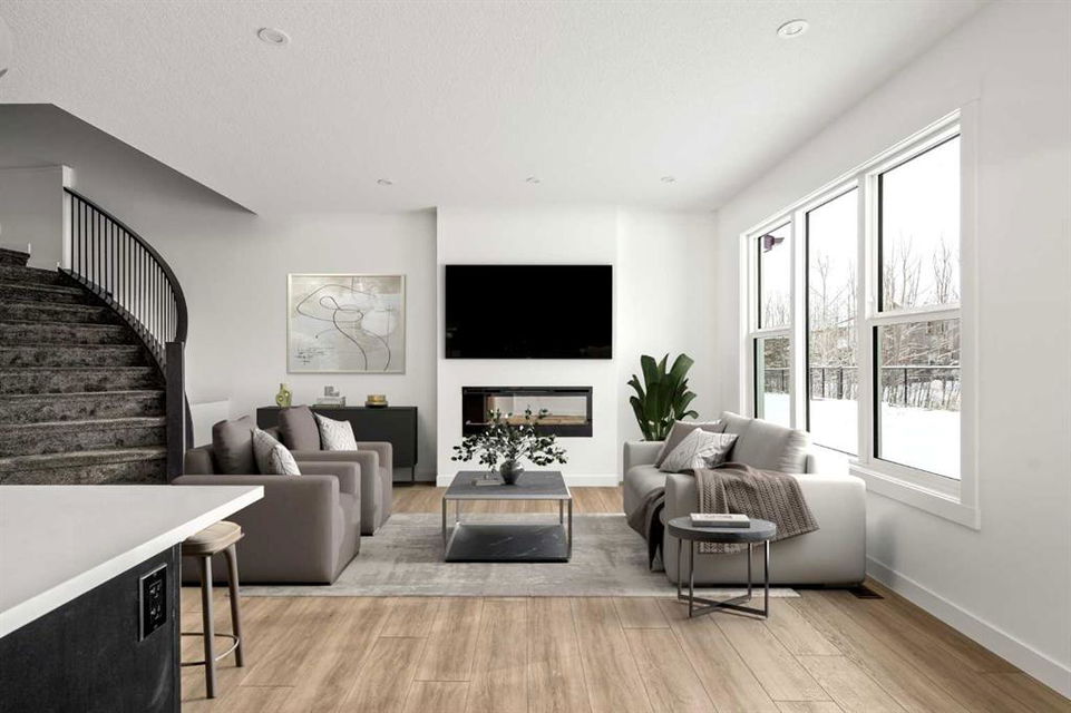 Welcome to The Robson 24 in Silver Spruce – a stunning brand-new home showcasing a timeless Heritage elevation, exceptional architectural details, and over 2,250 sq. ft. of beautifully designed living space above grade, plus an undeveloped basement ready for your future vision. Situated on a premium lot with a south-facing backyard that backs onto a pathway – offering additional privacy and optimal sunshine all year long. Inside, you’re immediately greeted by a large and bright foyer with views into the open concept main level living area that is accented by a dramatic curved central staircase – a striking architectural feature rarely found in homes of this size. Warm luxury vinyl plank flooring flows seamlessly throughout the main level and is the perfect choice for those with children and pets due to its incredible durability. The gourmet kitchen is both stylish and functional, featuring a chimney-style hood fan, built-in cooktop, built-in oven and microwave, rich micro-shaker cabinetry, a statement accent island, and a spacious corner pantry. Designed for both entertaining and everyday living, the kitchen opens effortlessly into the dining area and inviting great room. Expansive windows fill the home with natural light, enhanced by the sunny south-facing backyard that backs onto a pathway. The main living area is anchored by a cozy central fireplace, creating a warm and welcoming space for gatherings year-round. A versatile main-floor flex room offers the perfect spot for a home office, guest bedroom, or playroom, conveniently located next to a full bathroom with a tub/shower. Natural wood and iron spindle railings lead up the spiral staircase to a thoughtfully designed bonus room that provides privacy between the primary suite and secondary bedrooms – ideal for families. The spacious primary retreat impresses with a soaring vaulted ceiling, a large walk-in closet, and a luxurious 5-piece ensuite complete with dual sinks, a deep soaker tub, and a walk-in tiled shower. Two additional bedrooms, a full bathroom, and an upper-floor laundry room complete this level, offering both comfort and convenience. The lower level includes bathroom rough-ins and awaits your personal touch, making it easy to expand your living space in the future. A double attached garage keeps vehicles and valuables secure year-round, while the home itself is protected by a comprehensive 2-year builder warranty and the Alberta New Home Warranty for added peace of mind. Move in now and experience the perfect blend of thoughtful design, modern finishes, and everyday functionality in this stunning new home!