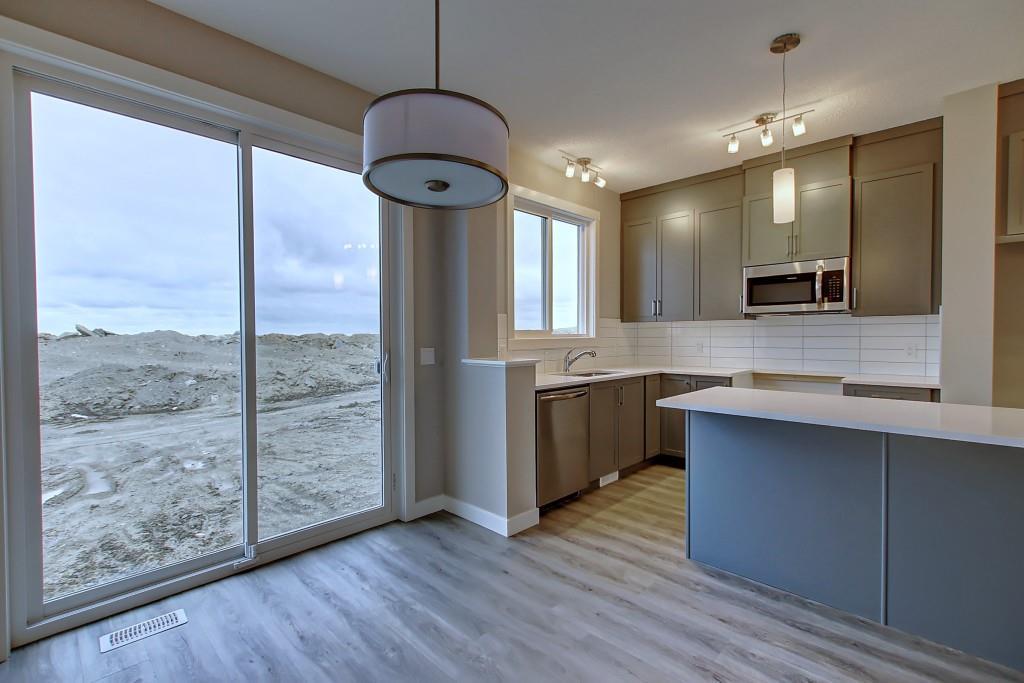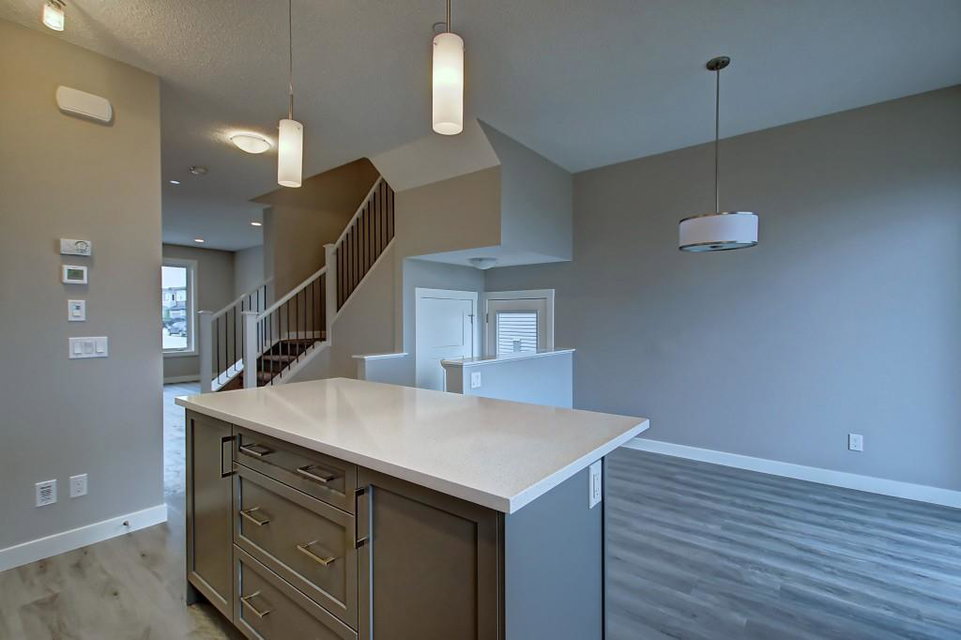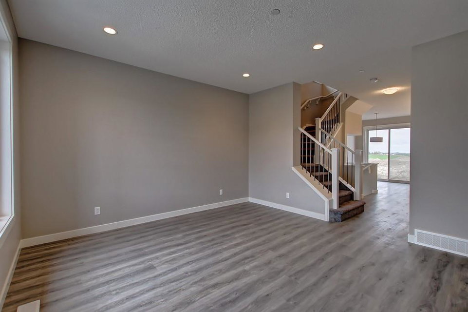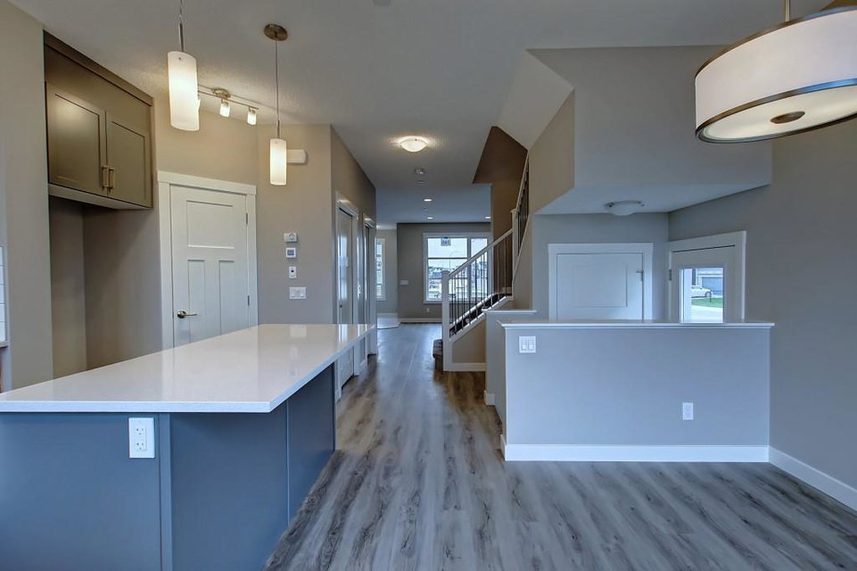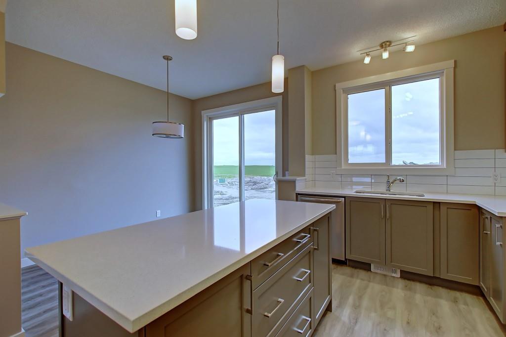 PURCHASE BEFORE END OF JUNE & GET FREE GARAGE! Just steps from the pond and green space! Wake up in the beautiful and bright quick-possession Linden model in Livingston that boats 1,415 square ft. of practical living space over two stories with gorgeous iron railing. The beautiful feature home has an open concept living area and 9 ft. main floor ceilings. The L-shaped kitchen includes stainless steel appliances, extended-height cabinetry along with a large luxurious island that is perfect for entertaining or for your inner Chef! The main level features a large living room with plenty of natural light and a flex area perfect for your home office or dining room. Upper level has 3 bedrooms including a master with private ensuite and walk in closet in addition to another full bathroom for the other two bedrooms. Luxurious upgraded laminate & tile flooring package! Alberta New Home Warranty and legal fees included with the purchase of this brand new home! Basement development awaits your imagination!